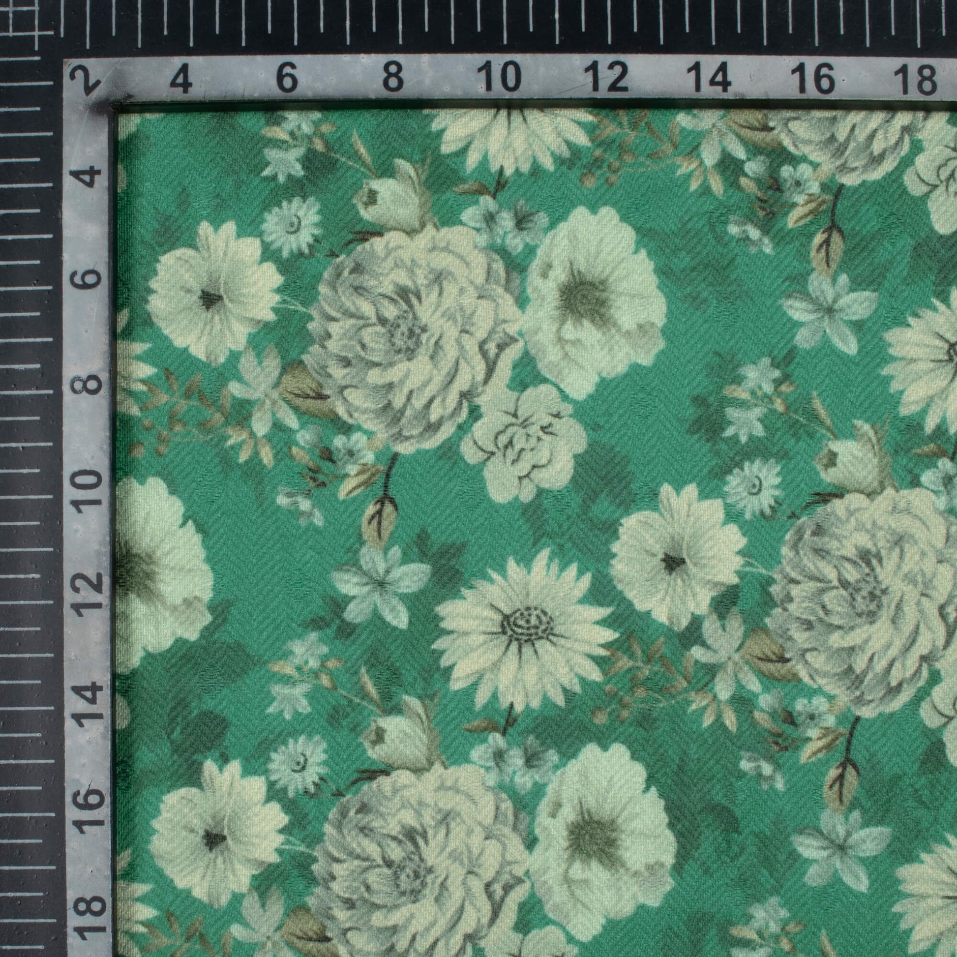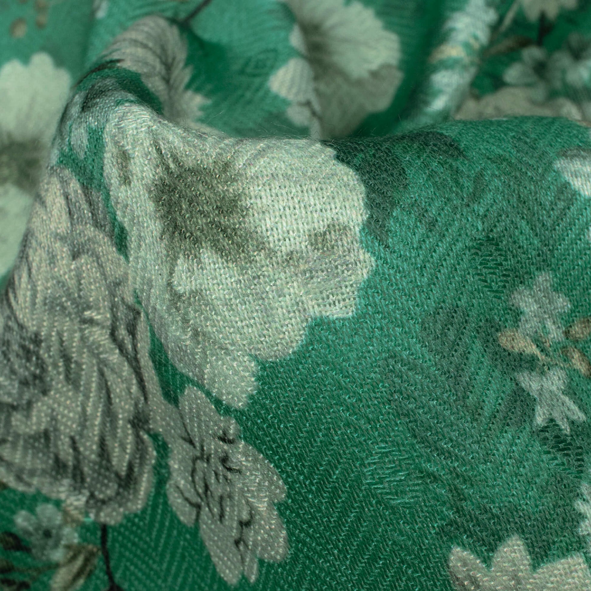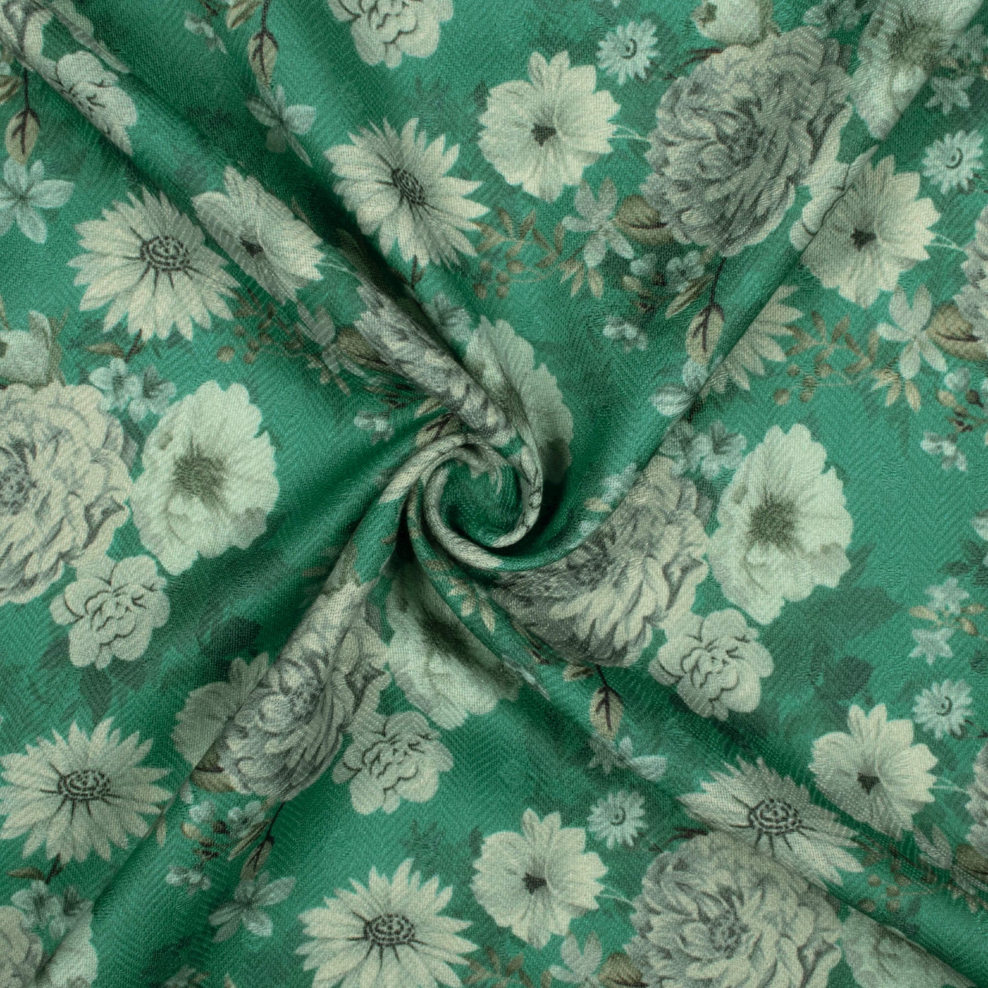 Hunter Green And Cream Floral Pattern Digital Print Elegant Blend Pashmina Fabric