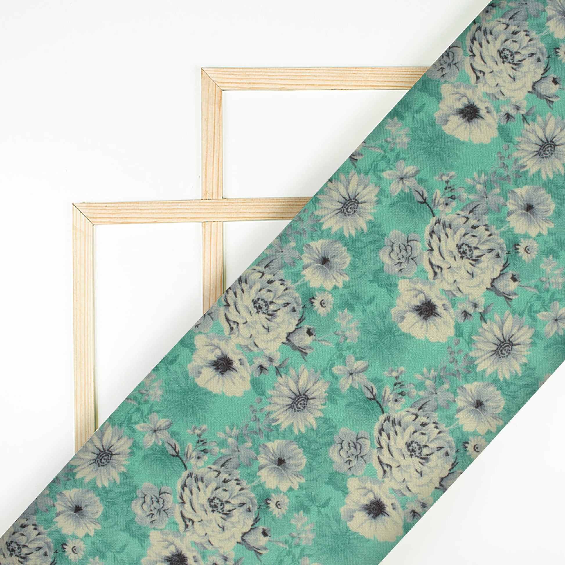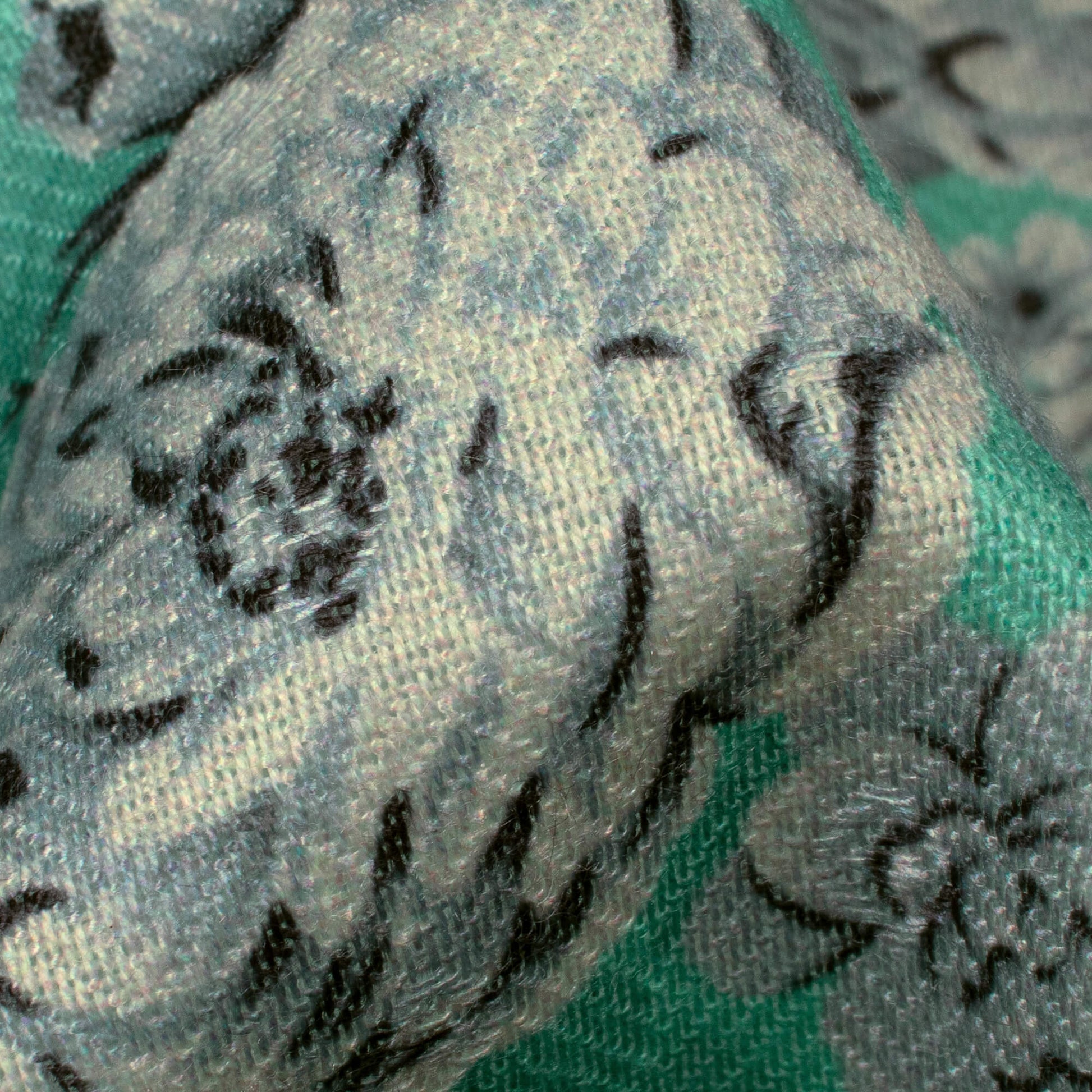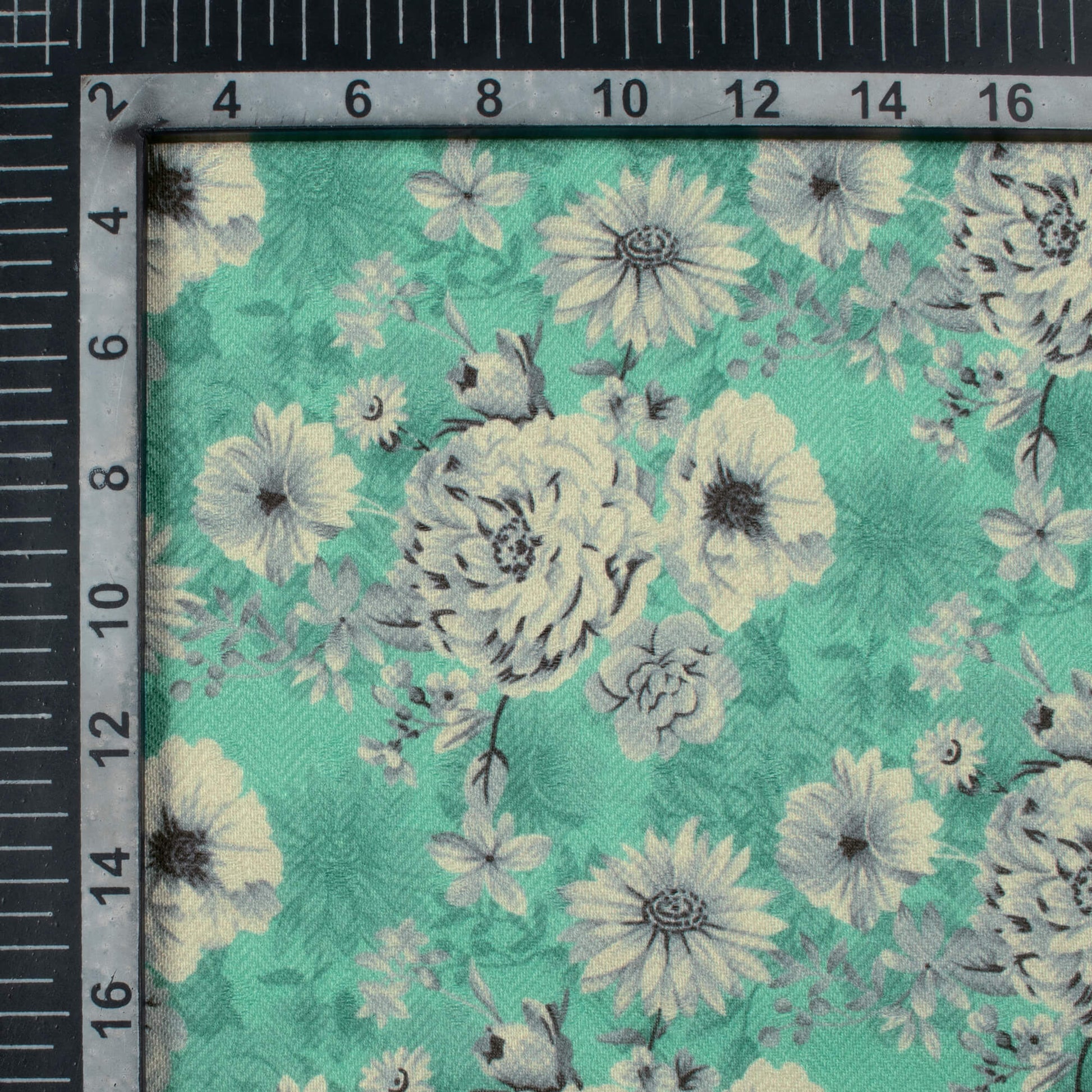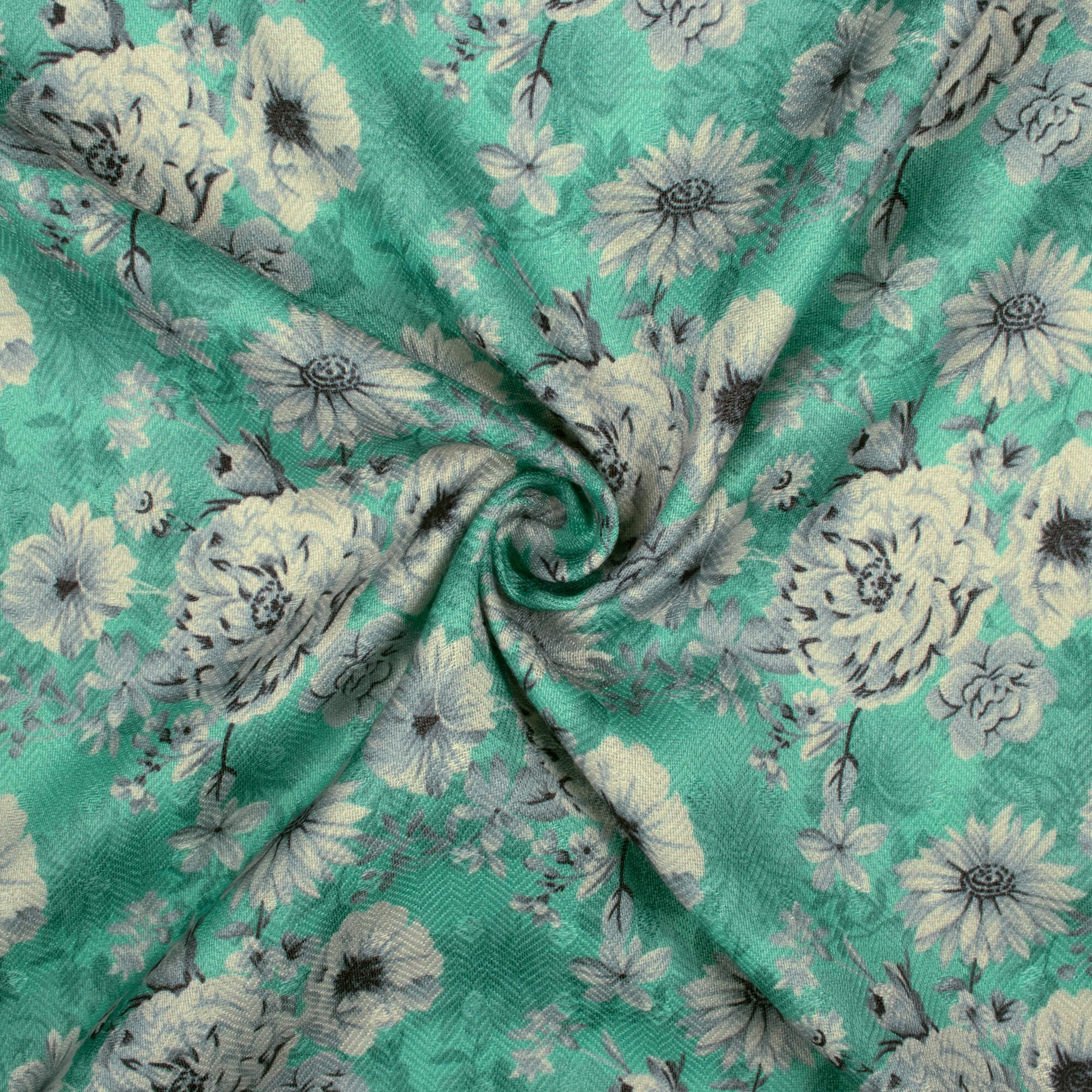 Jade Green And Cream Floral Pattern Digital Print Elegant Blend Pashmina Fabric