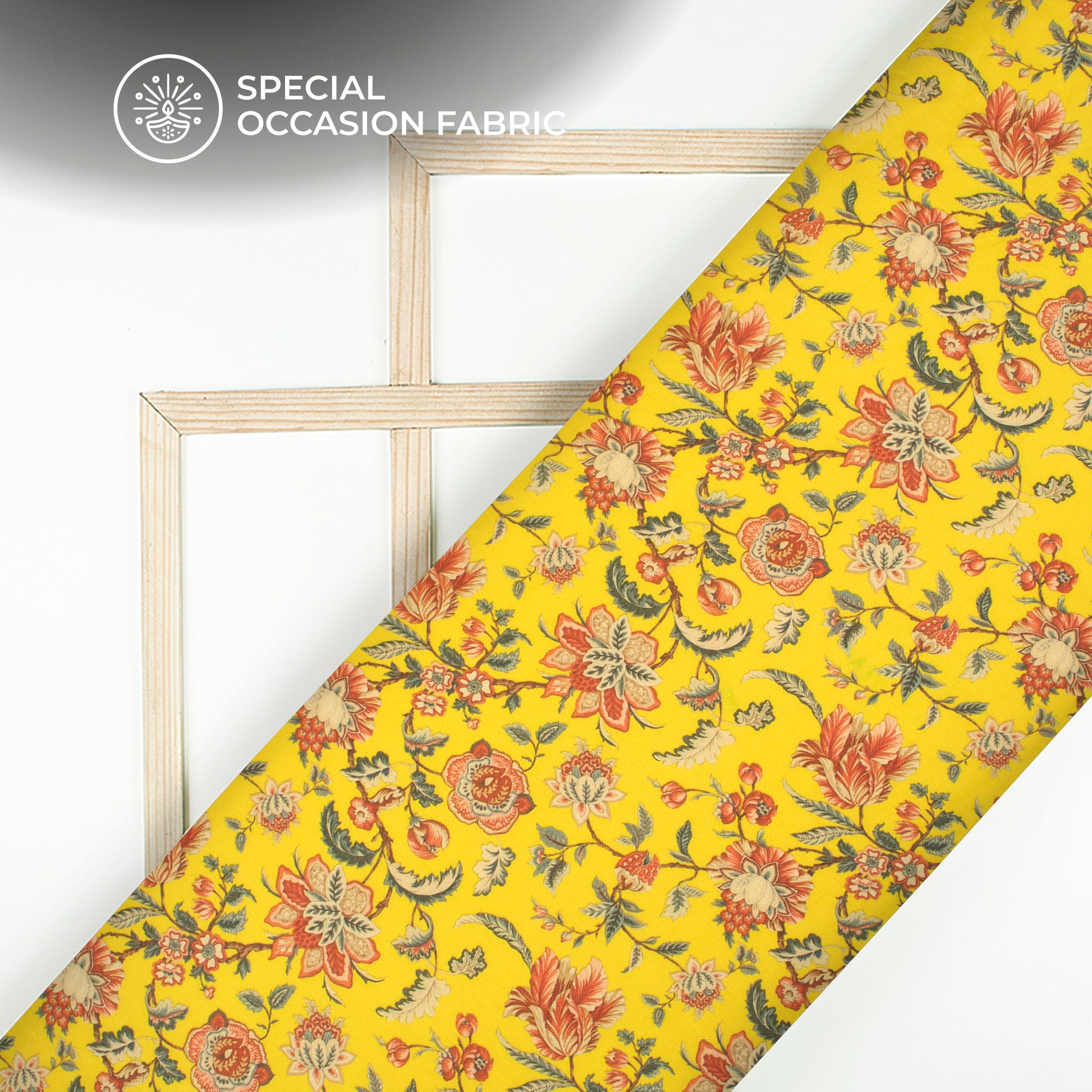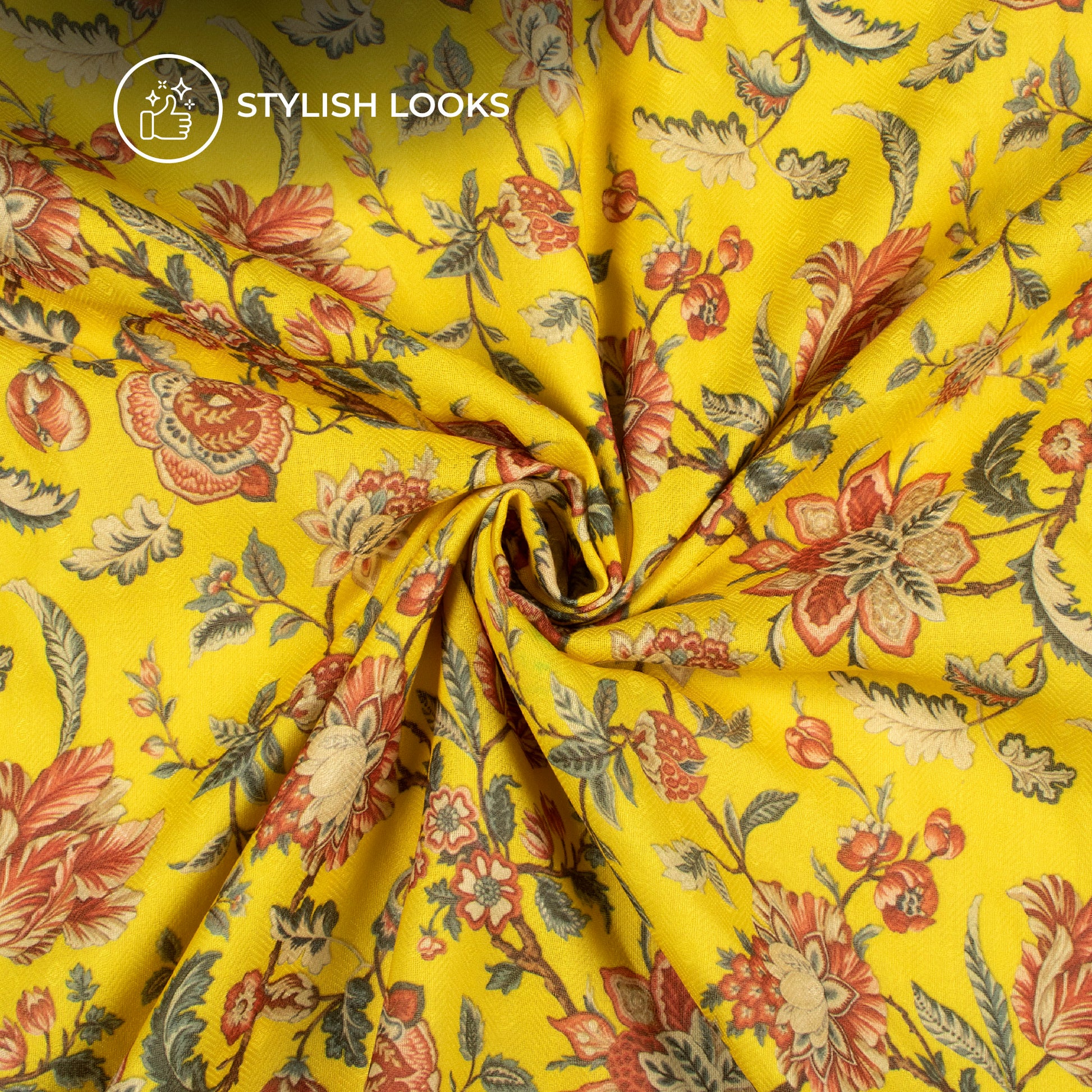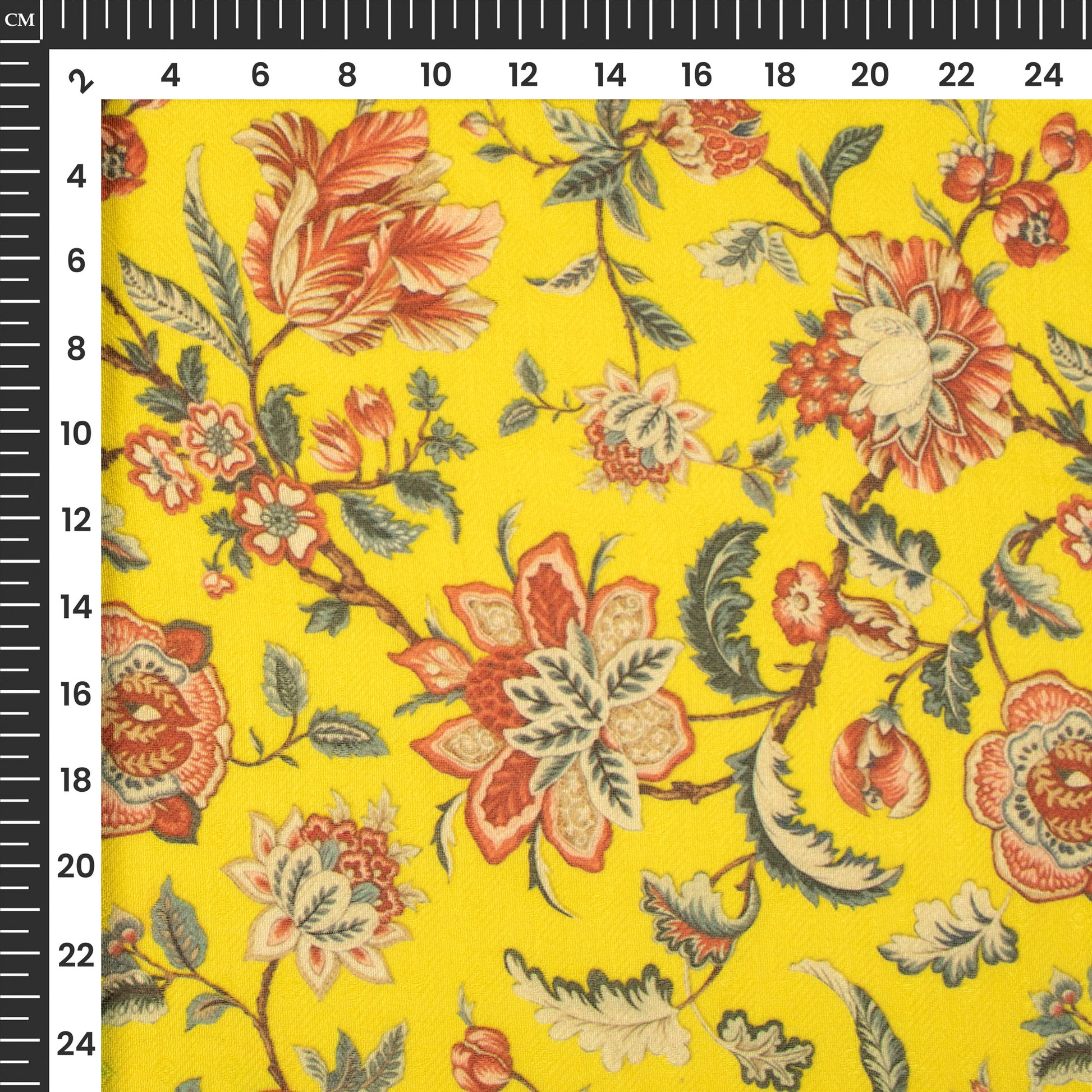 Lemon Yellow Floral Digital Print Blend Pashmina Fabric