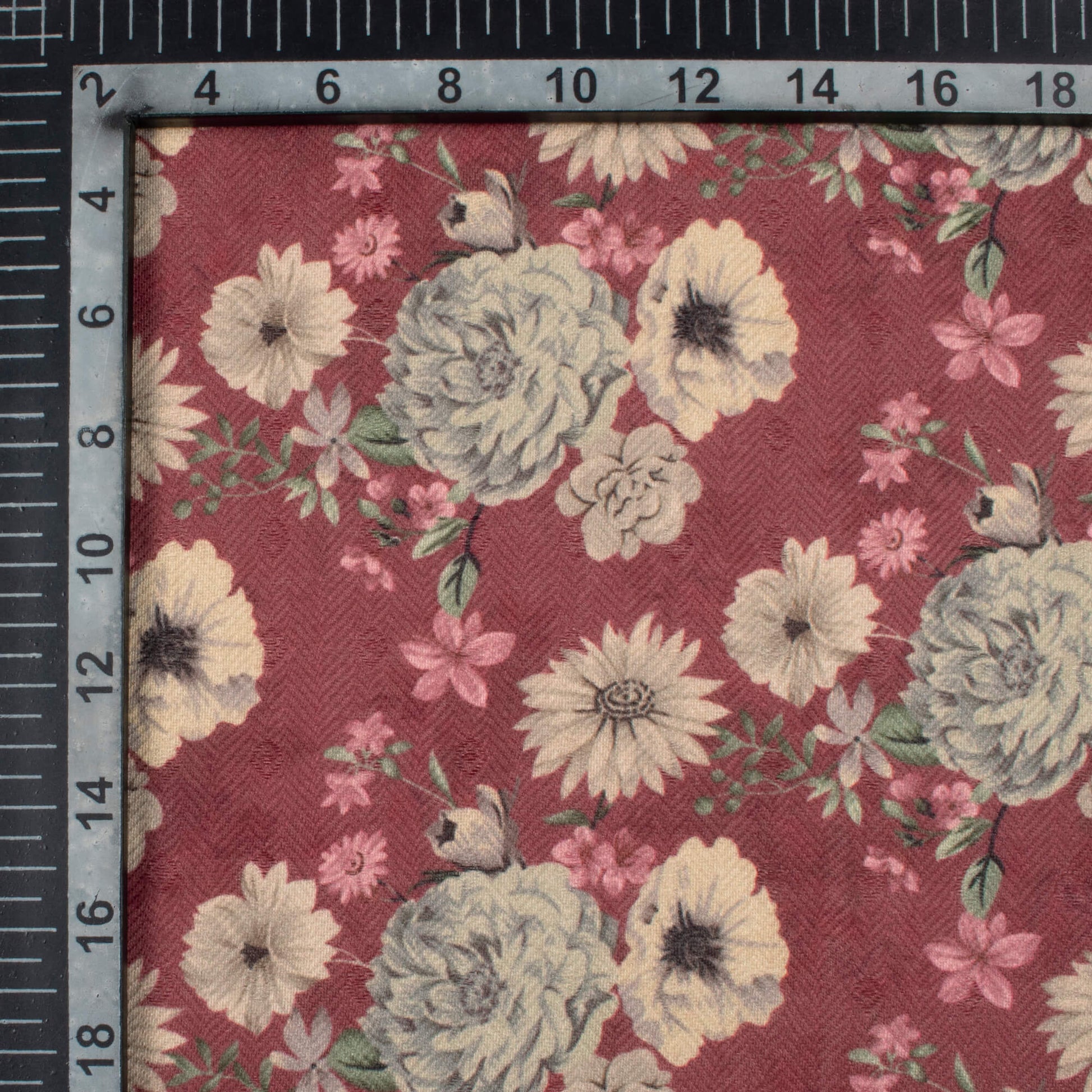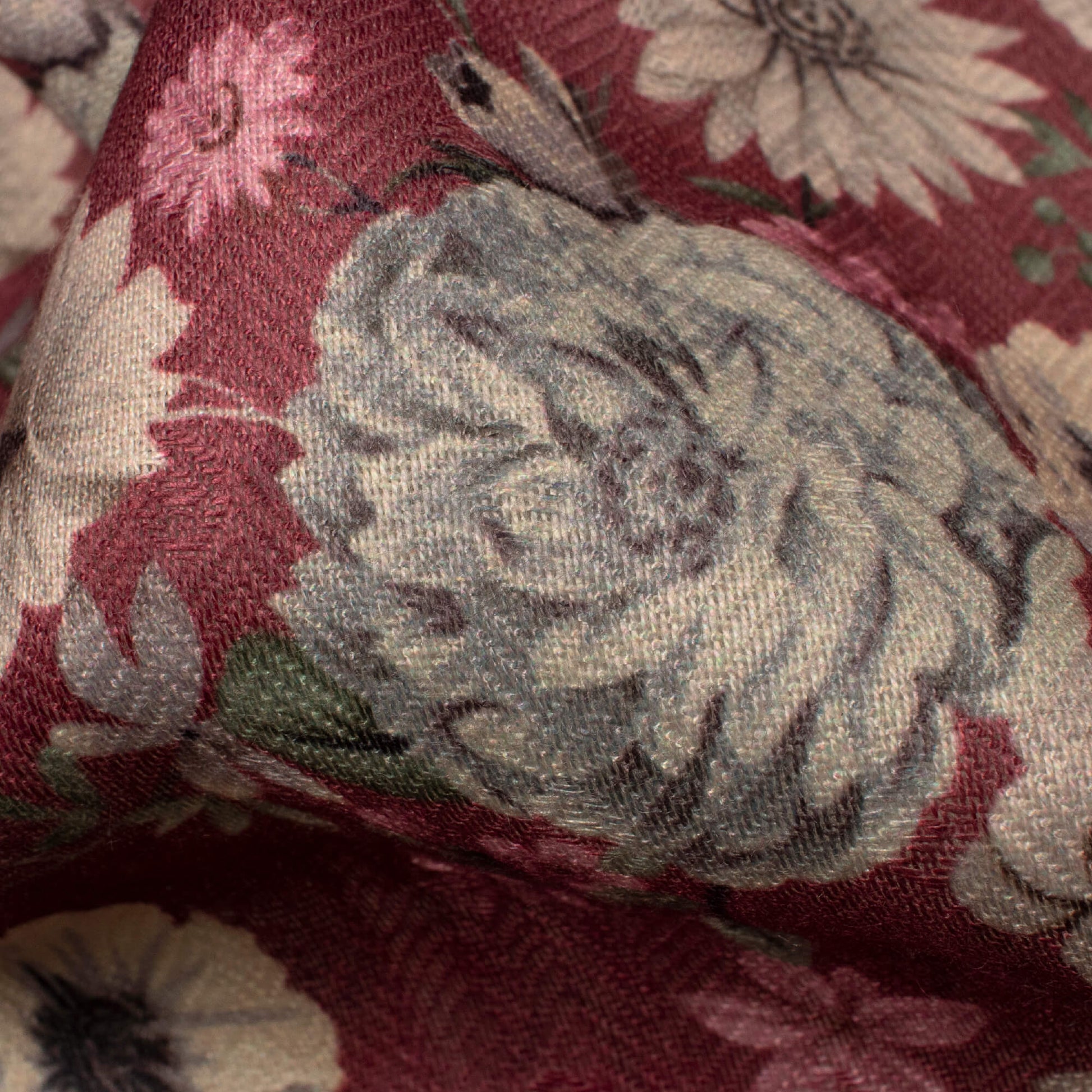 Mahogany Red And Cream Floral Pattern Digital Print Elegant Blend Pashmina Fabric
