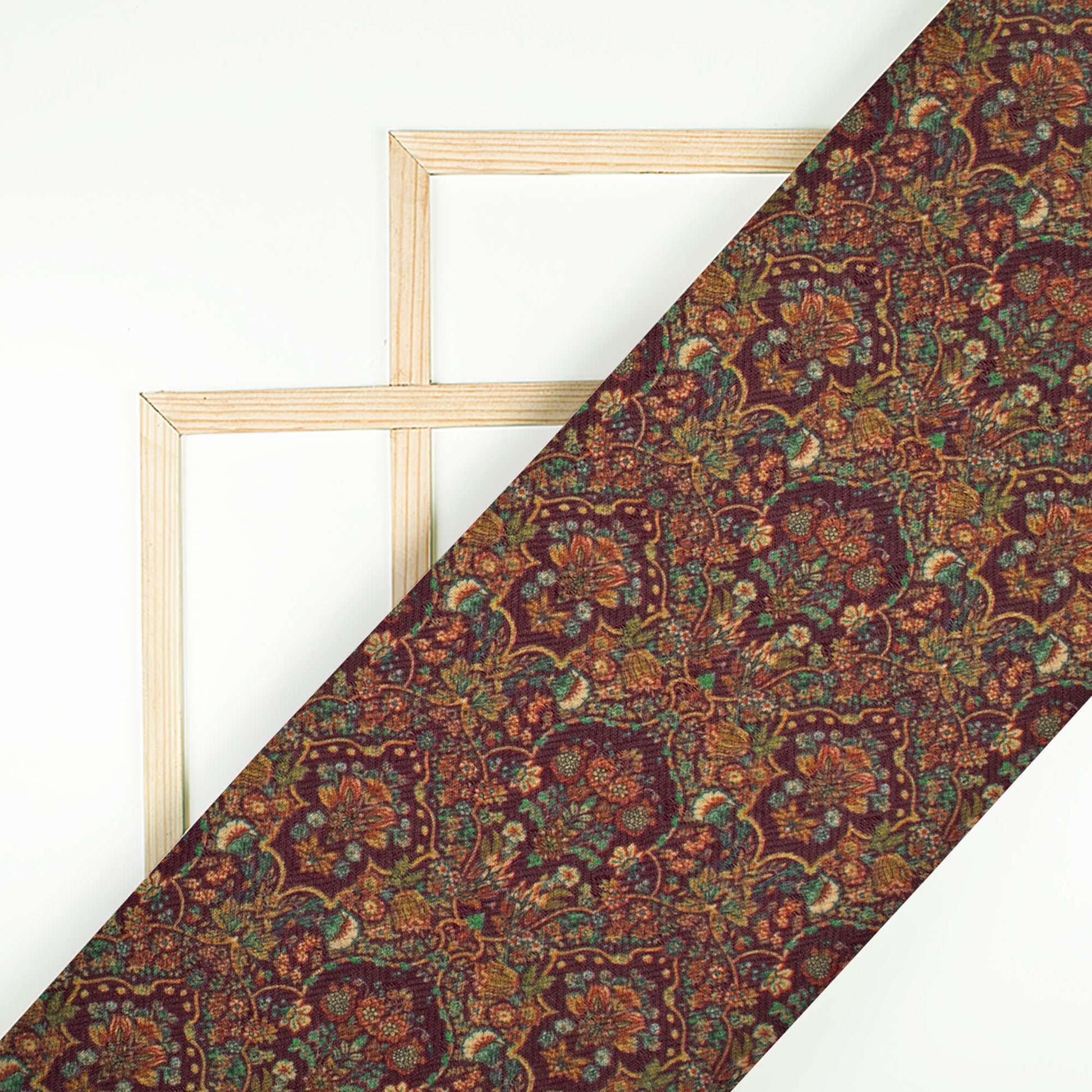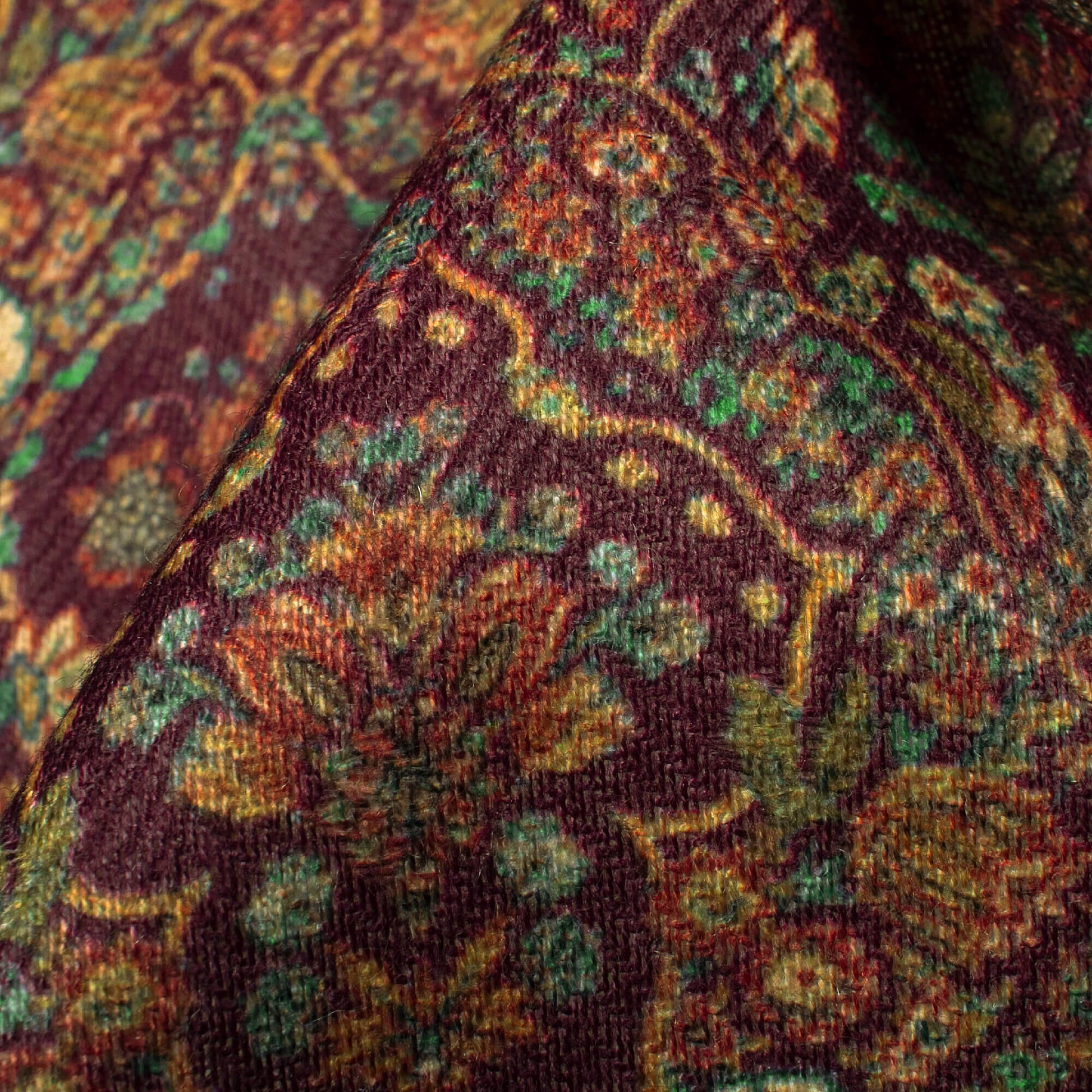 Mulberry Purple And Orange Ethnic Pattern Digital Print Elegant Blend Pashmina Fabric