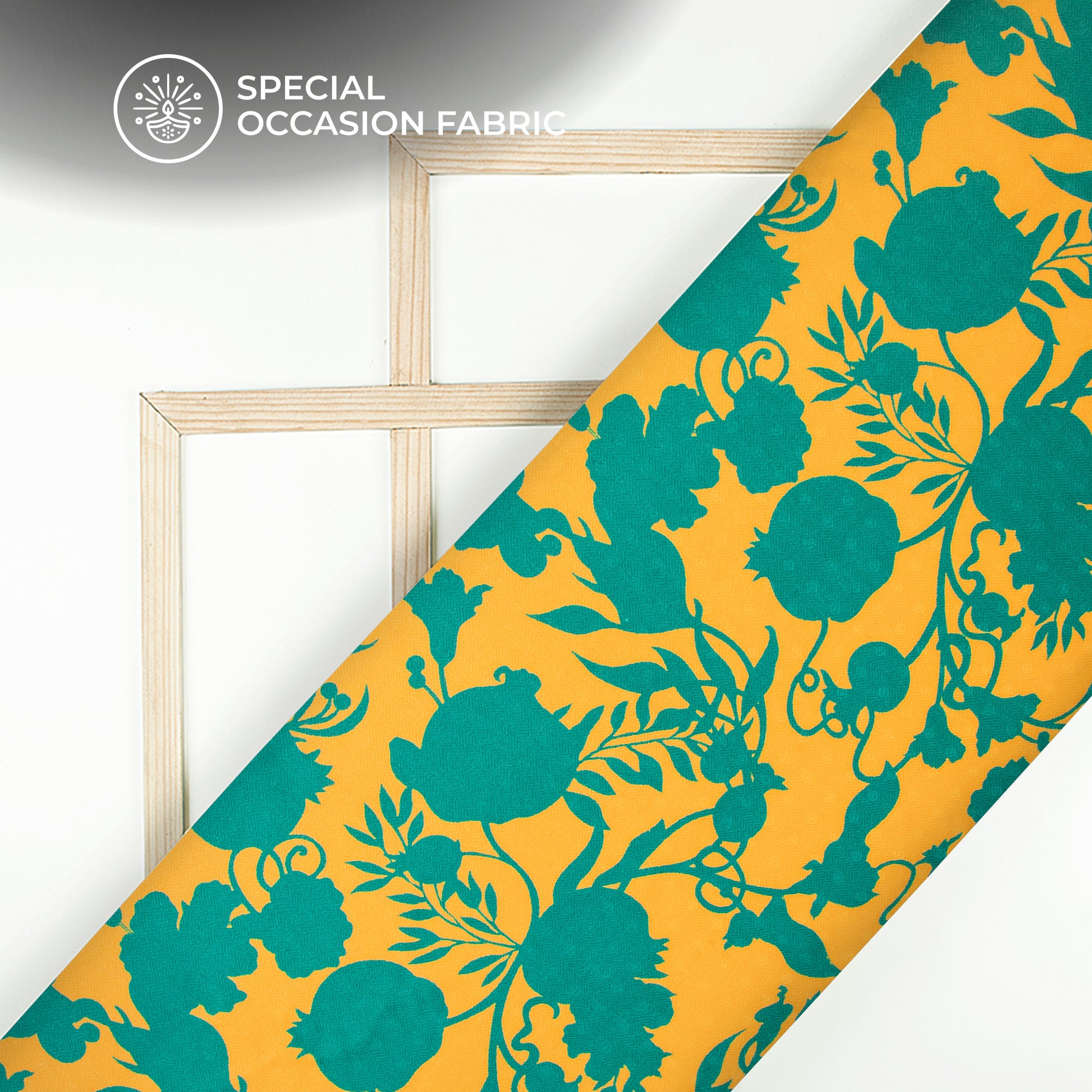 Mustard Yellow Floral Digital Print Elegant Blend Pashmina Fabric