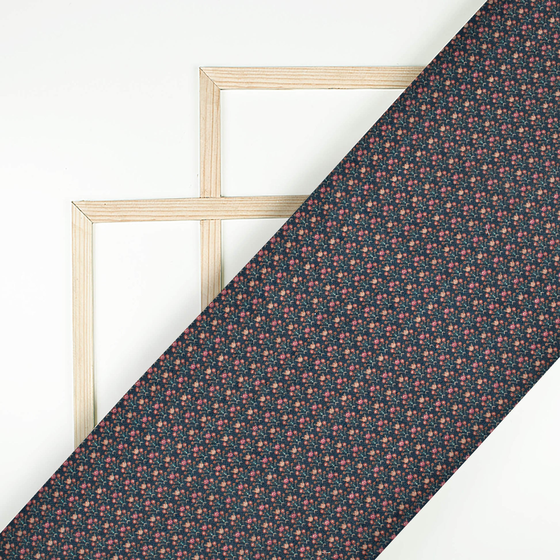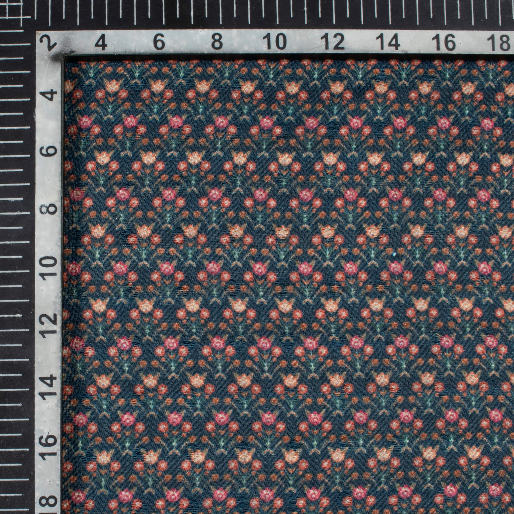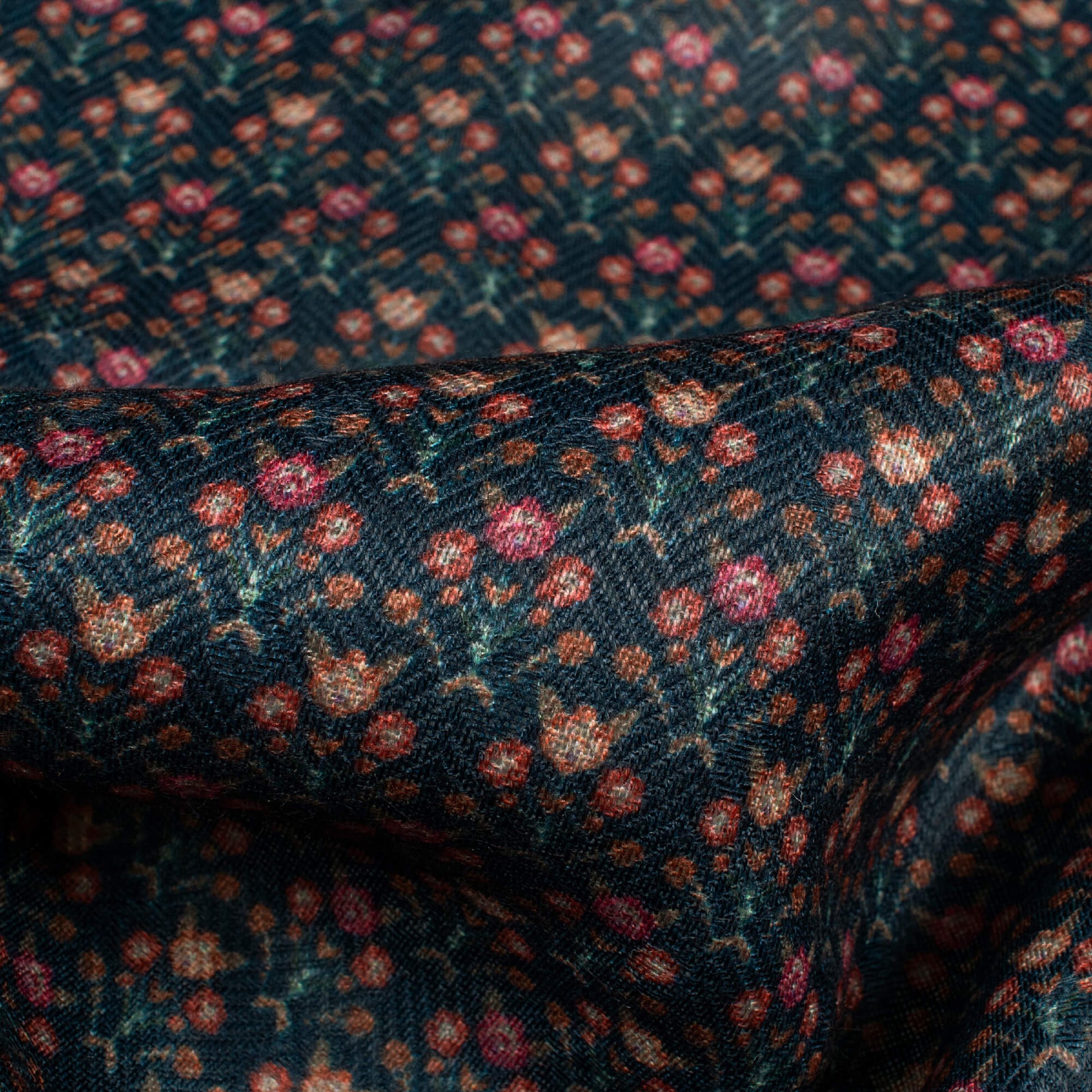 Navy Blue And Red Floral Pattern Digital Print Elegant Blend Pashmina Fabric
