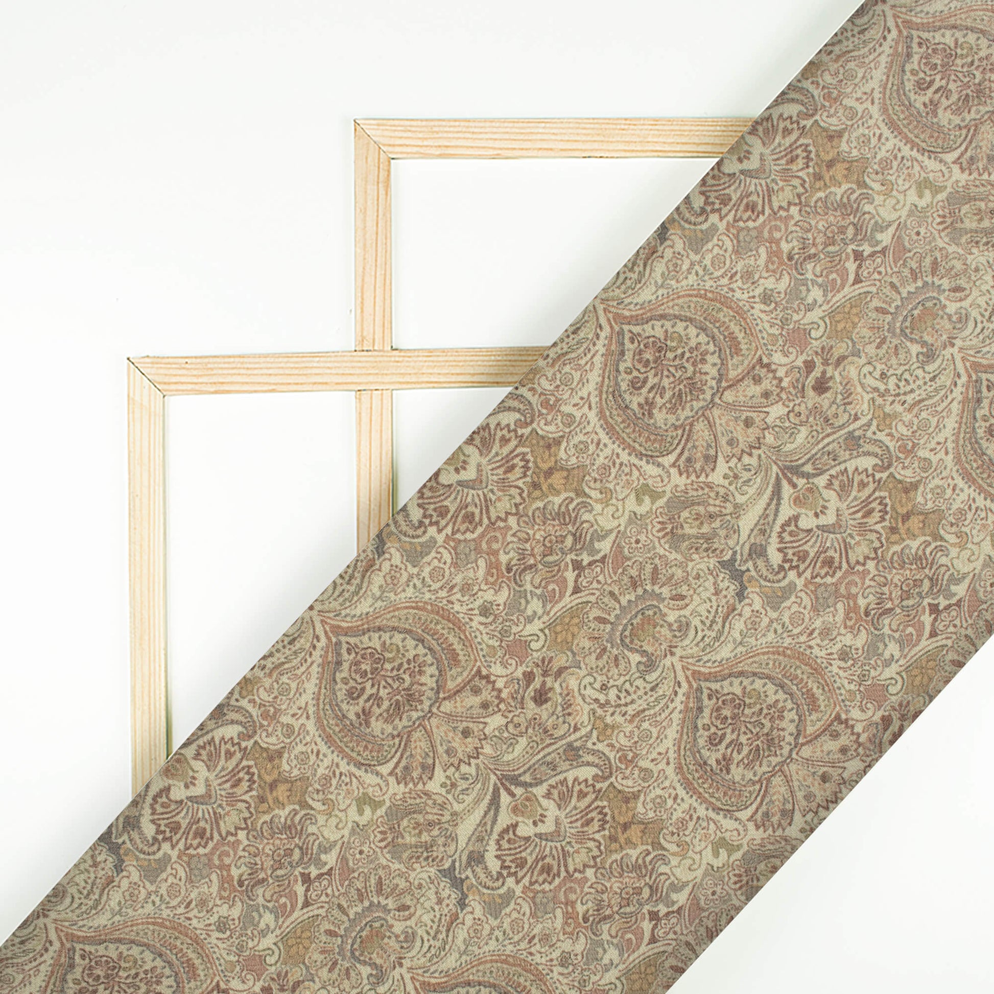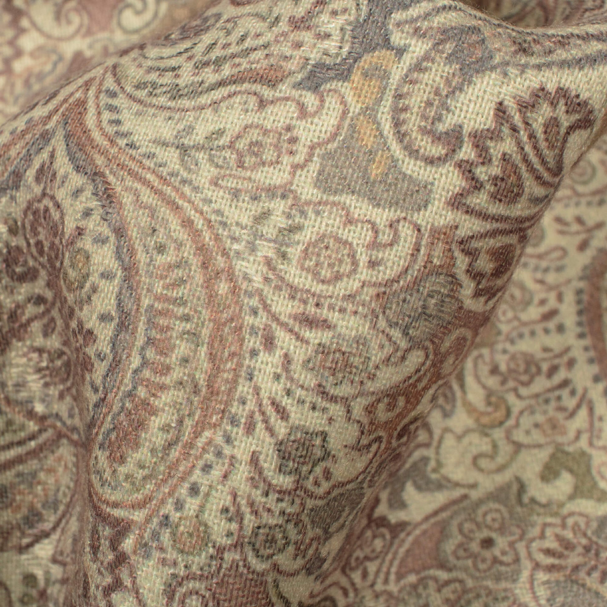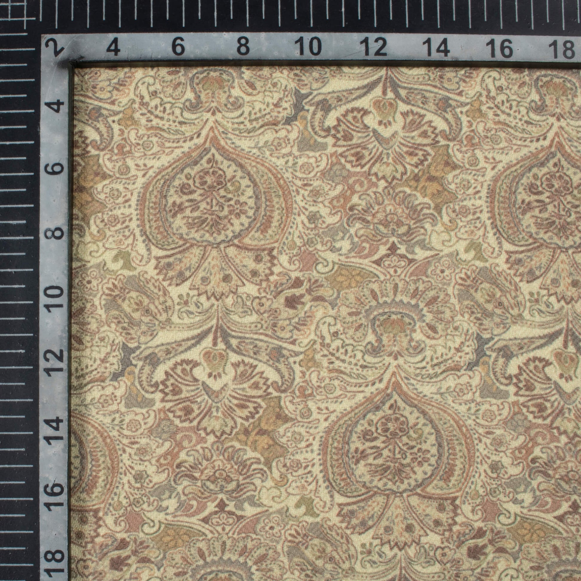 Pale Yellow And Brown Ethnic Pattern Digital Print Elegant Blend Pashmina Fabric