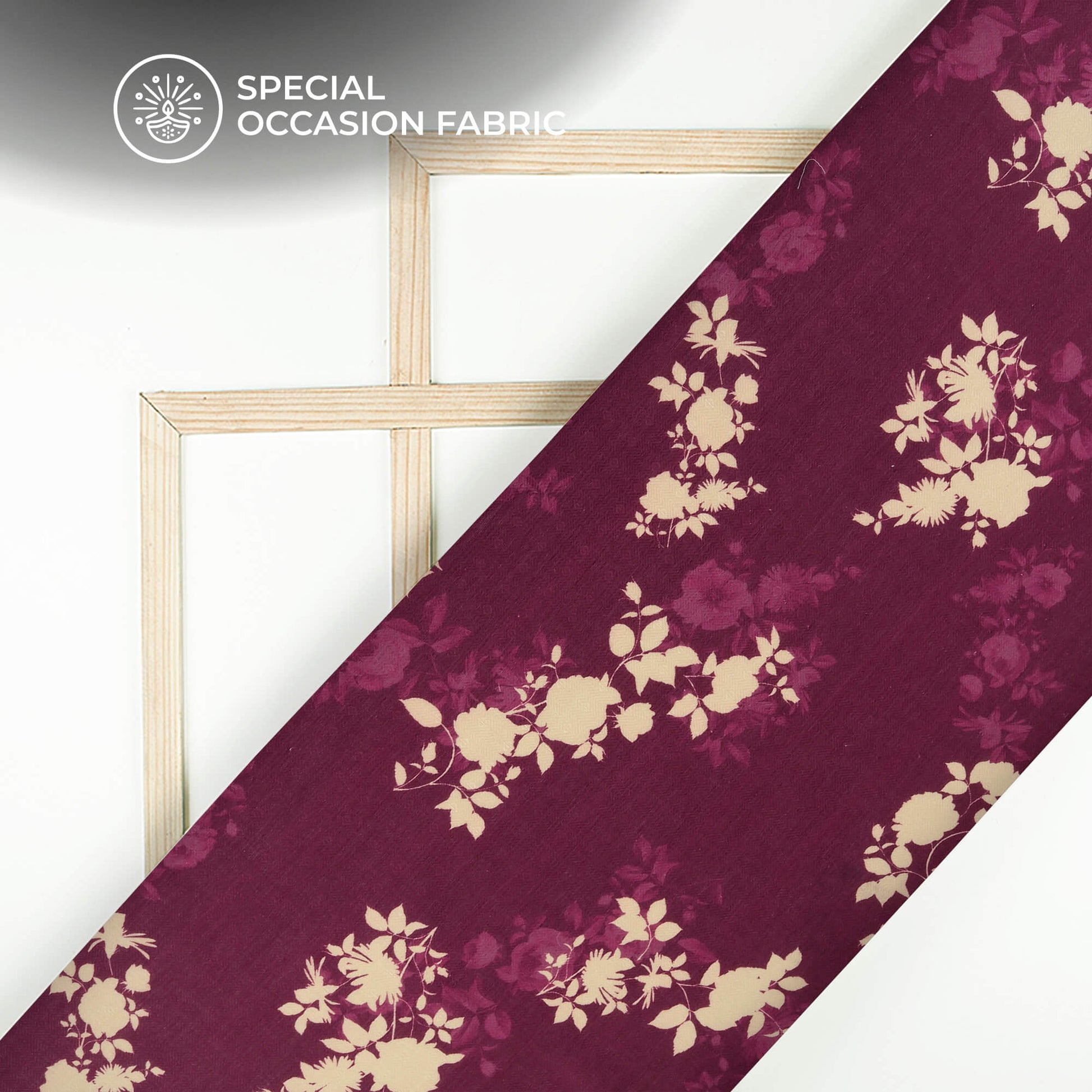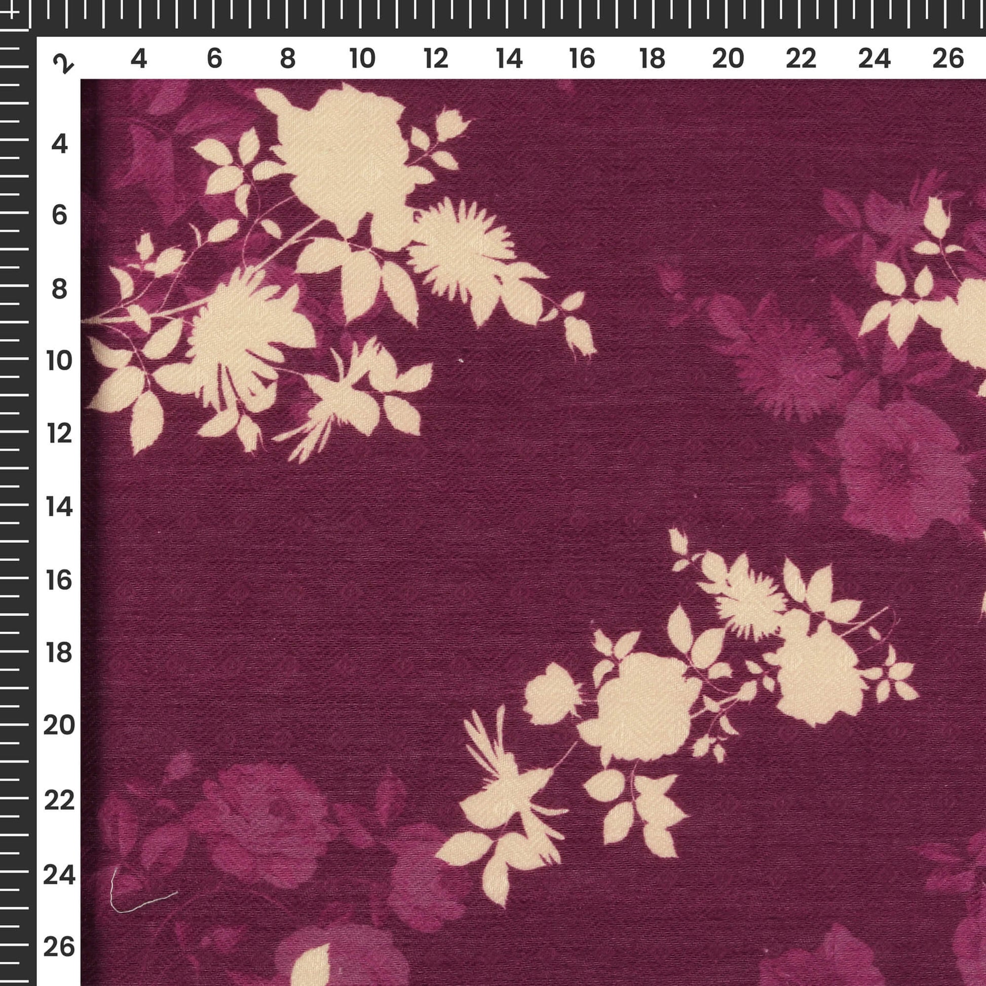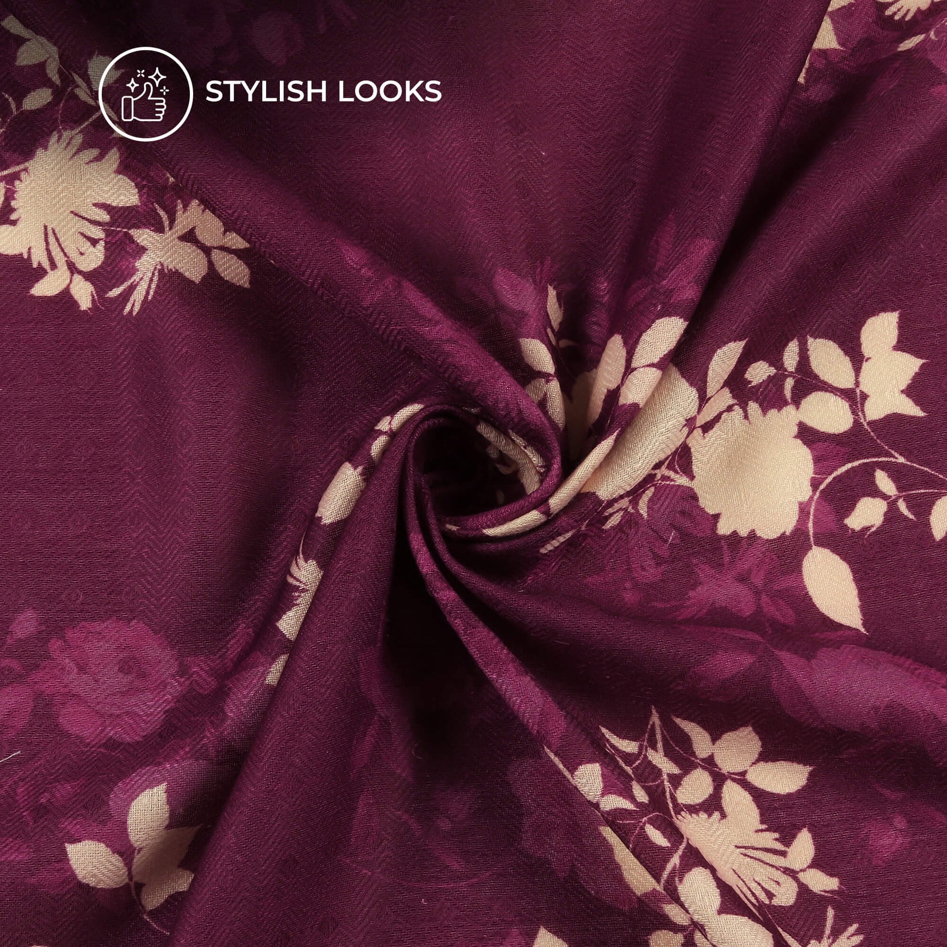 Plum Purple Floral Digital Print Elegant Blend Pashmina Fabric