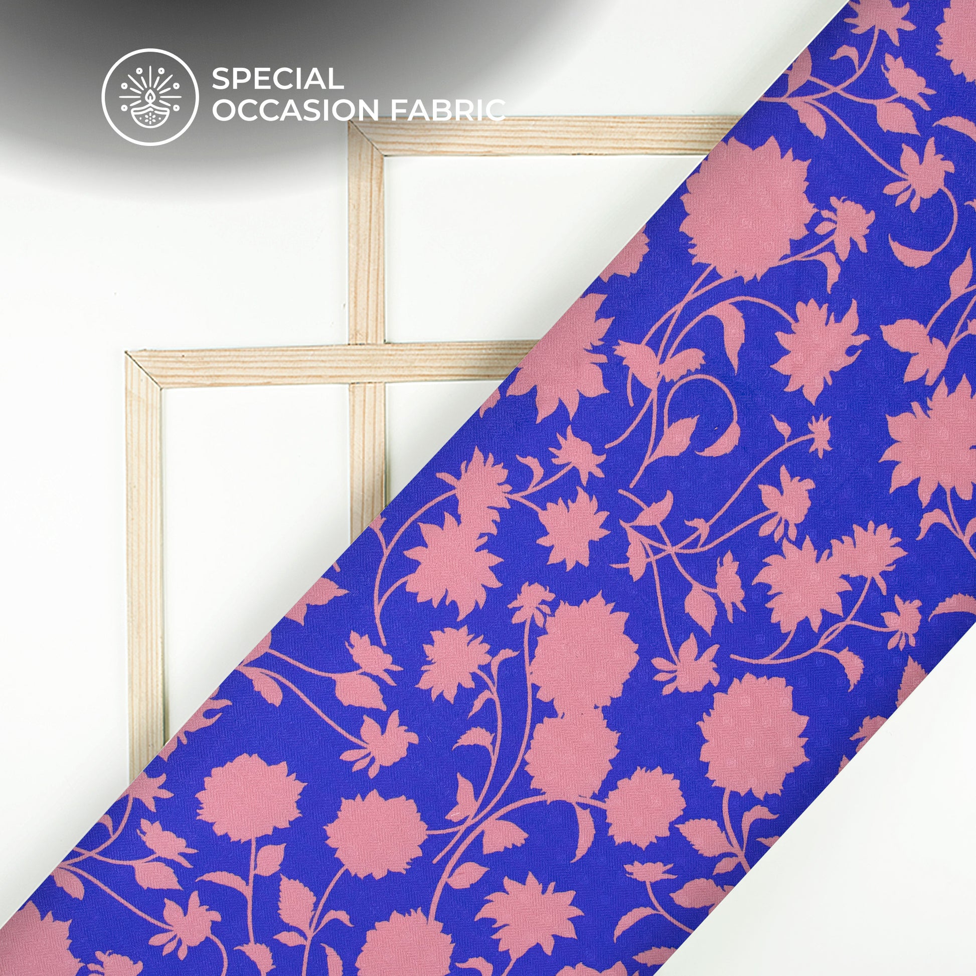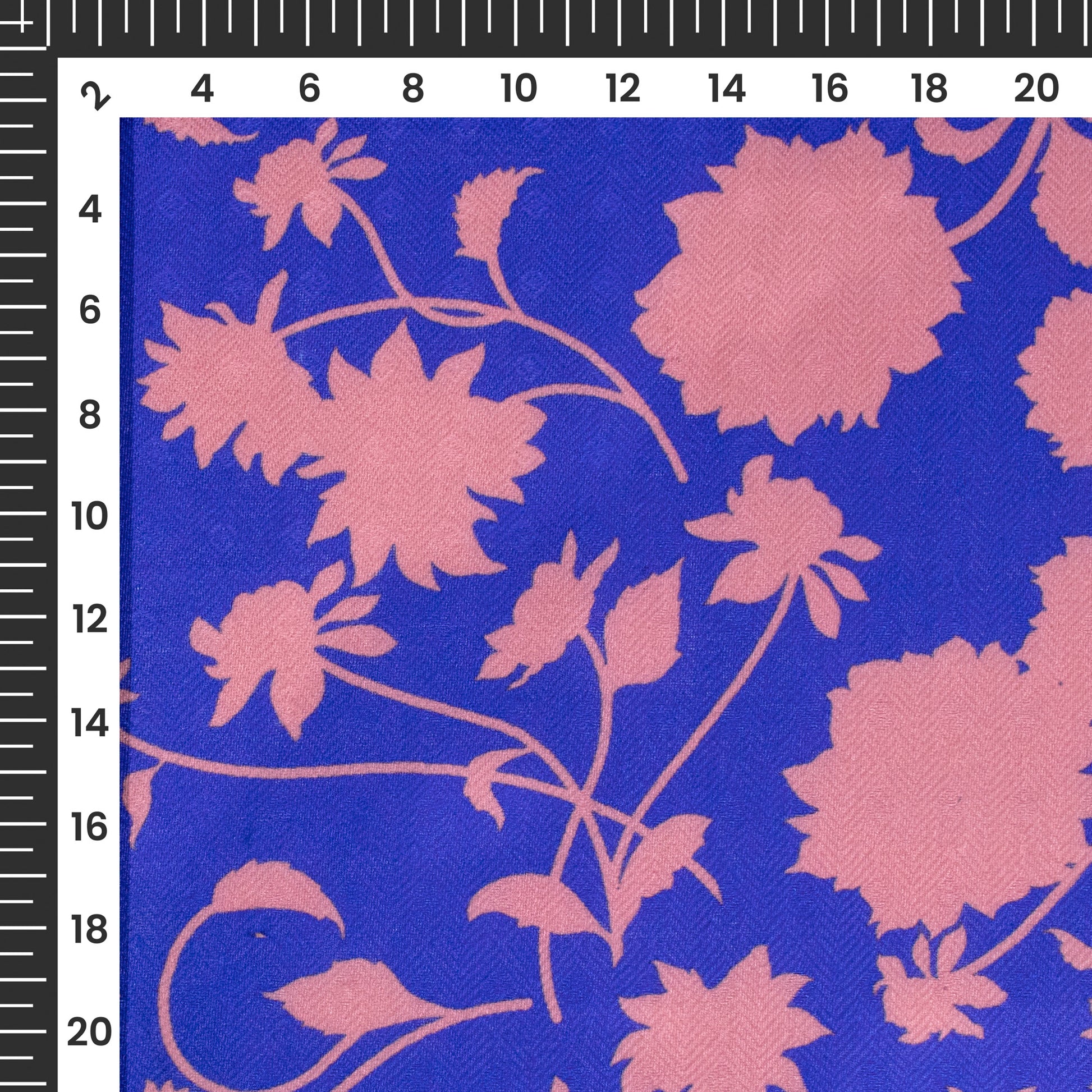 Royal Blue Floral Digital Print Elegant Blend Pashmina Fabric