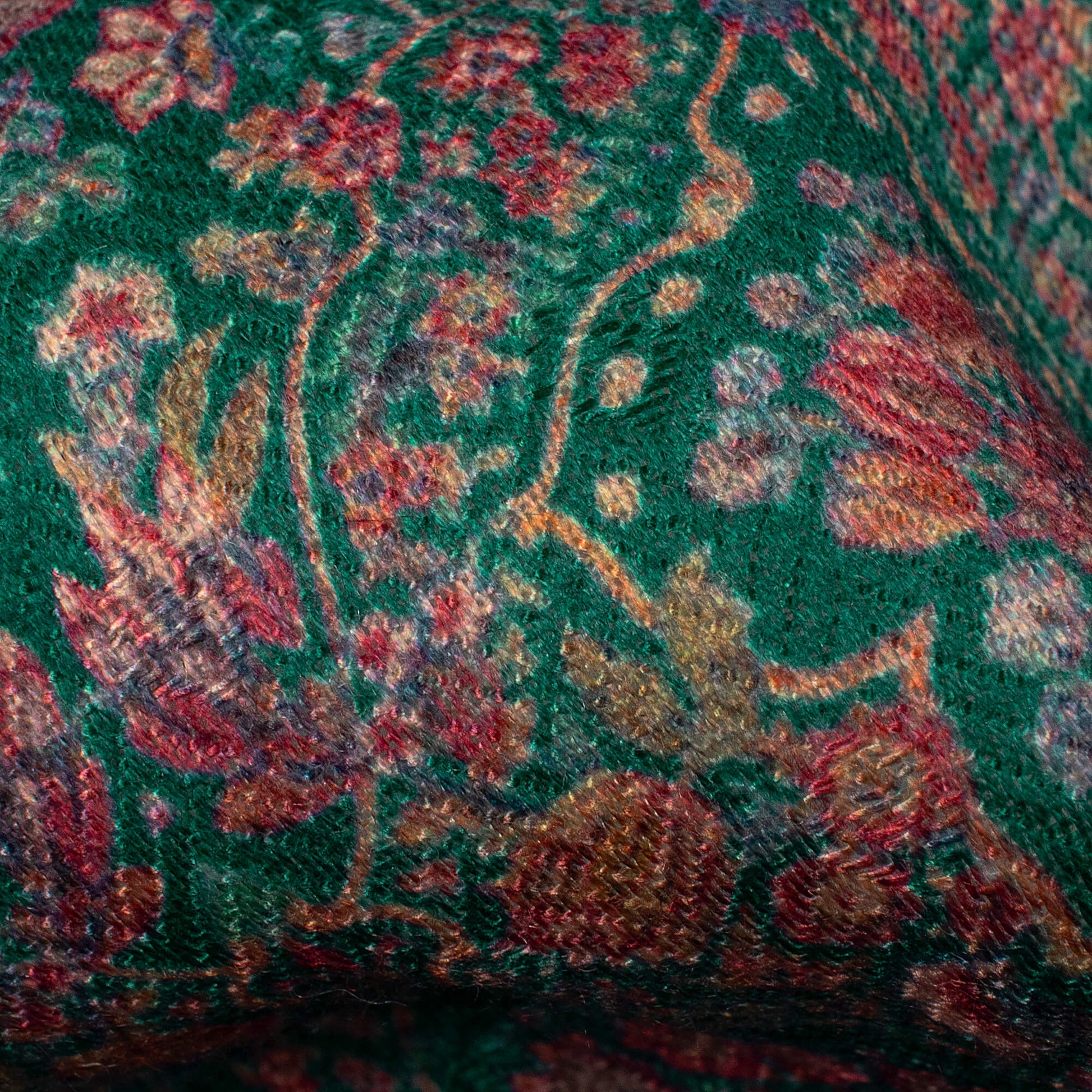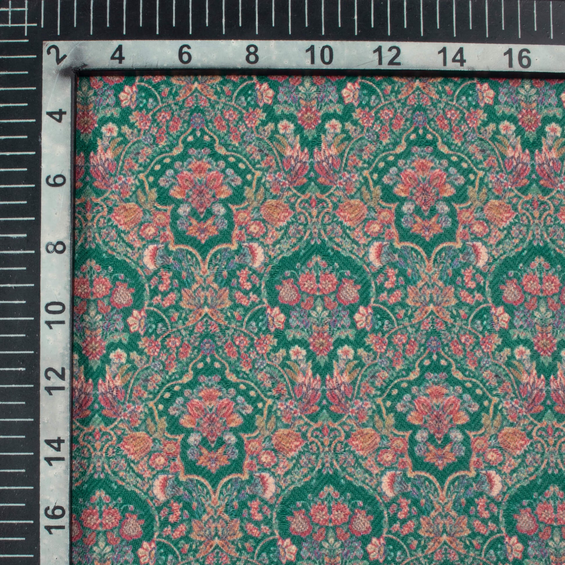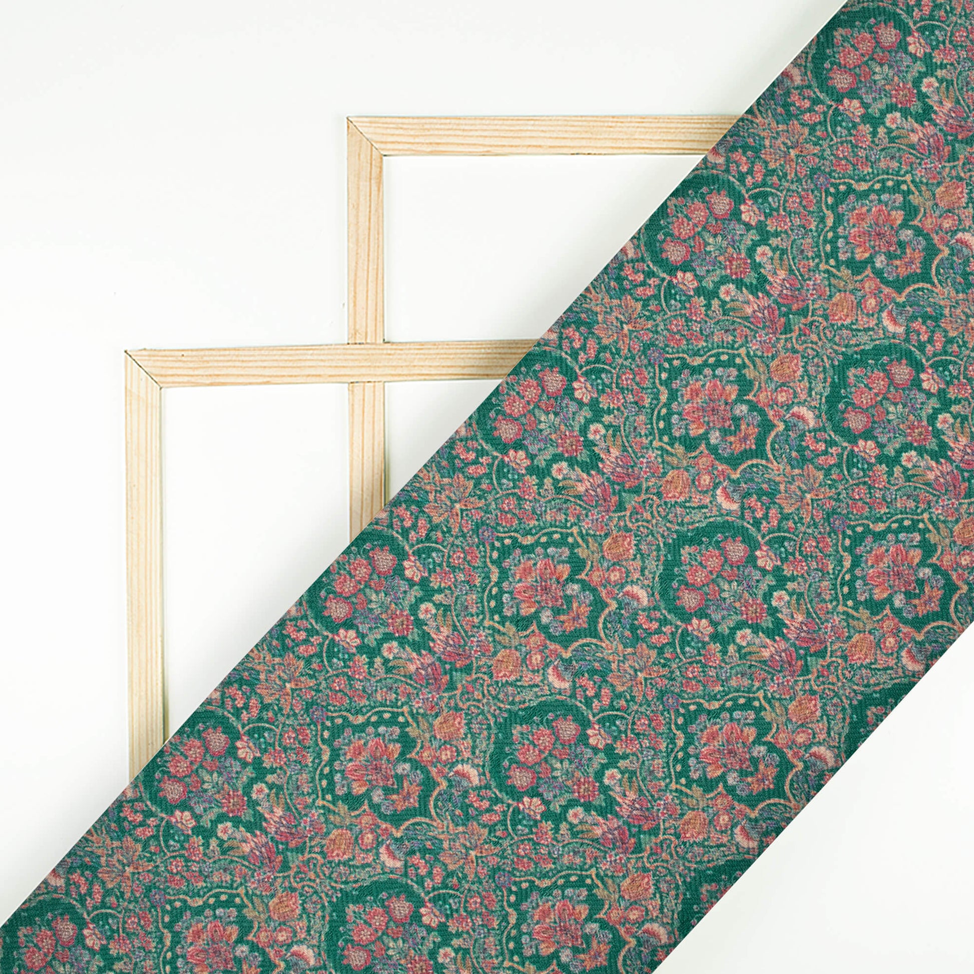 Pine Green And Red Ethnic Pattern Digital Print Elegant Blend Pashmina Fabric