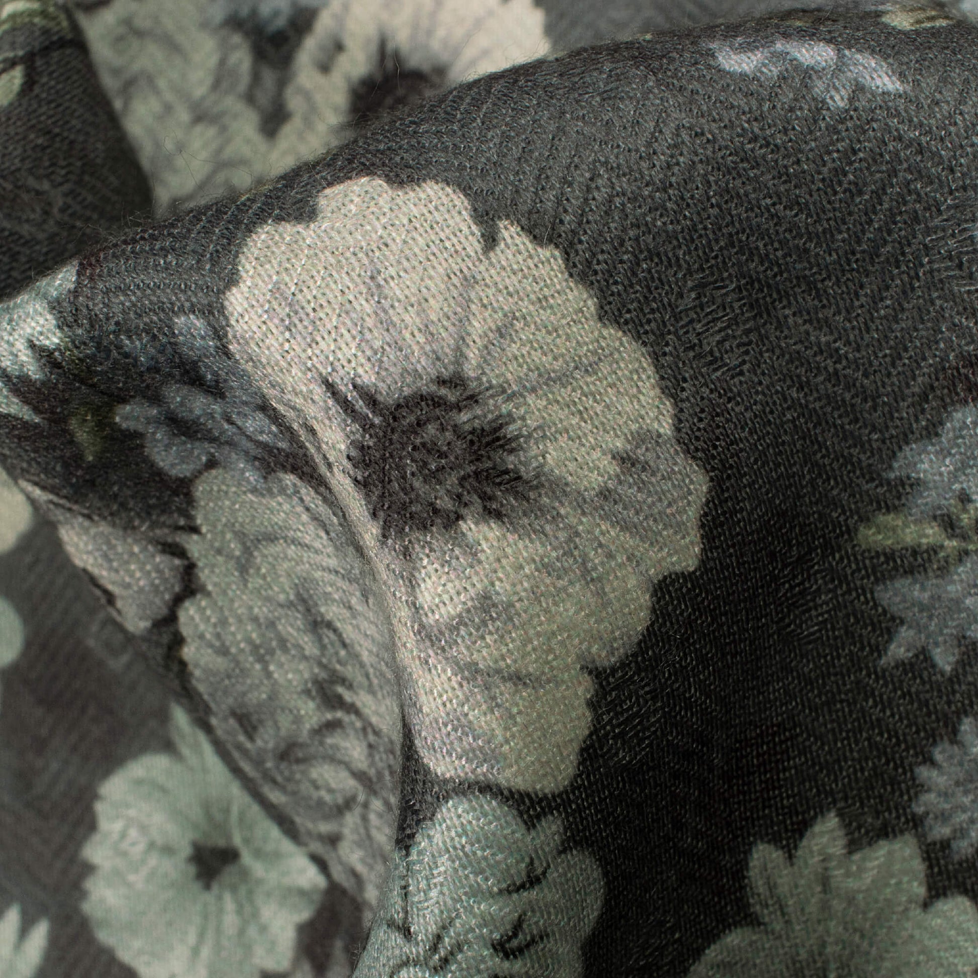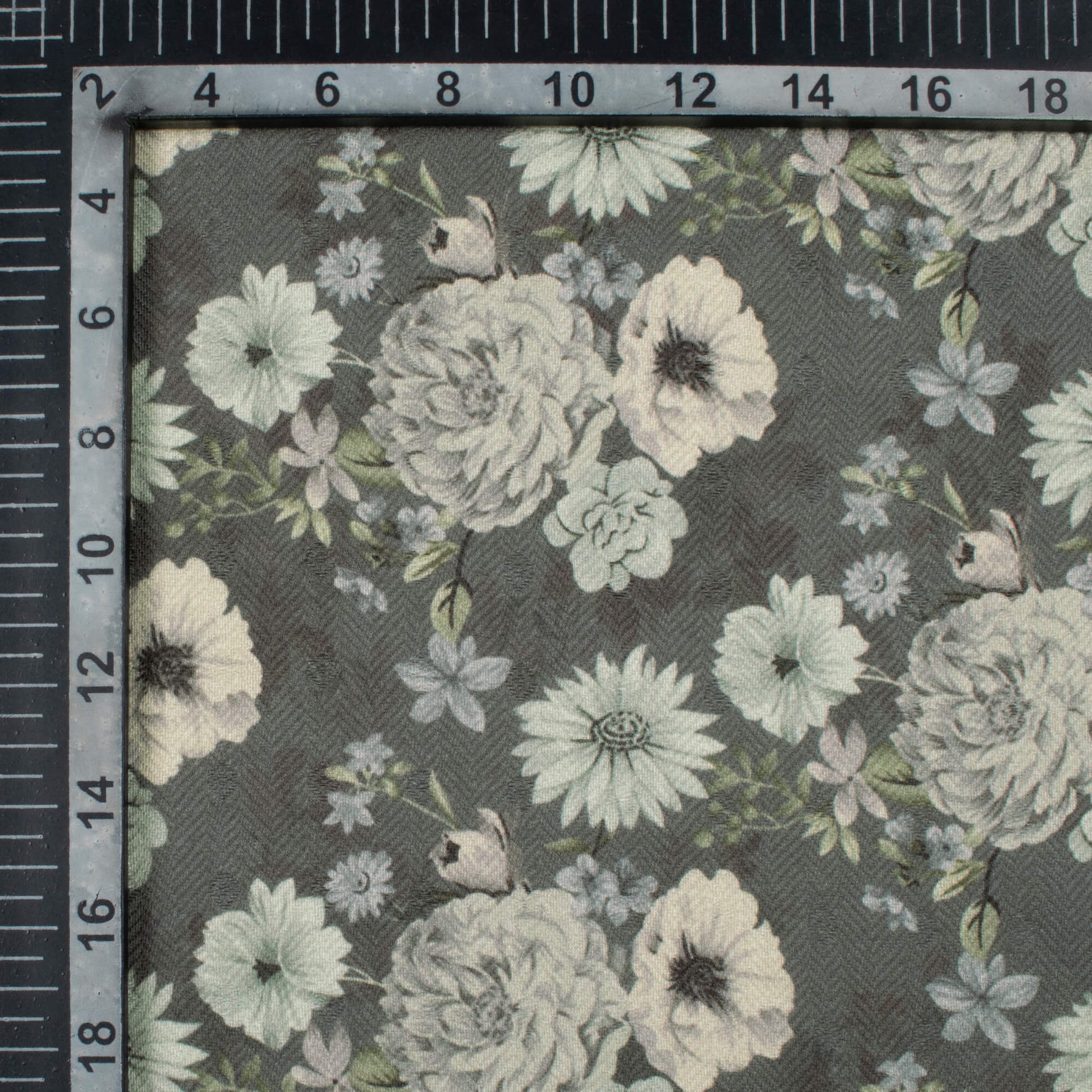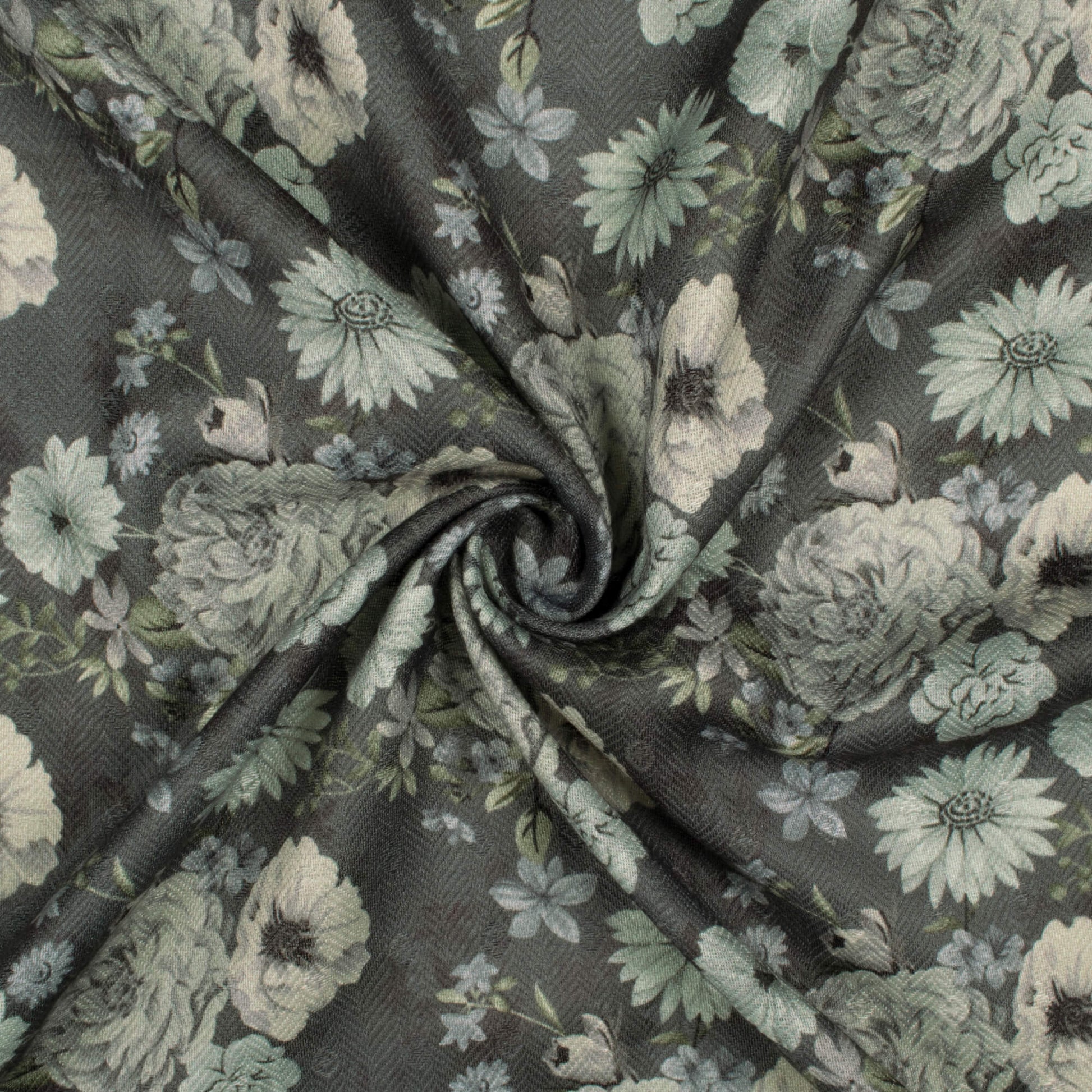 Shadow Grey And Cream Floral Pattern Digital Print Elegant Blend Pashmina Fabric