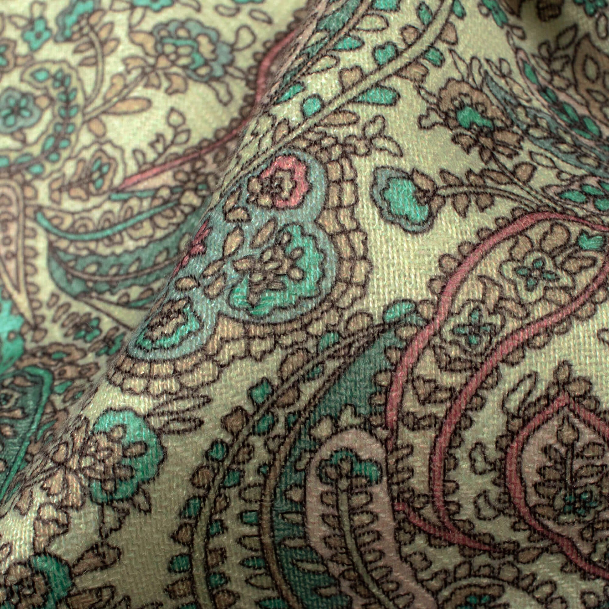 Swamp Green And Cream Paisley Pattern Digital Print Elegant Blend Pashmina Fabric