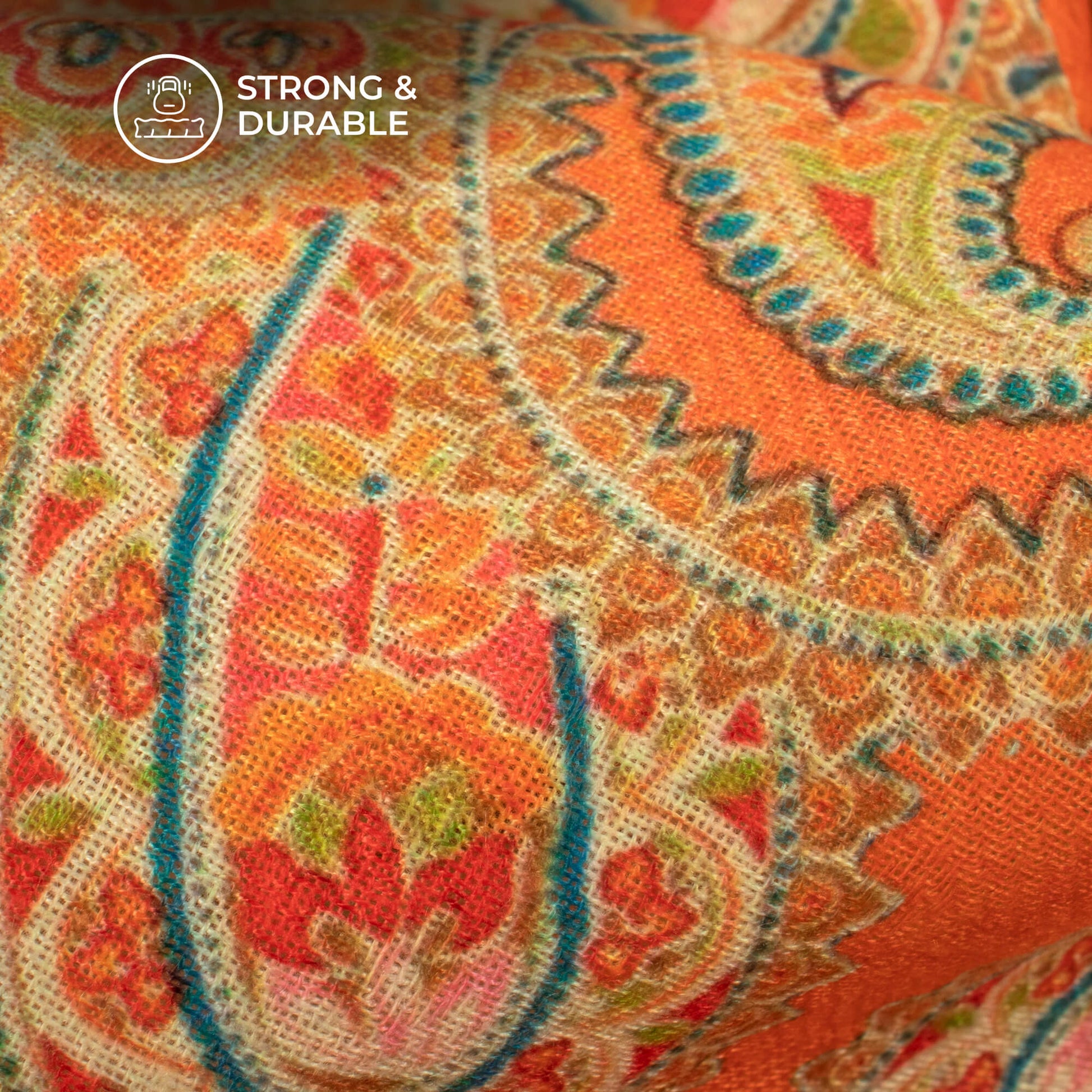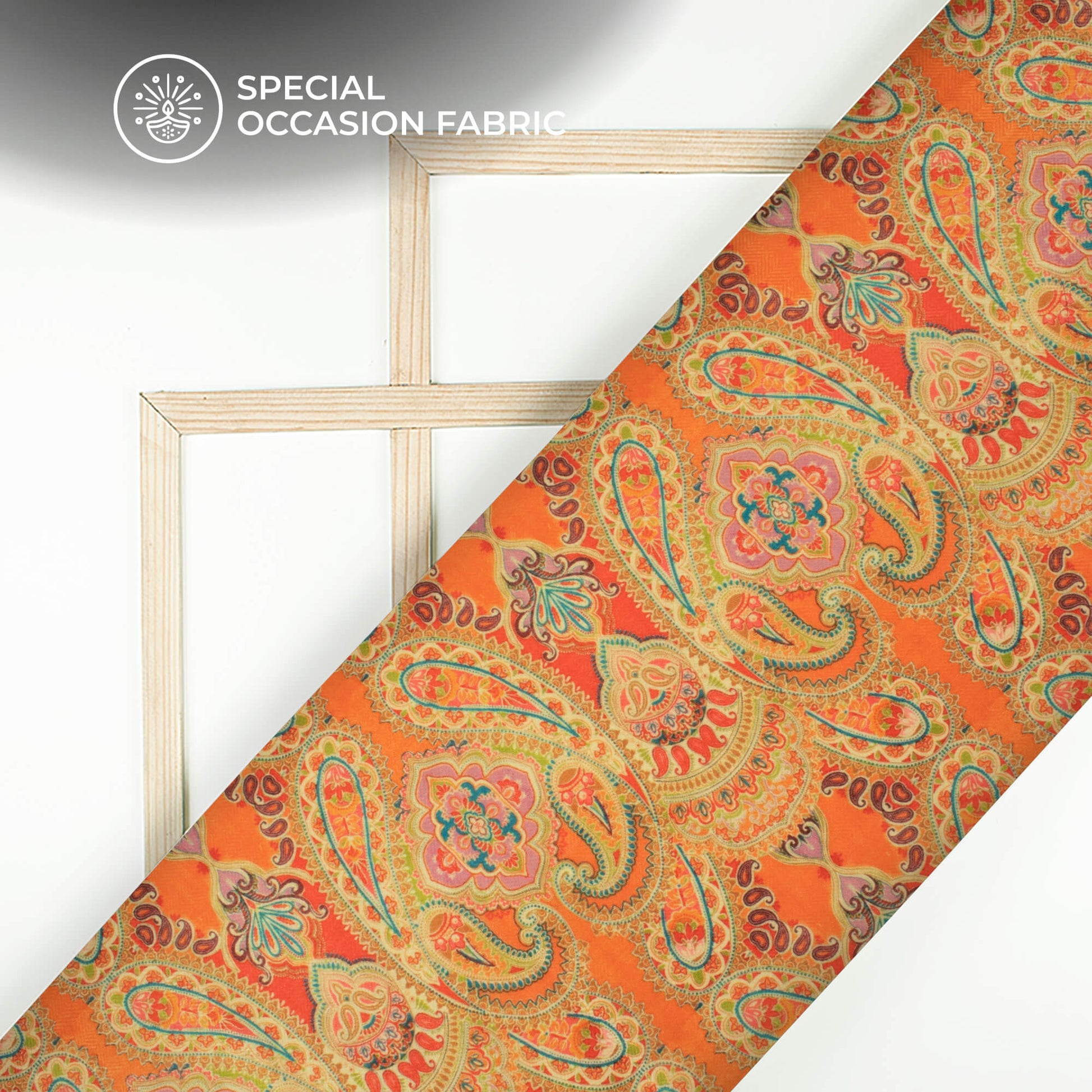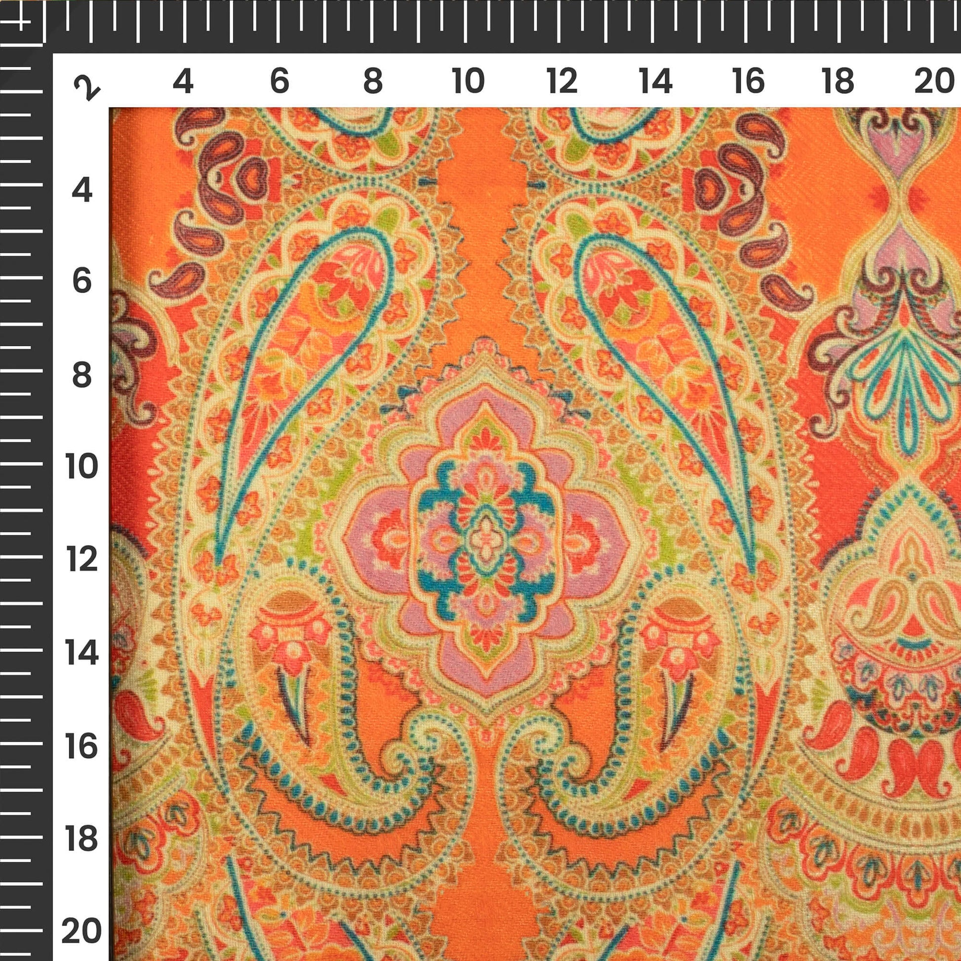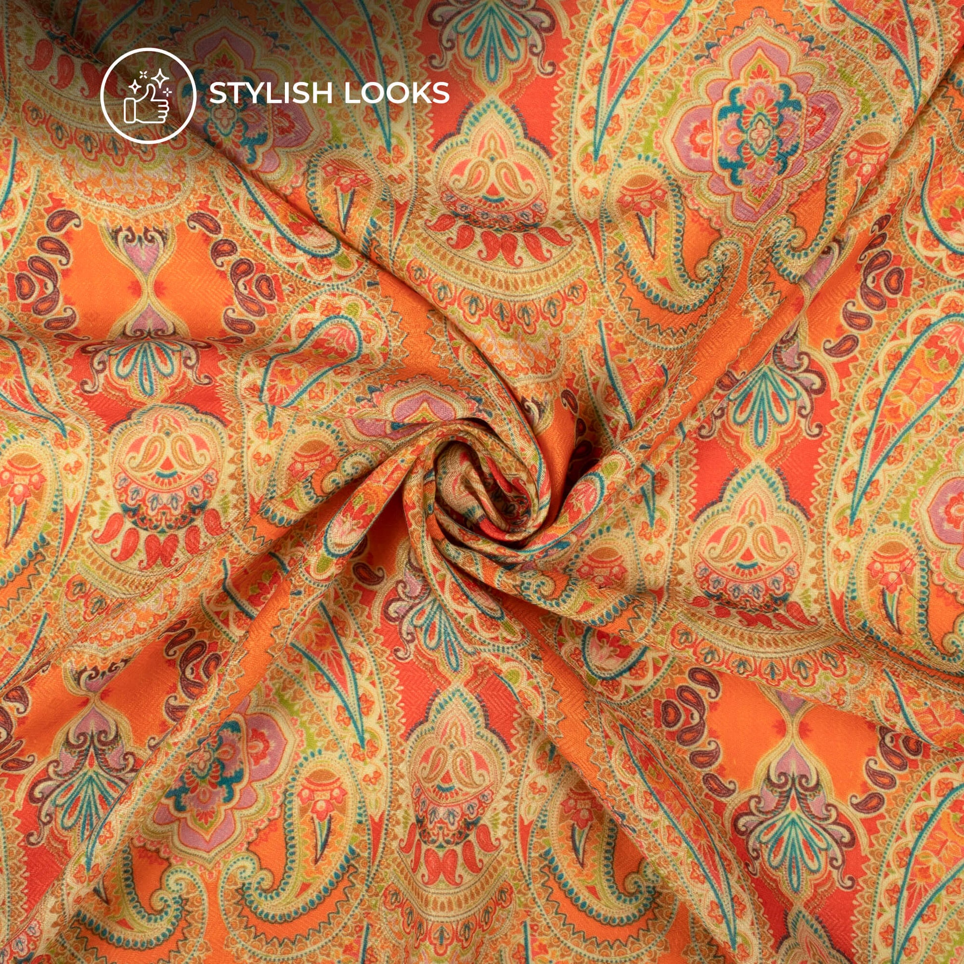 Tiger Orange Paisley Digital Print Elegant Blend Pashmina Fabric