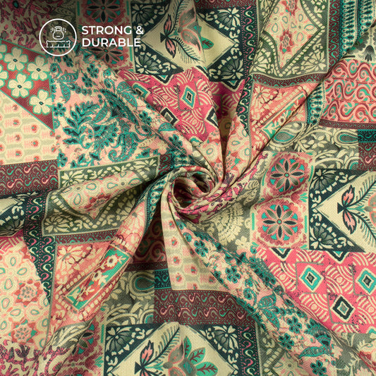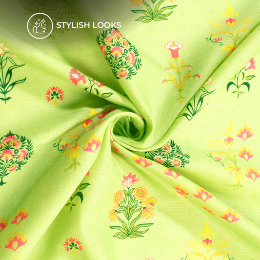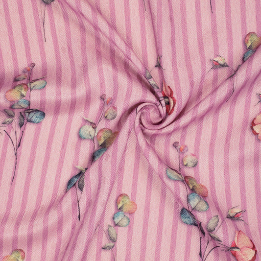 Pink Green Floral Digital Print Elegant Blend Pashmina Fabric Pink Green Floral Digital Print Elegant Blend Pashmina Fabric