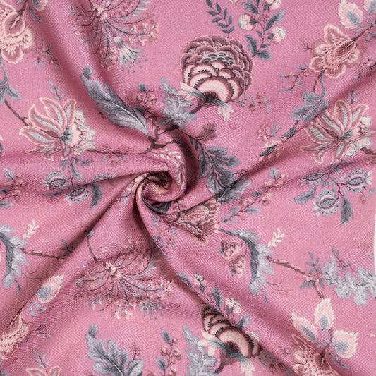Flamingo Pink Floral Digital Print Elegant Blend Pashmina Fabric Flamingo Pink Floral Digital Print Elegant Blend Pashmina Fabric