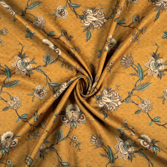 Dijjon Yellow And Brown Floral Pattern Digital Print Elegant Blend Pashmina Fabric Dijjon Yellow And Brown Floral Pattern Digital Print Elegant Blend Pashmina Fabric