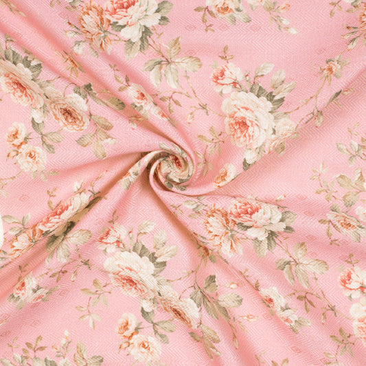 Lamonade Pink And Cream Floral Pattern Digital Print Elegant Blend Pashmina Fabric Lamonade Pink And Cream Floral Pattern Digital Print Elegant Blend Pashmina Fabric