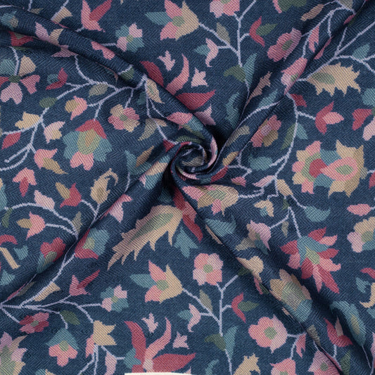 Navy Blue Floral Digital Print Elegant Blend Pashmina Fabric Navy Blue Floral Digital Print Elegant Blend Pashmina Fabric