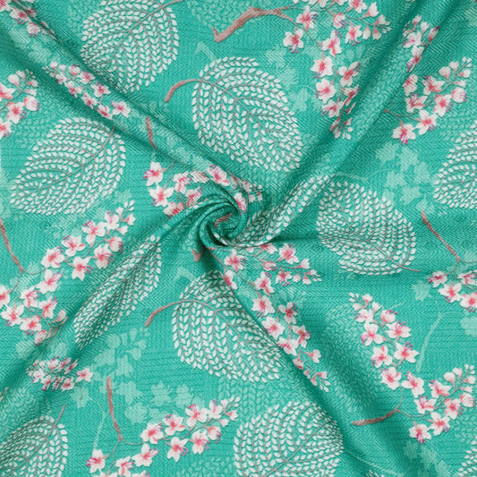 -10% offTurquoise Blue And Pink Leaf Pattern Digital Print Elegant Blend Pashmina Fabric Turquoise Blue And Pink Leaf Pattern Digital Print Elegant Blend Pashmina Fabric
