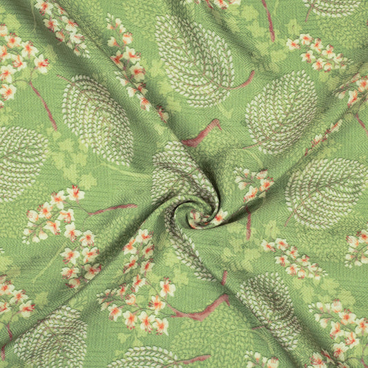 -10% offMoss Green And Pink Leaf Pattern Digital Print Elegant Blend Pashmina Fabric Moss Green And Pink Leaf Pattern Digital Print Elegant Blend Pashmina Fabric