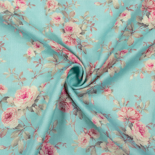 -10% offSky Blue And Pink Floral Pattern Digital Print Elegant Blend Pashmina Fabric Sky Blue And Pink Floral Pattern Digital Print Elegant Blend Pashmina Fabric