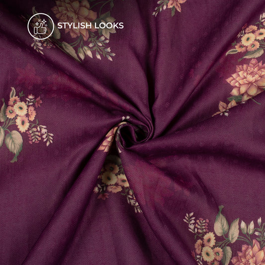 -10% offPlum Purple Floral Digital Print Elegant Blend Pashmina Fabric Plum Purple Floral Digital Print Elegant Blend Pashmina Fabric
