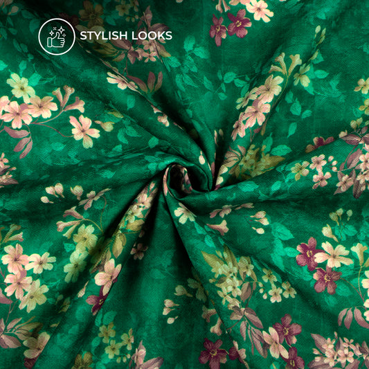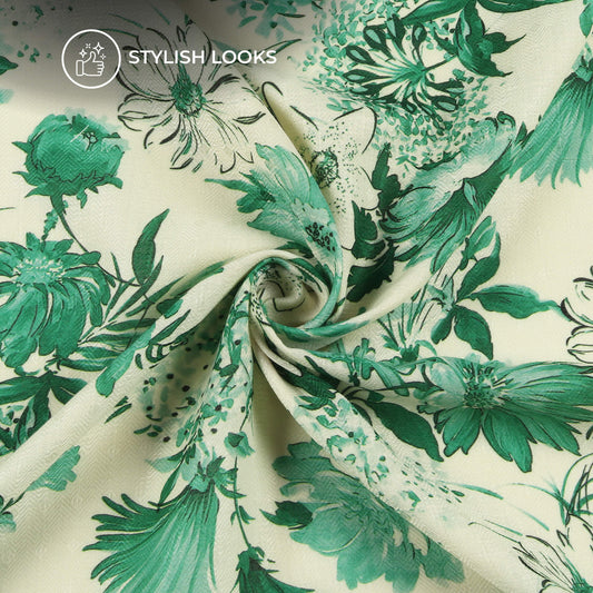 Pine Green Floral Digital Print Elegant Blend Pashmina Fabric Pine Green Floral Digital Print Elegant Blend Pashmina Fabric