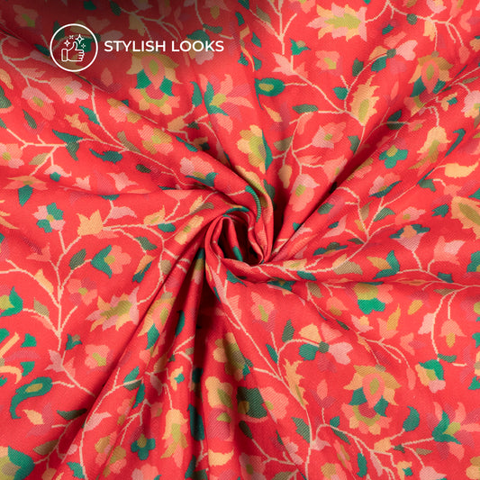 Candy Red Floral Digital Print Blend Pashmina Fabric Candy Red Floral Digital Print Blend Pashmina Fabric