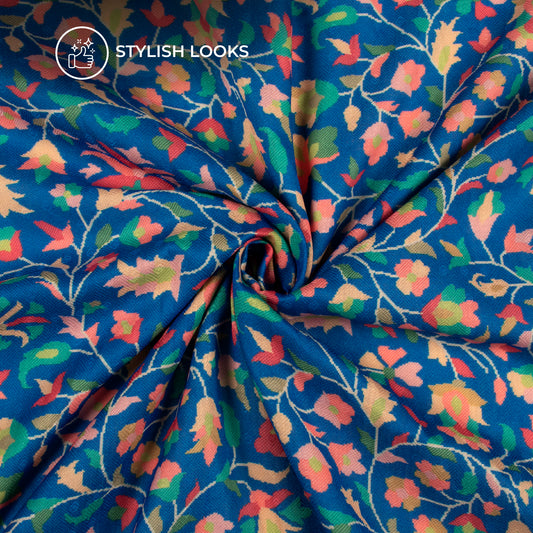 Royal Blue Floral Digital Print Blend Pashmina Fabric Royal Blue Floral Digital Print Blend Pashmina Fabric