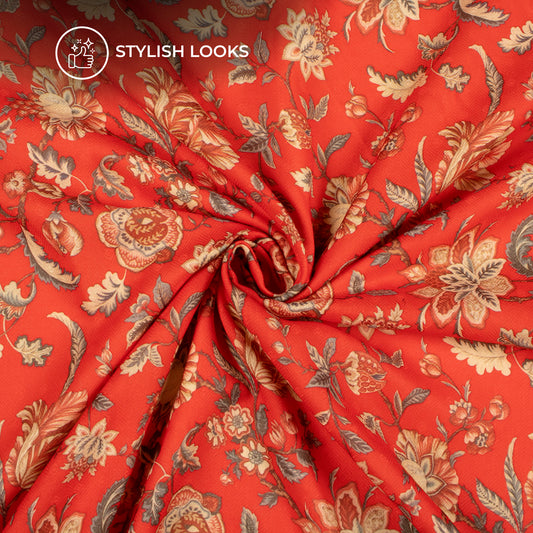 Tiger Orange Floral Digital Print Elegant Blend Pashmina Fabric Tiger Orange Floral Digital Print Elegant Blend Pashmina Fabric