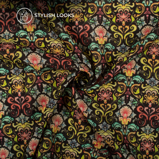 Black Floral Digital Print Elegant Blend Pashmina Fabric Black Floral Digital Print Elegant Blend Pashmina Fabric