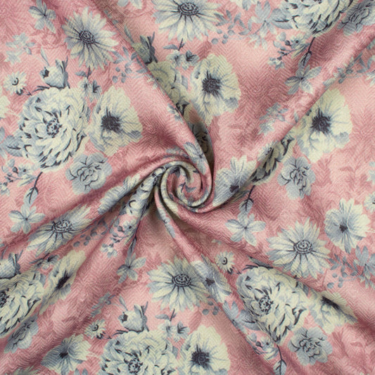 Flamingo Pink And Cream Floral Pattern Digital Print Elegant Blend Pashmina Fabric Flamingo Pink And Cream Floral Pattern Digital Print Elegant Blend Pashmina Fabric