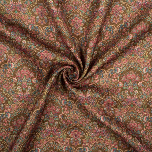 Tawny Brown And Red Ethnic Pattern Digital Print Elegant Blend Pashmina Fabric Tawny Brown And Red Ethnic Pattern Digital Print Elegant Blend Pashmina Fabric