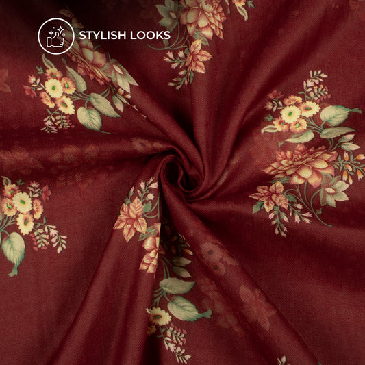 Rose Red Floral Digital Print Blend Pashmina Fabric Rose Red Floral Digital Print Blend Pashmina Fabric