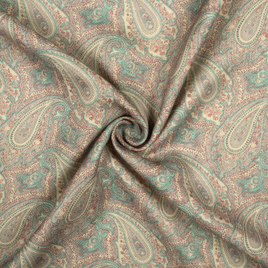 Oat Beige And Sea Green Paisley Pattern Digital Print Elegant Blend Pashmina Fabric Oat Beige And Sea Green Paisley Pattern Digital Print Elegant Blend Pashmina Fabric