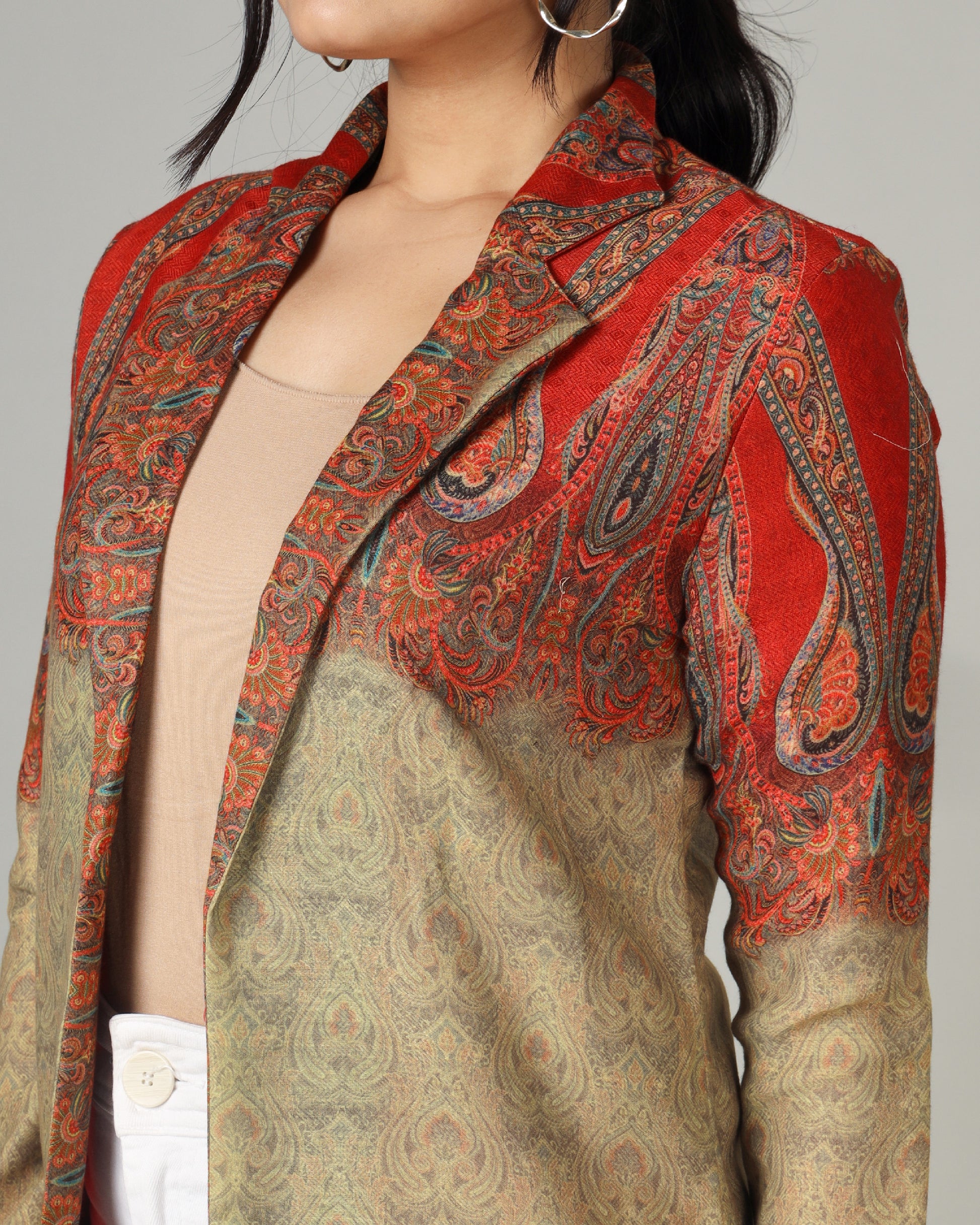 Stay cozy and stylish with our Pashmina Jacket. This versatile piece features a luxurious fabric perfect for any occasion, making it a must-have addition to your wardrobe. Embrace comfort and fashion in one with our Pashmina Jacket!