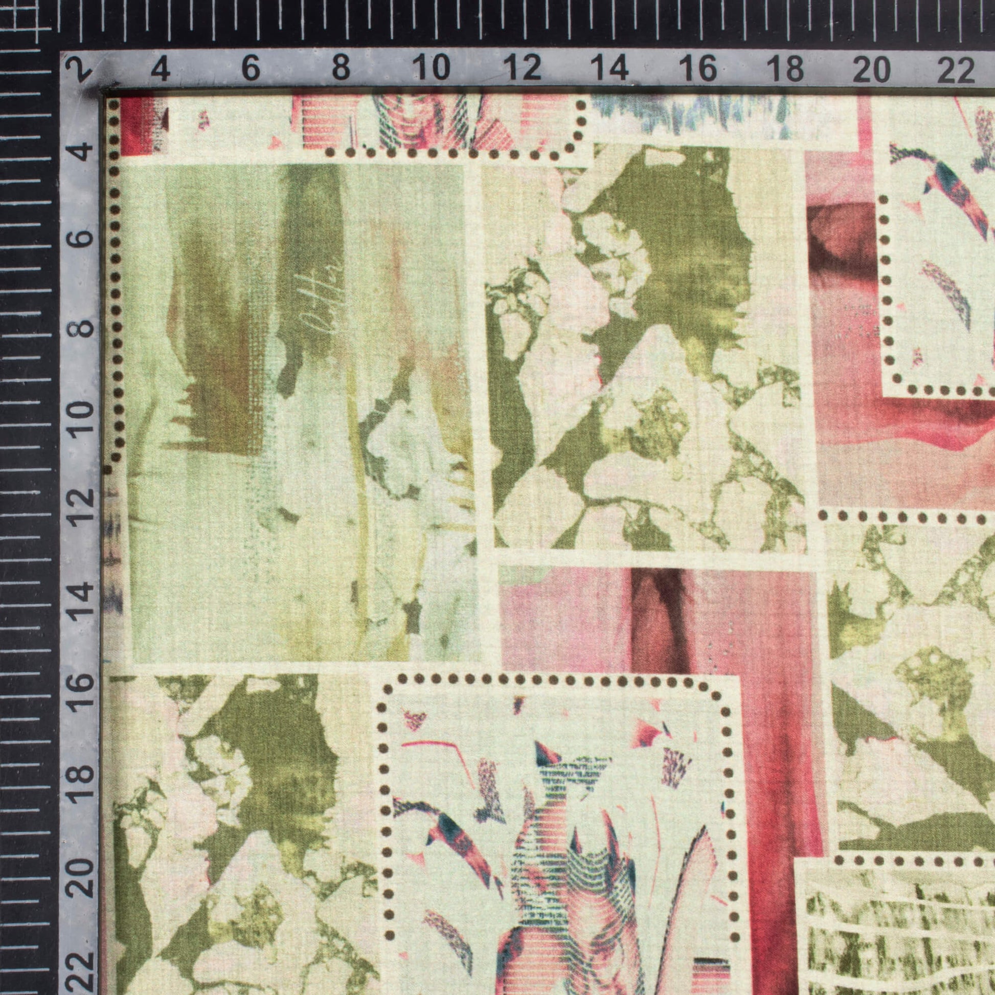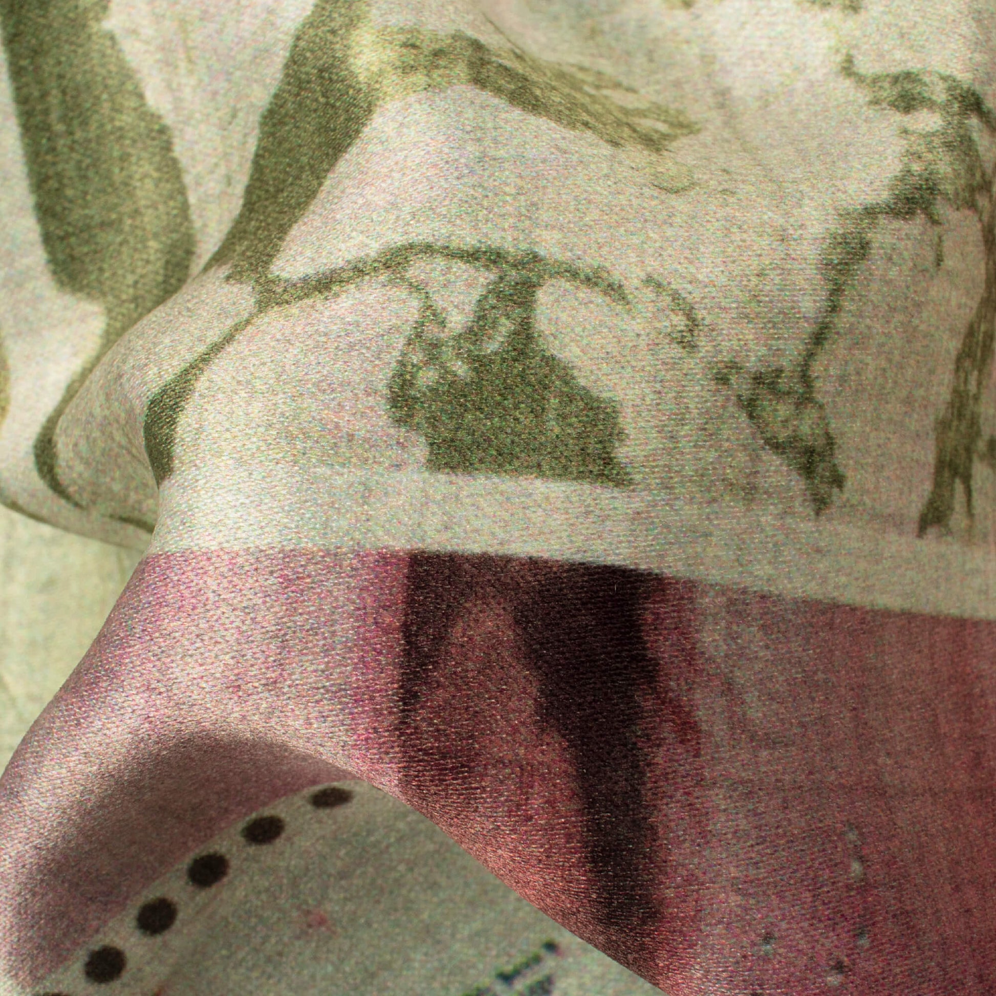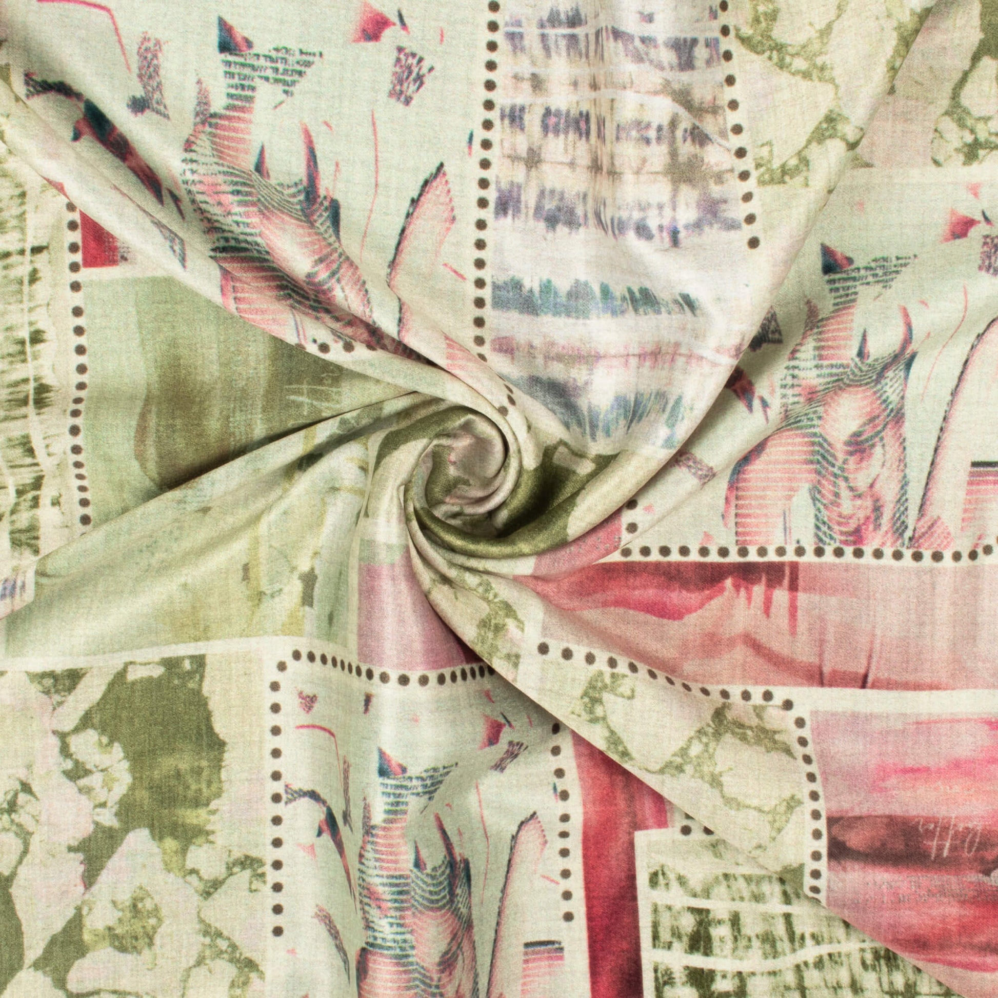 Pistachio Green And Pale Pink Patch Pattern Digital Print Lush Satin Fabric