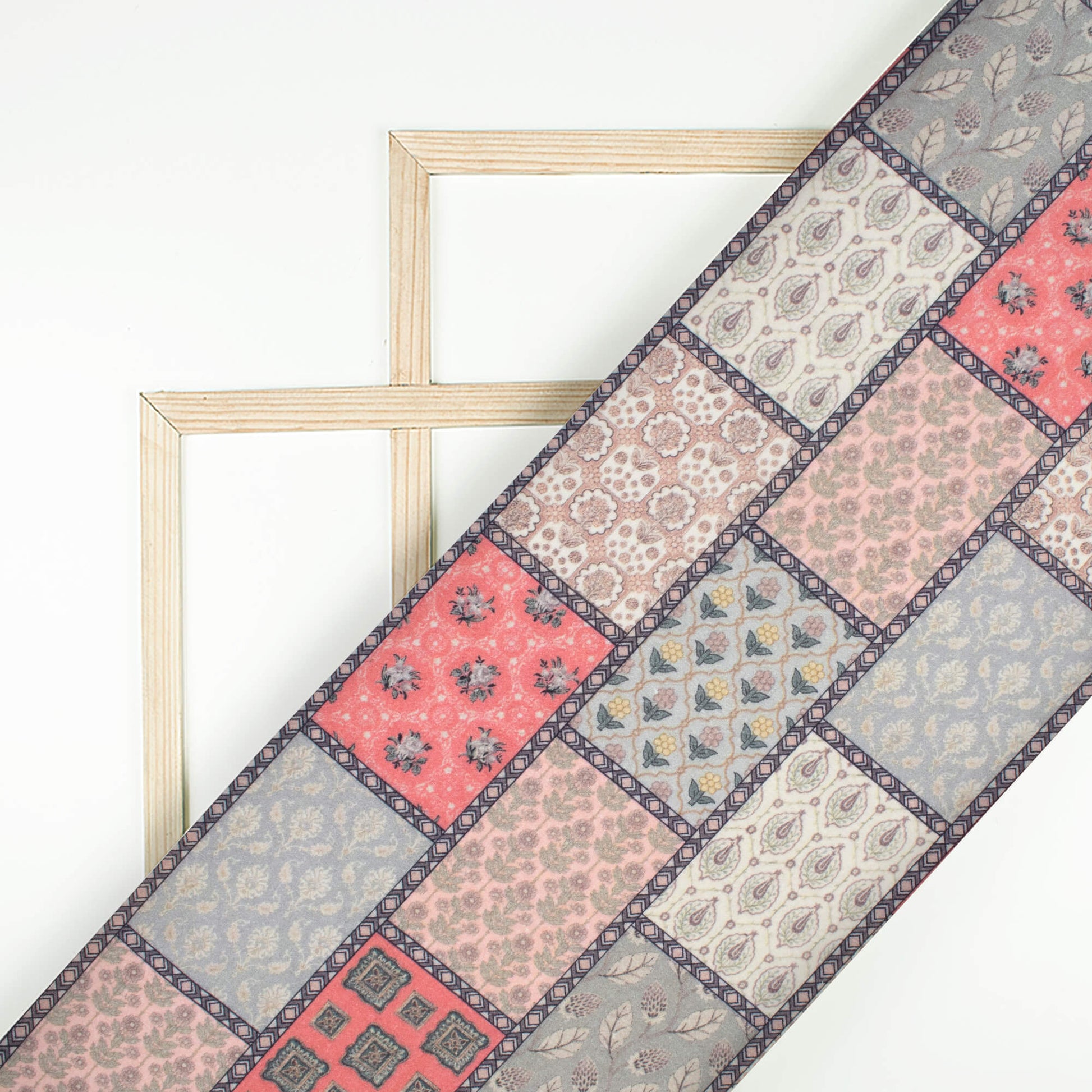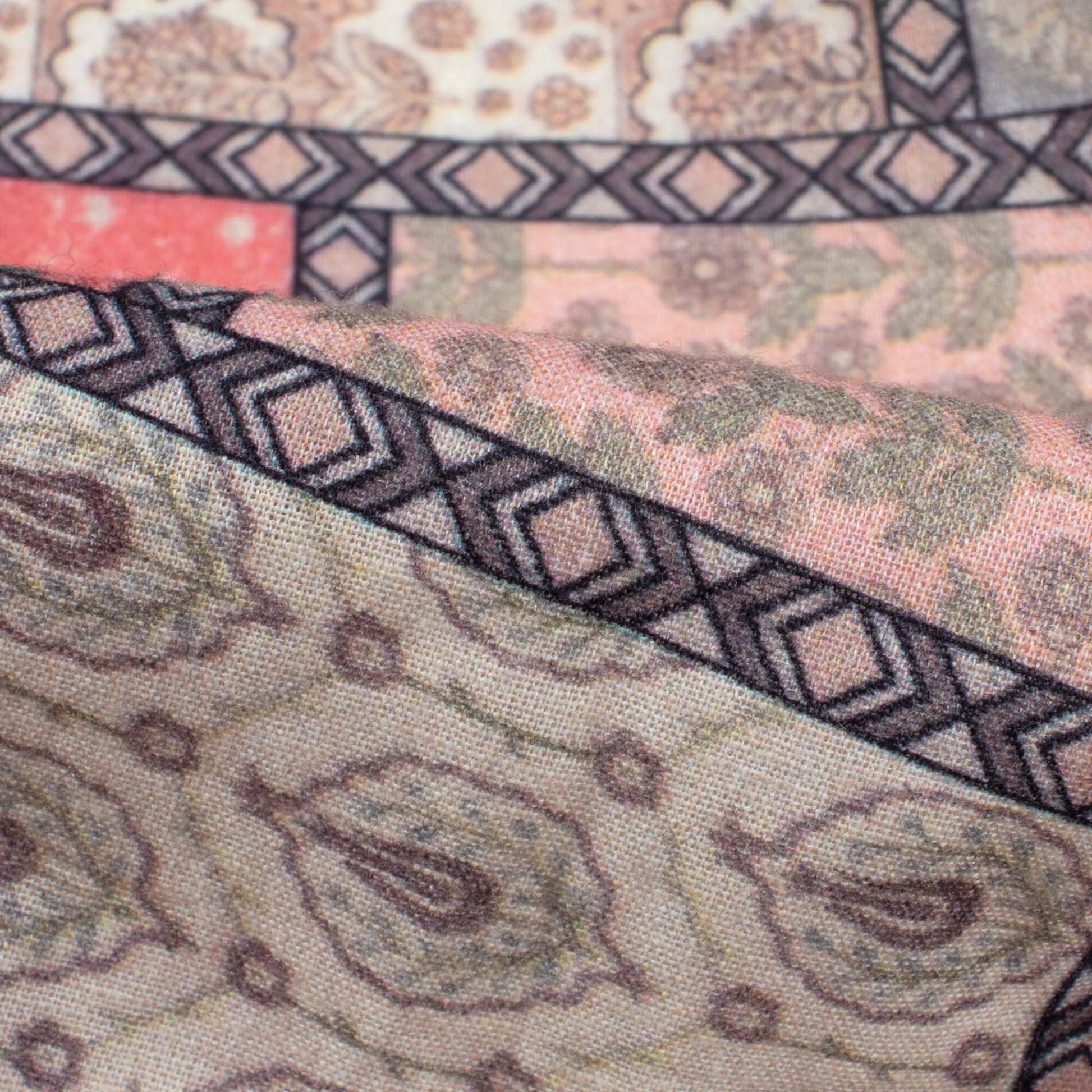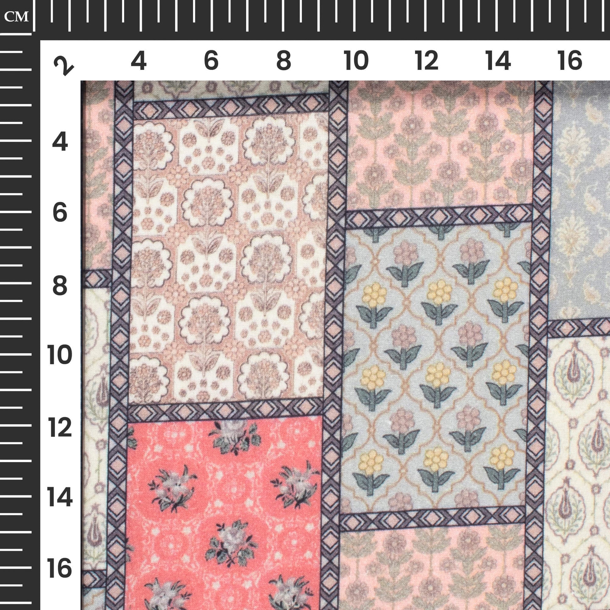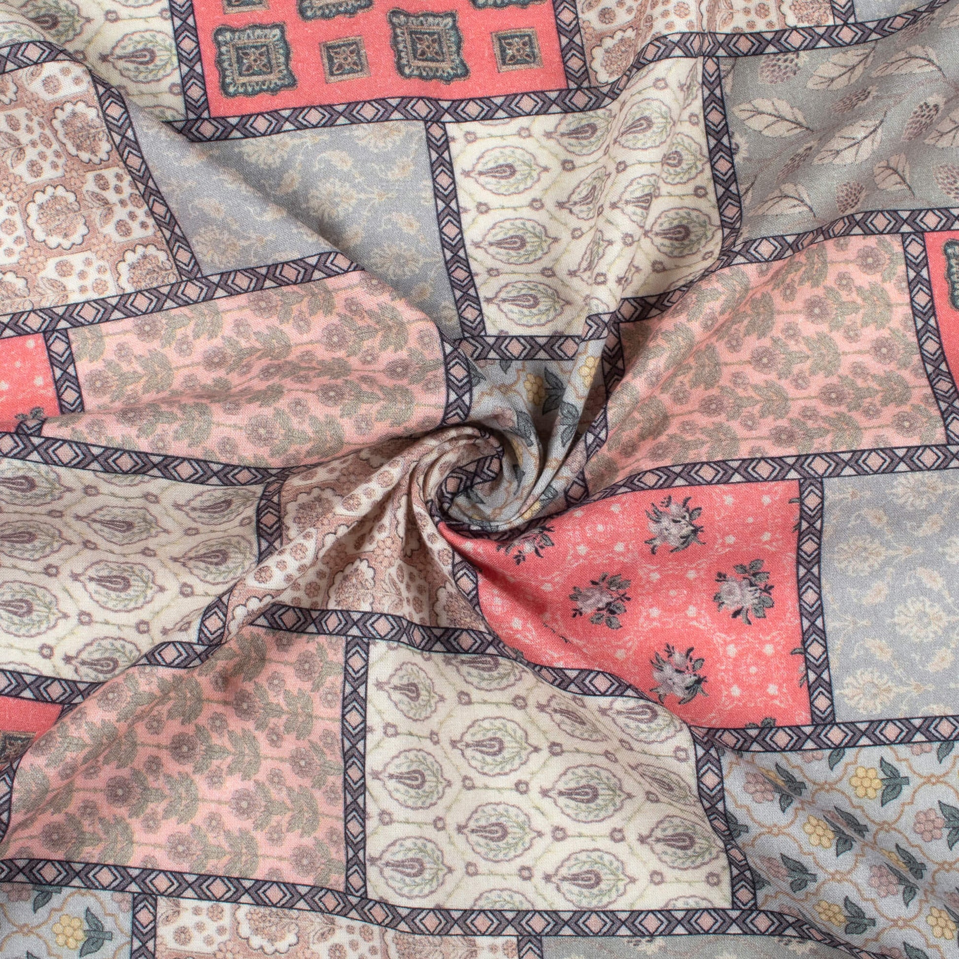 Sage Green And Peach Patch Digital Print Cotton Cambric Fabric