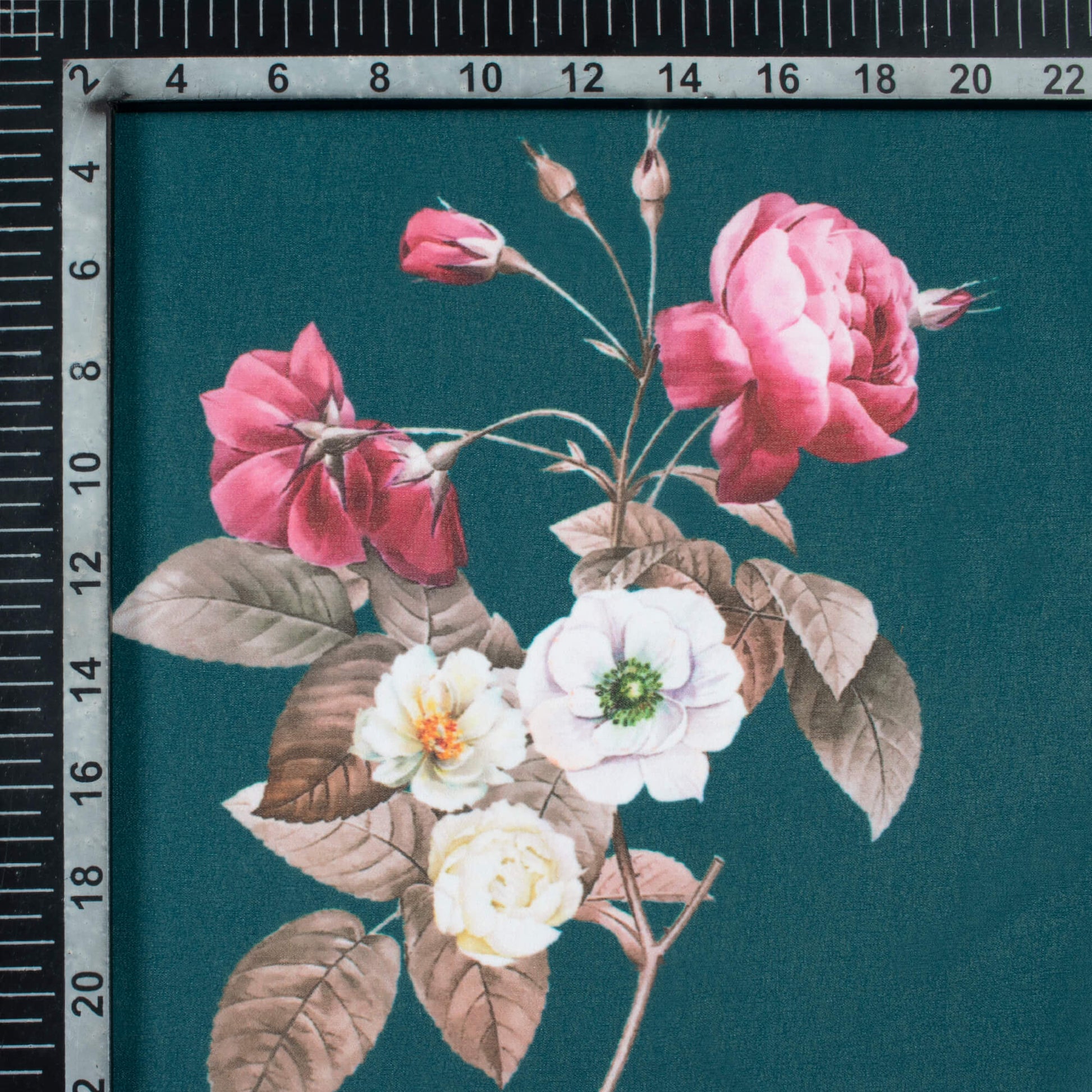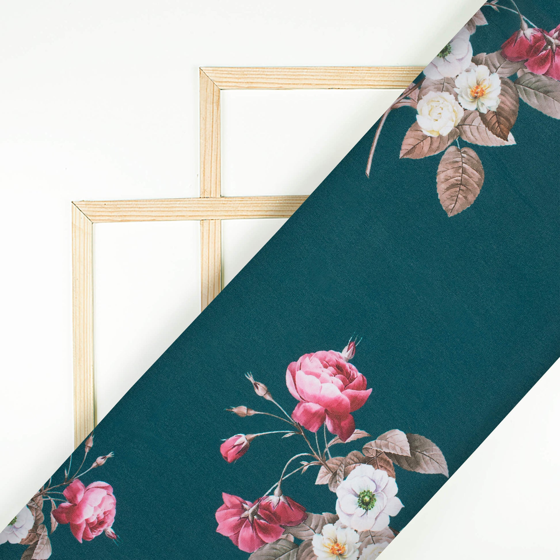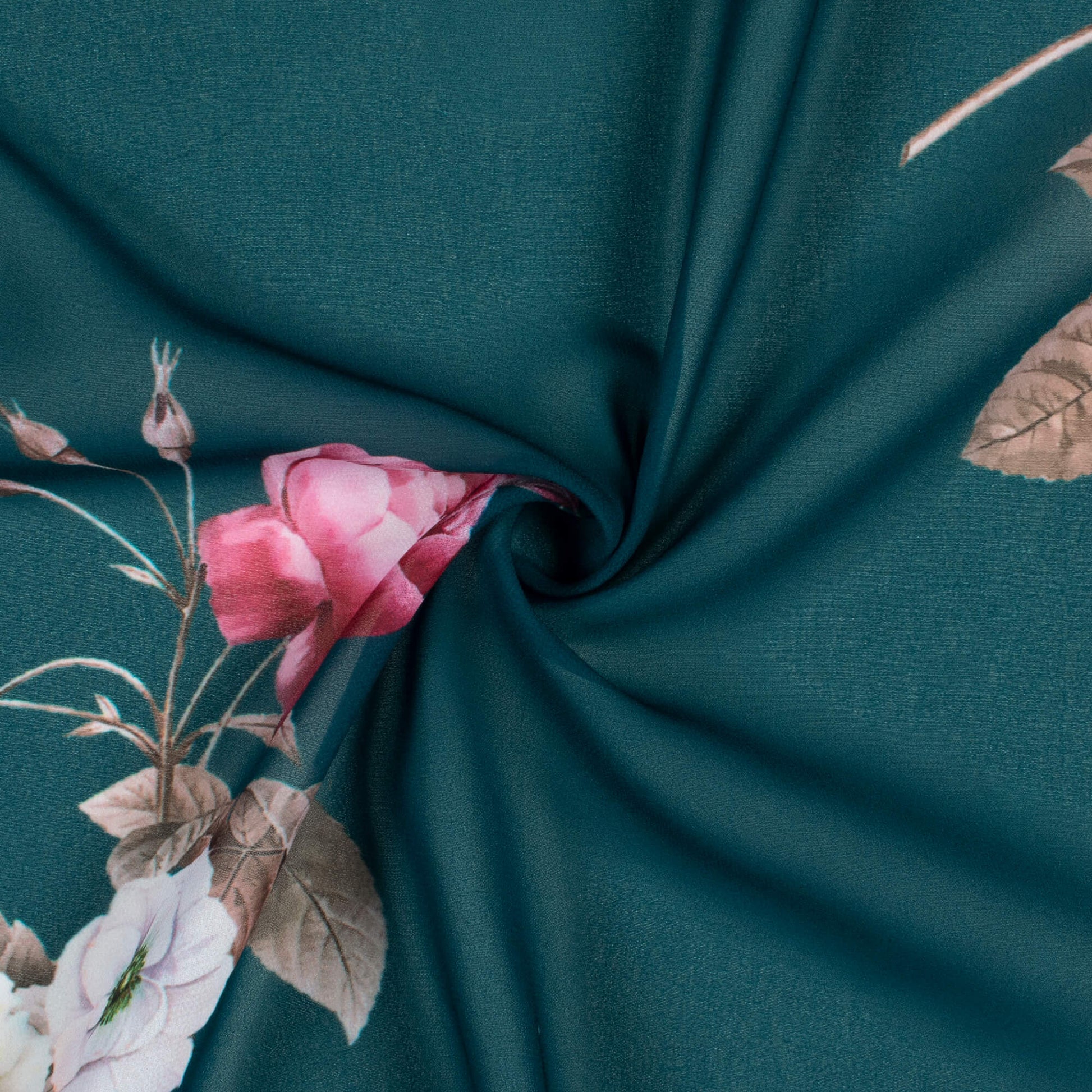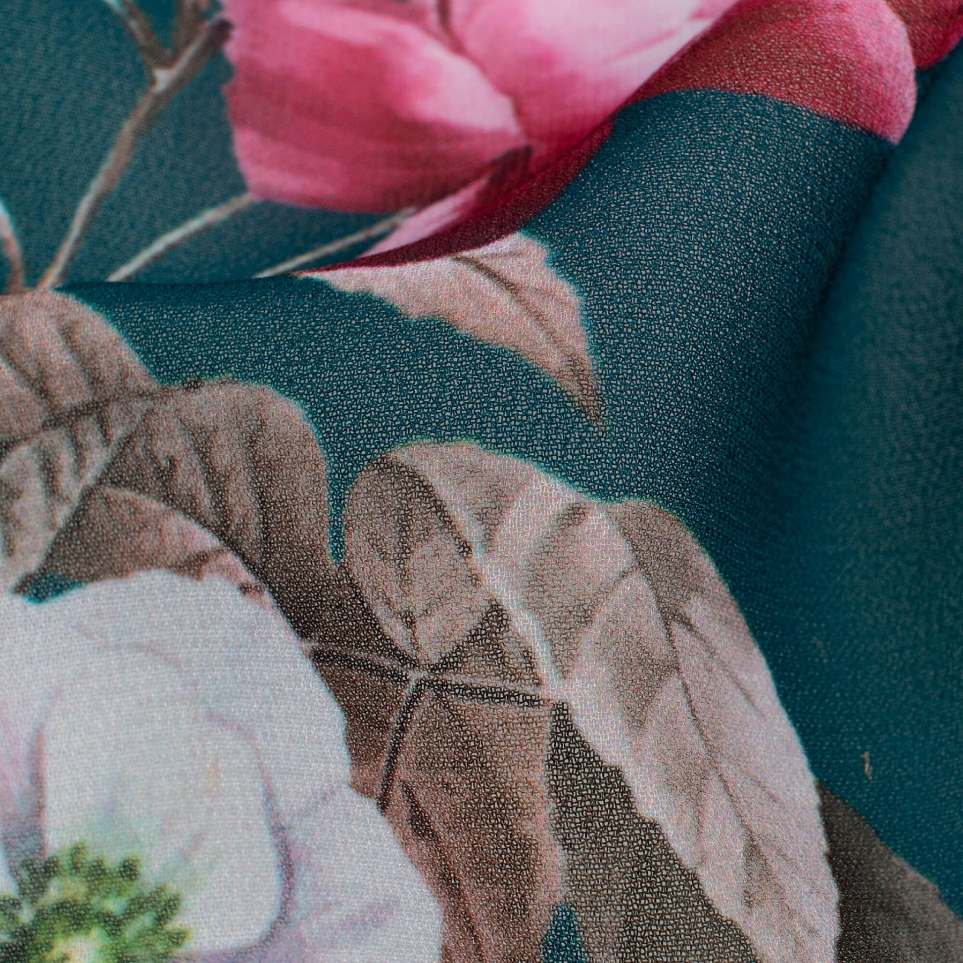 Peacock Blue And Cerise Pink Floral Pattern Digital Print Georgette Fabric