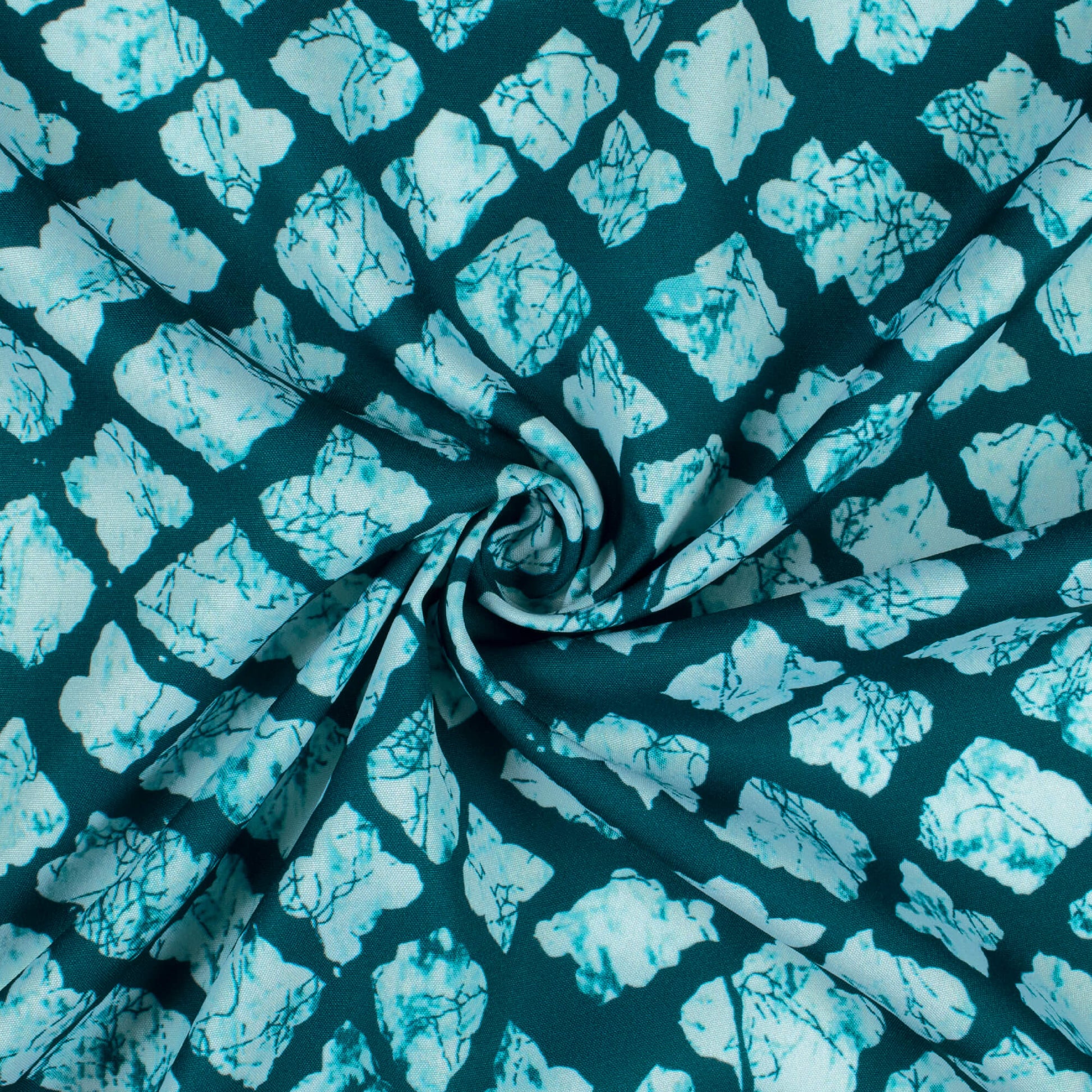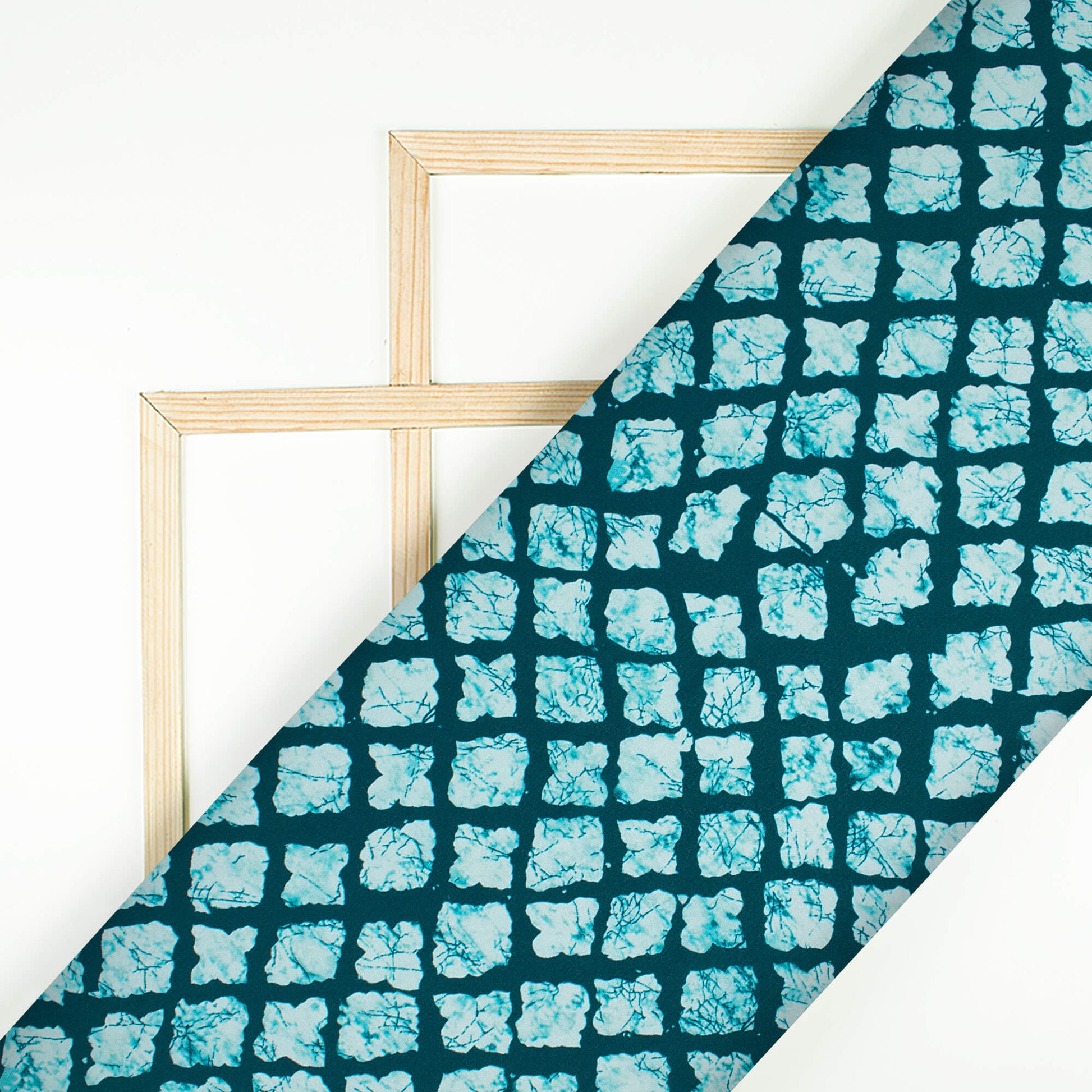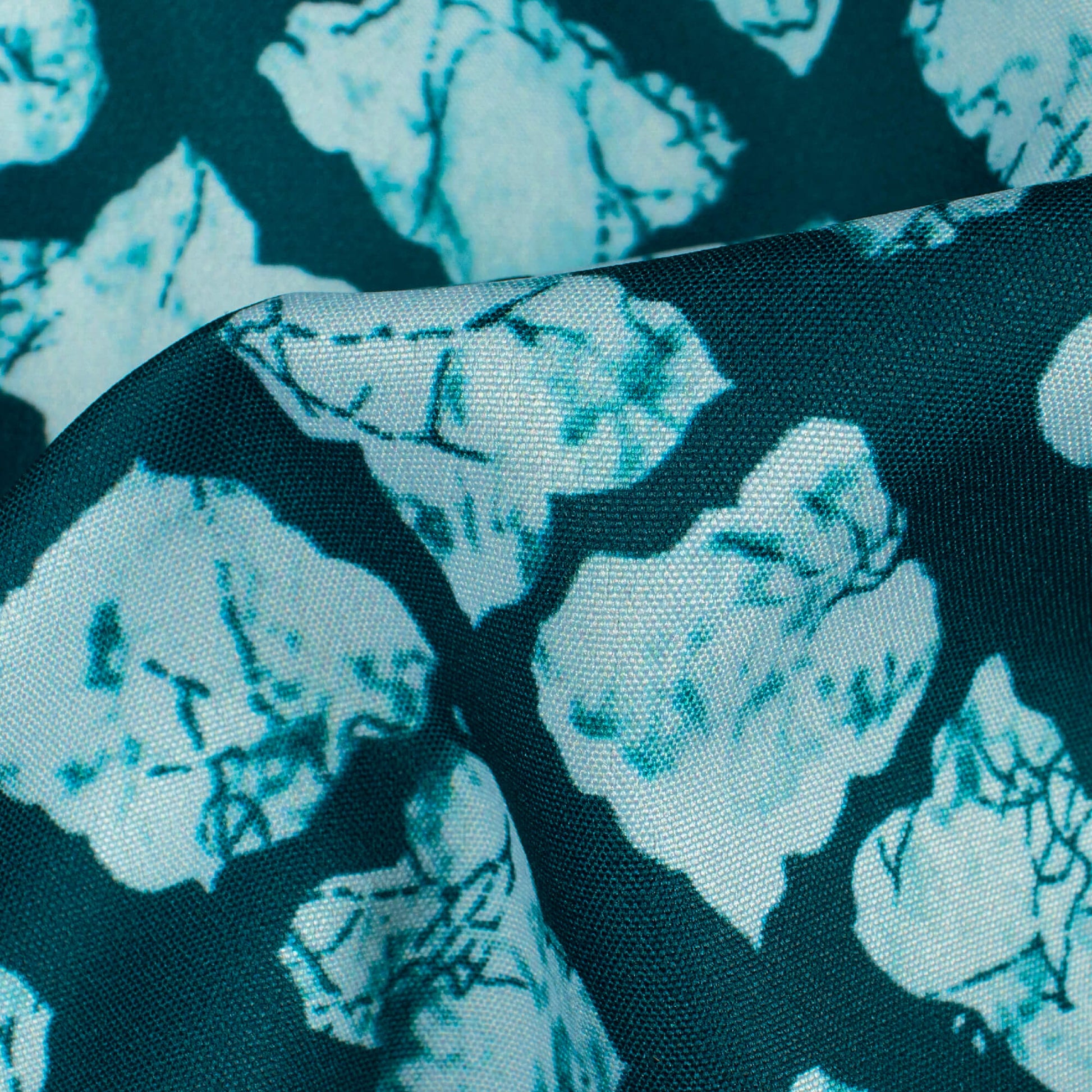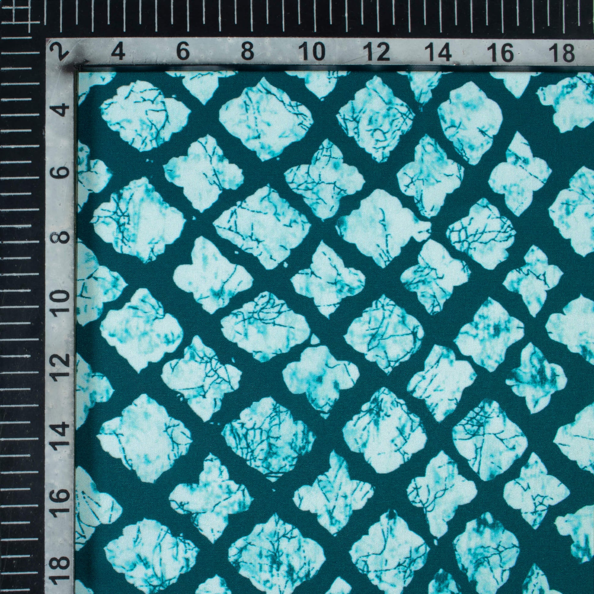 Peacock Blue And White Abstract Pattern Digital Print Ultra Premium Butter Crepe Fabric