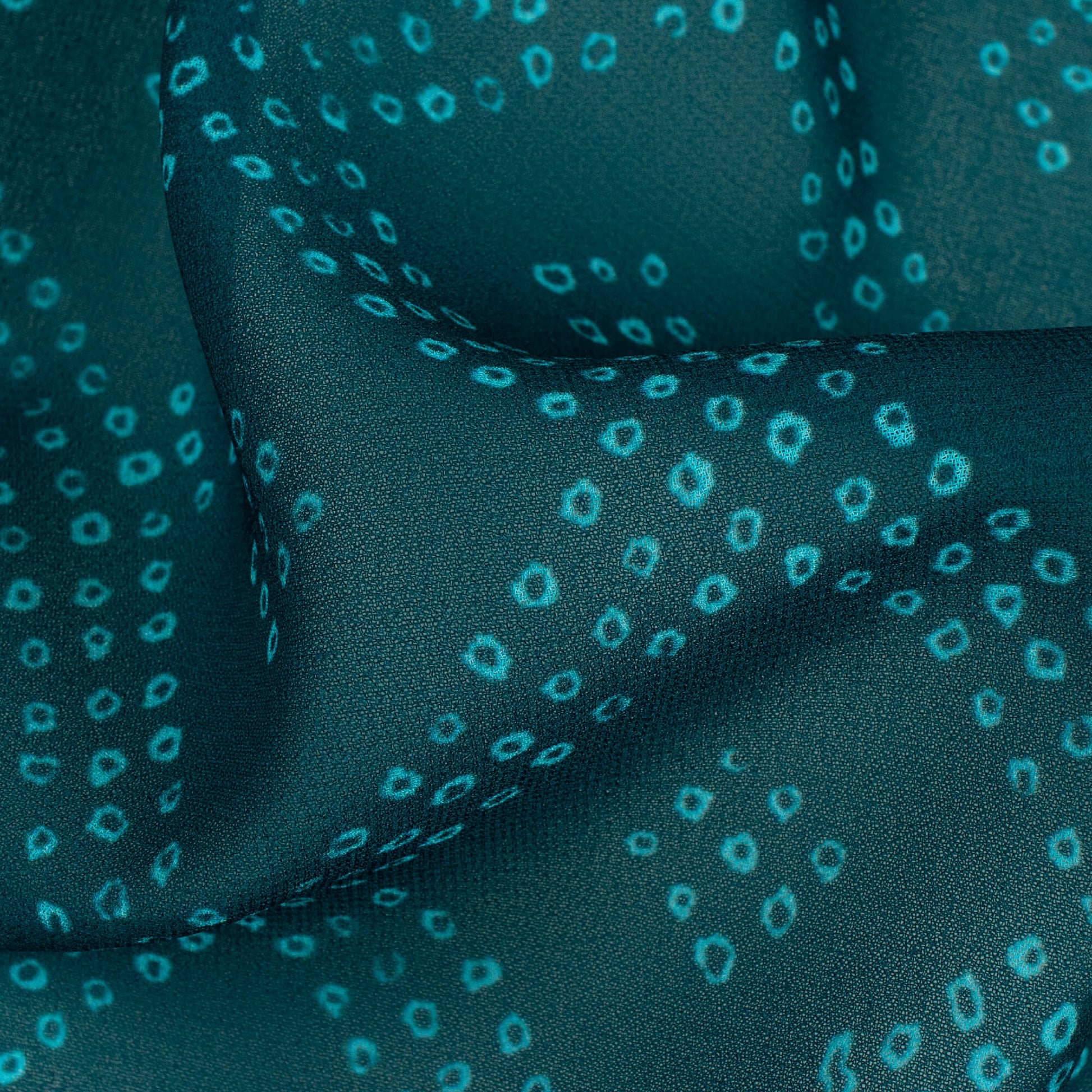 Peacock Blue Bandhanii Pattern Digital Print Georgette Fabric