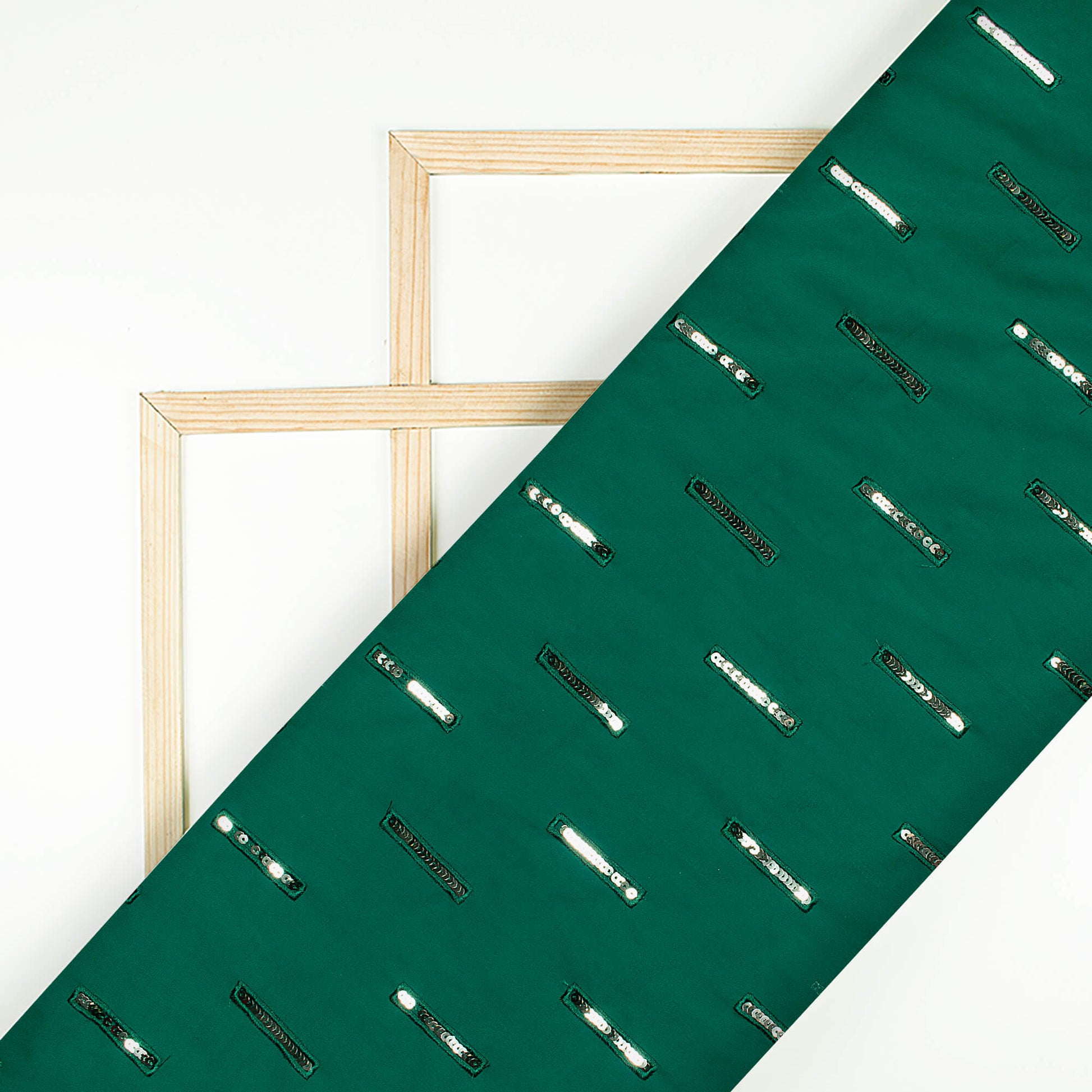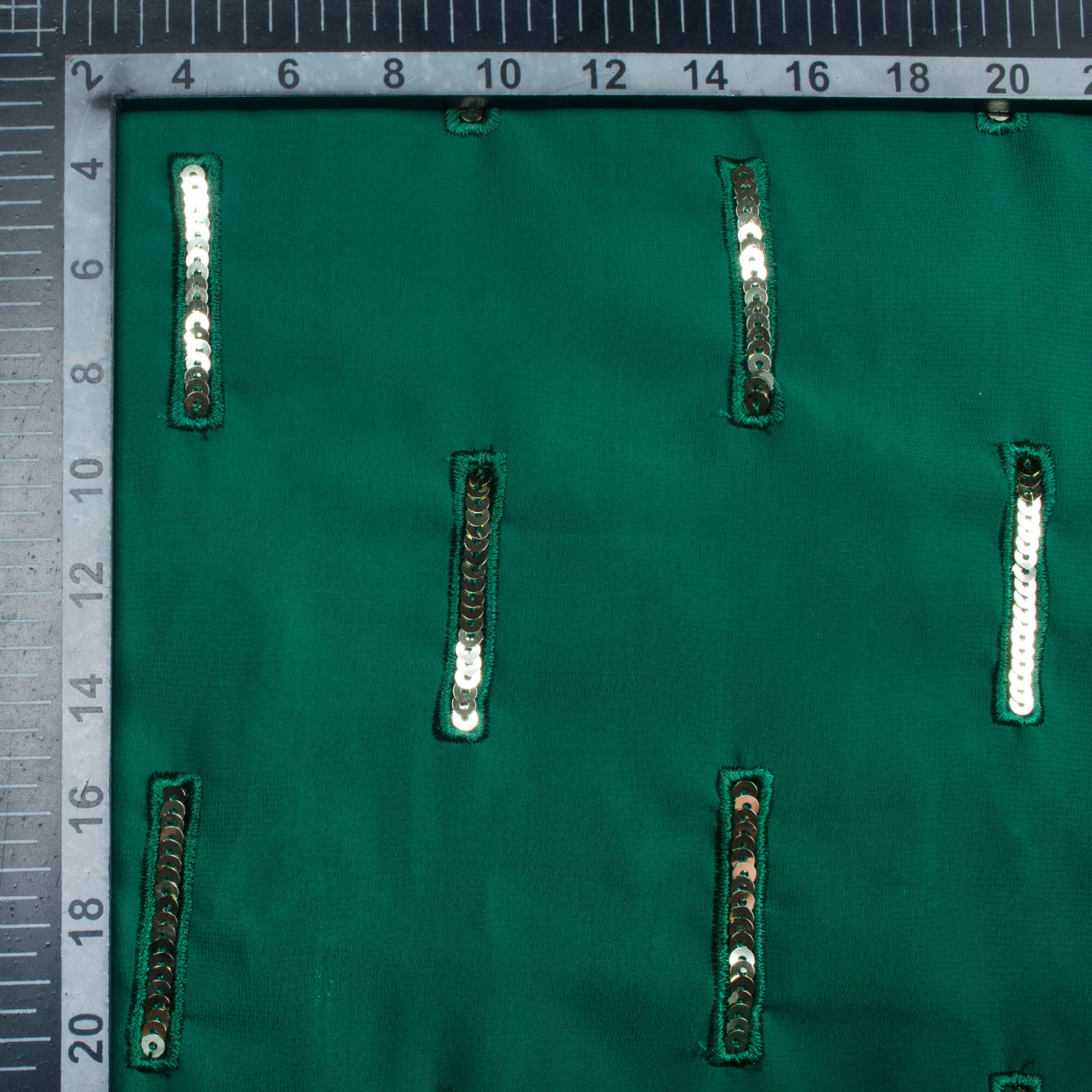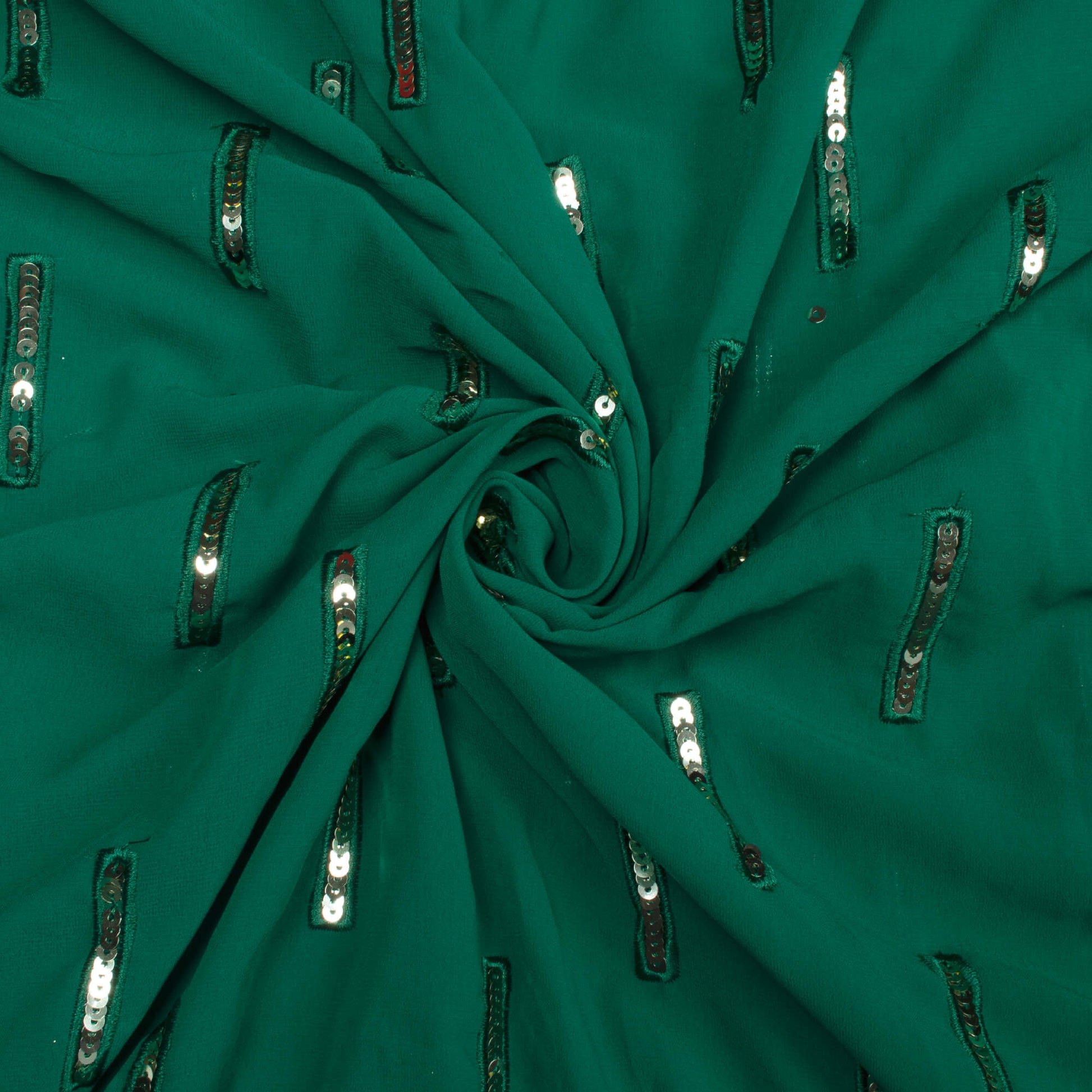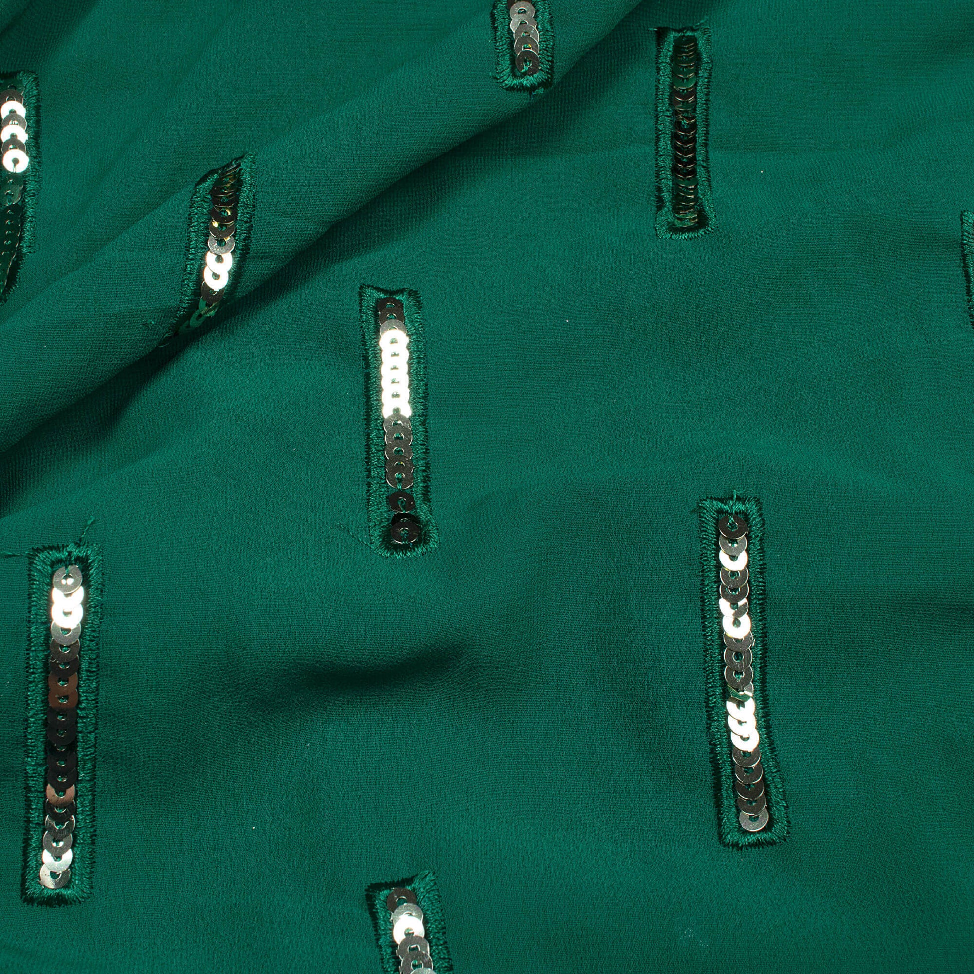 Sacramento Green Stripes Patten Sequins Embroidery Georgette Fabric