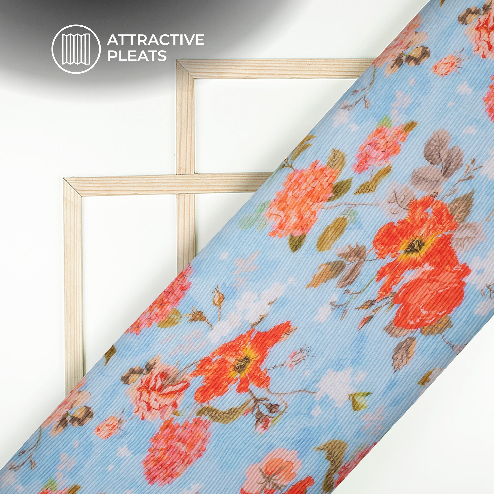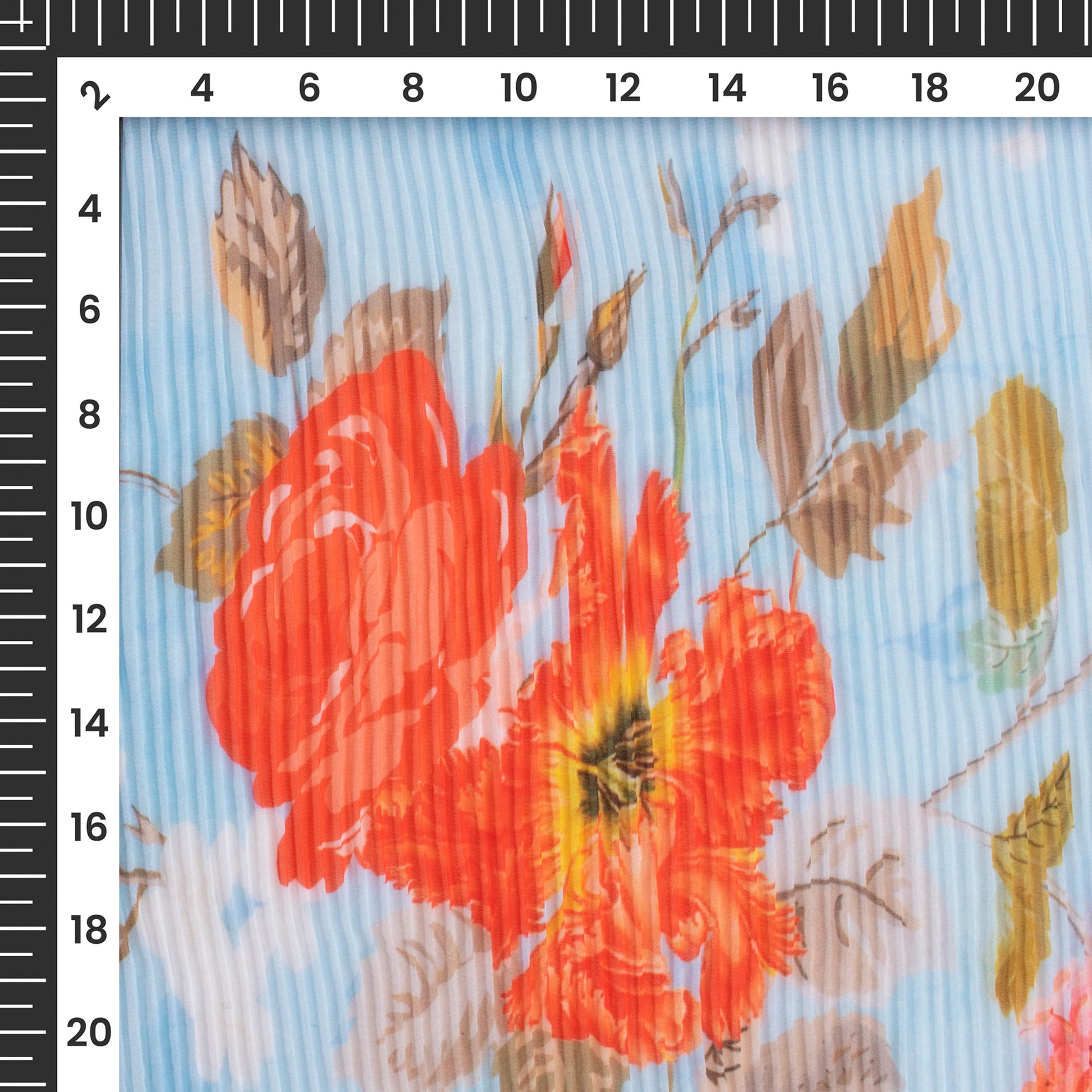 Fire Orange Floral Digital Print Georgette Pleated Fabric