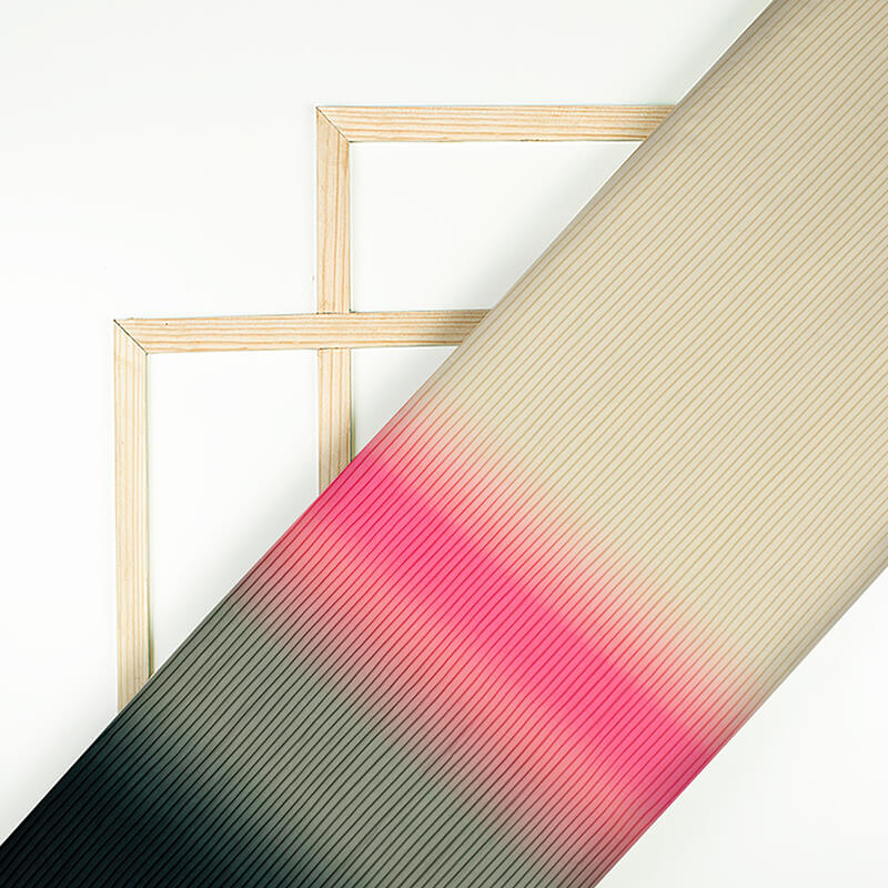 Grey And Beige Ombre Pattern Digital Print American Crepe Pleated Fabric
