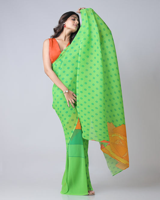 -25% offMellow Yellow And Orange Quirky Pattern Digital Print Georgette Pleated Saree Mellow Yellow And Orange Quirky Pattern Digital Print Georgette Pleated Saree