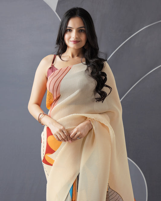 -20% offBeige And Red Floral Pattern Digital Print Georgette Pleated Saree Beige And Red Floral Pattern Digital Print Georgette Pleated Saree