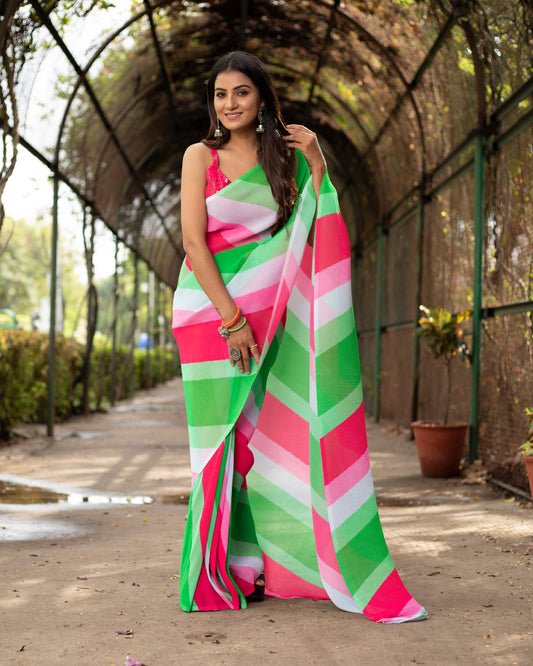 -25% offCerise Red And Green Leheriya Pattern Digital Print Georgette Pleated Saree Cerise Red And Green Leheriya Pattern Digital Print Georgette Pleated Saree
