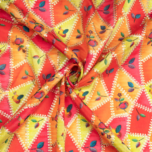 Beautiful Bird And Leaf Position Print On Sequins Embroidery Chinnon Chiffon Fabric Beautiful Bird And Leaf Position Print On Sequins Embroidery Chinnon Chiffon Fabric