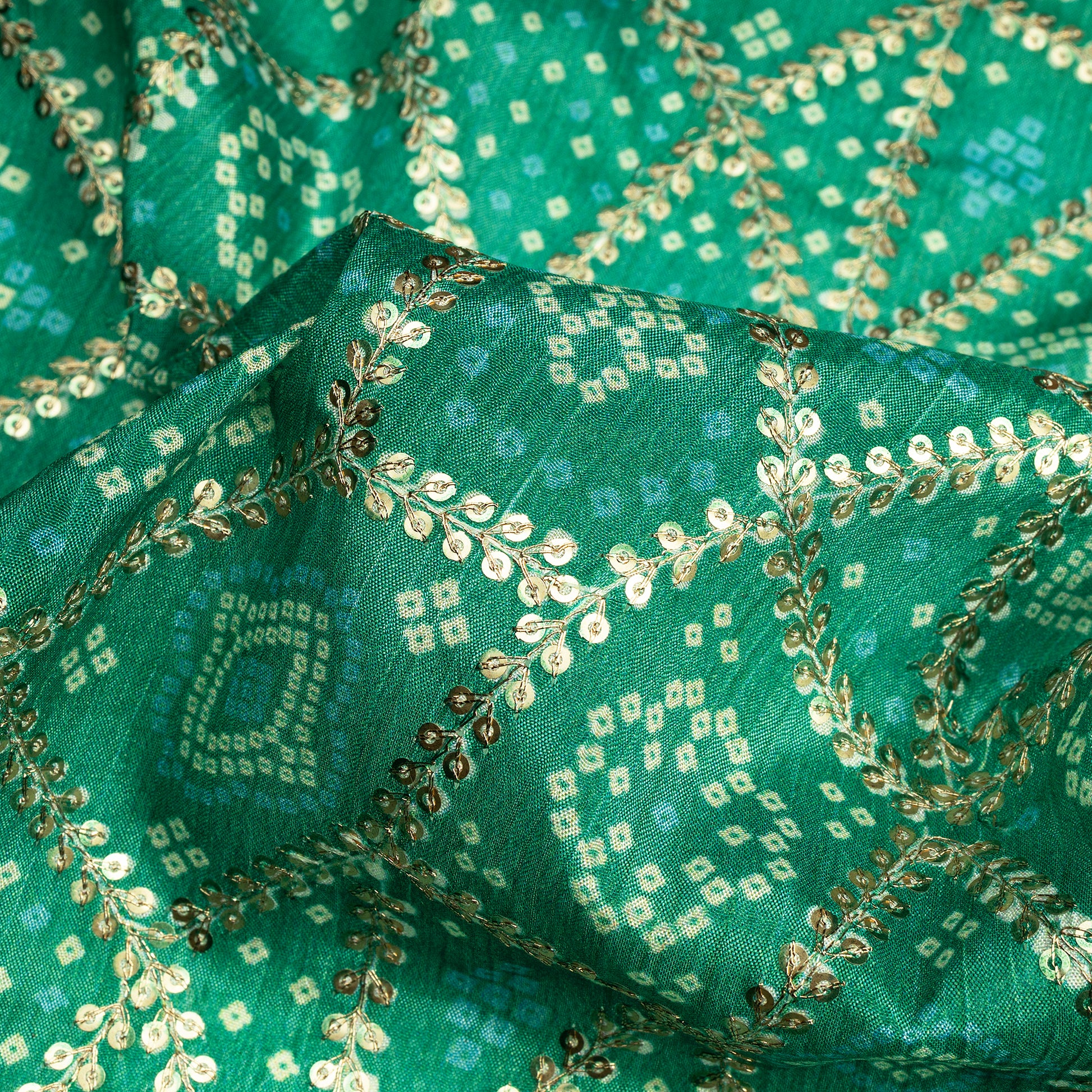 Trendy Bandhanii Position Print On Sequins Embroidery Chinnon Chiffon Fabric