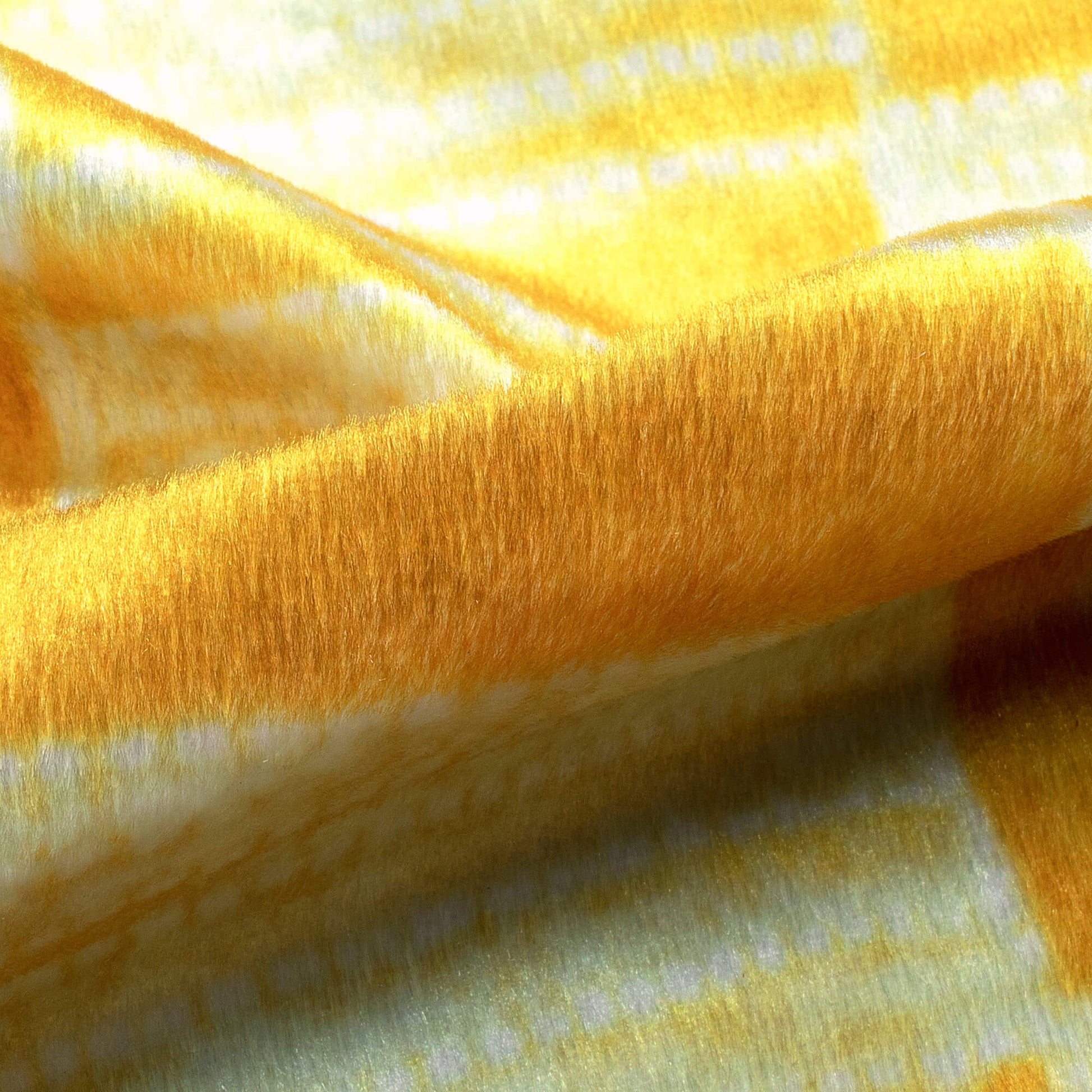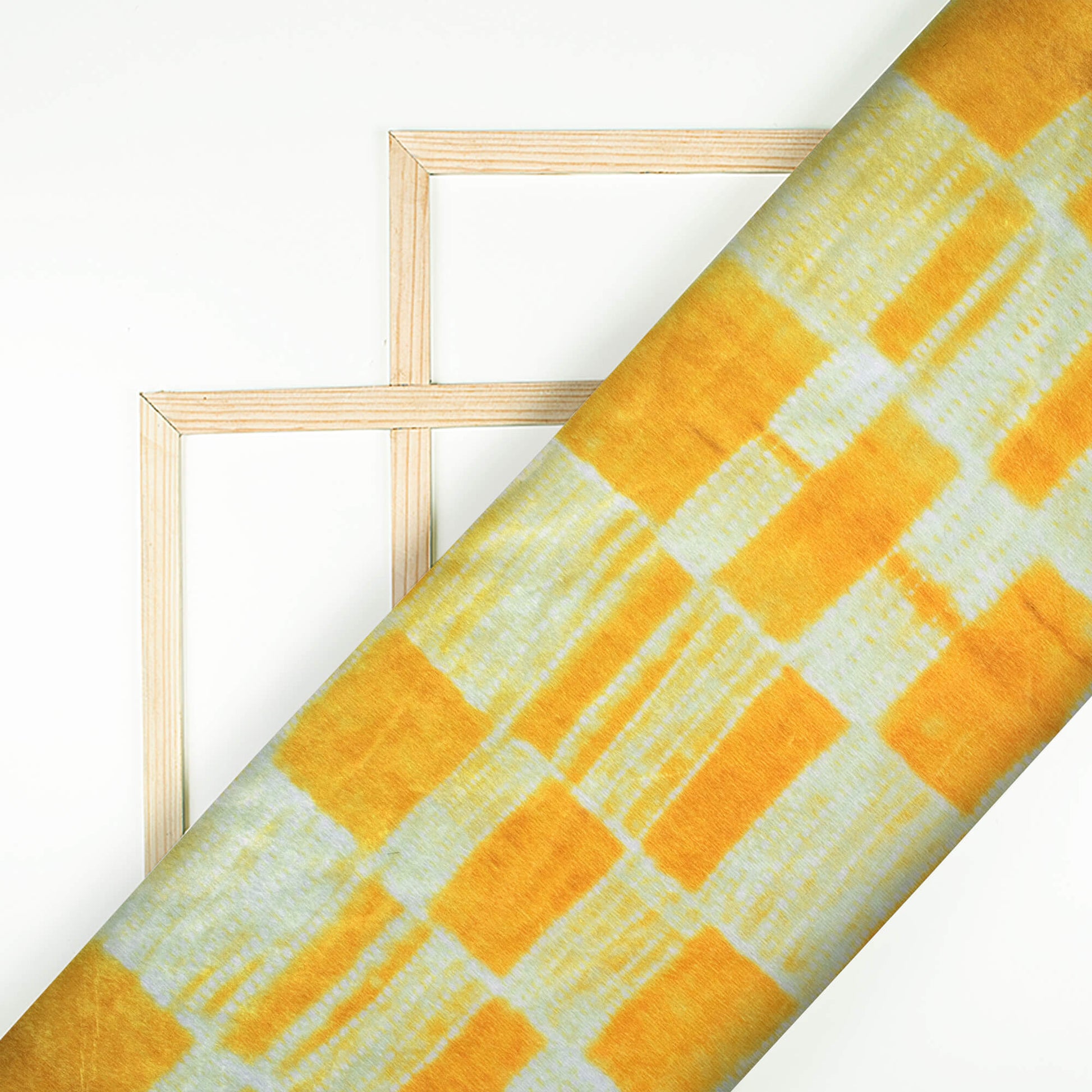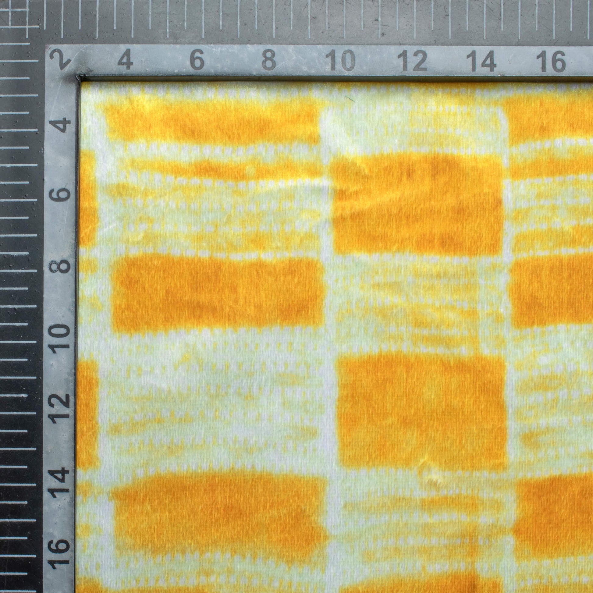 Amber Yellow And White Checks Pattern Digital Print Velvet Fabric (Width 58 Inches)