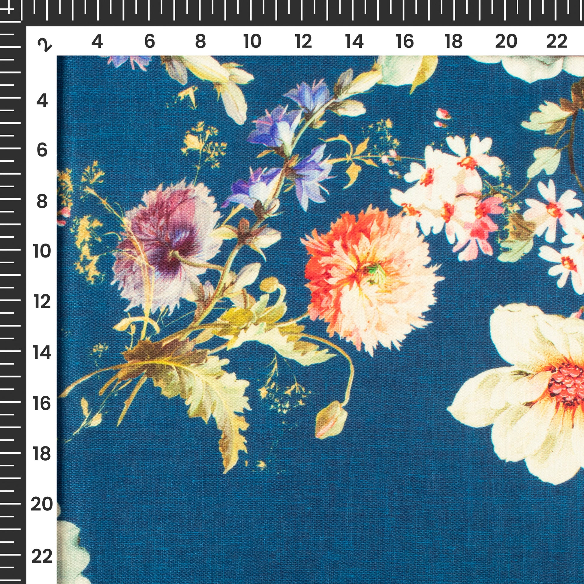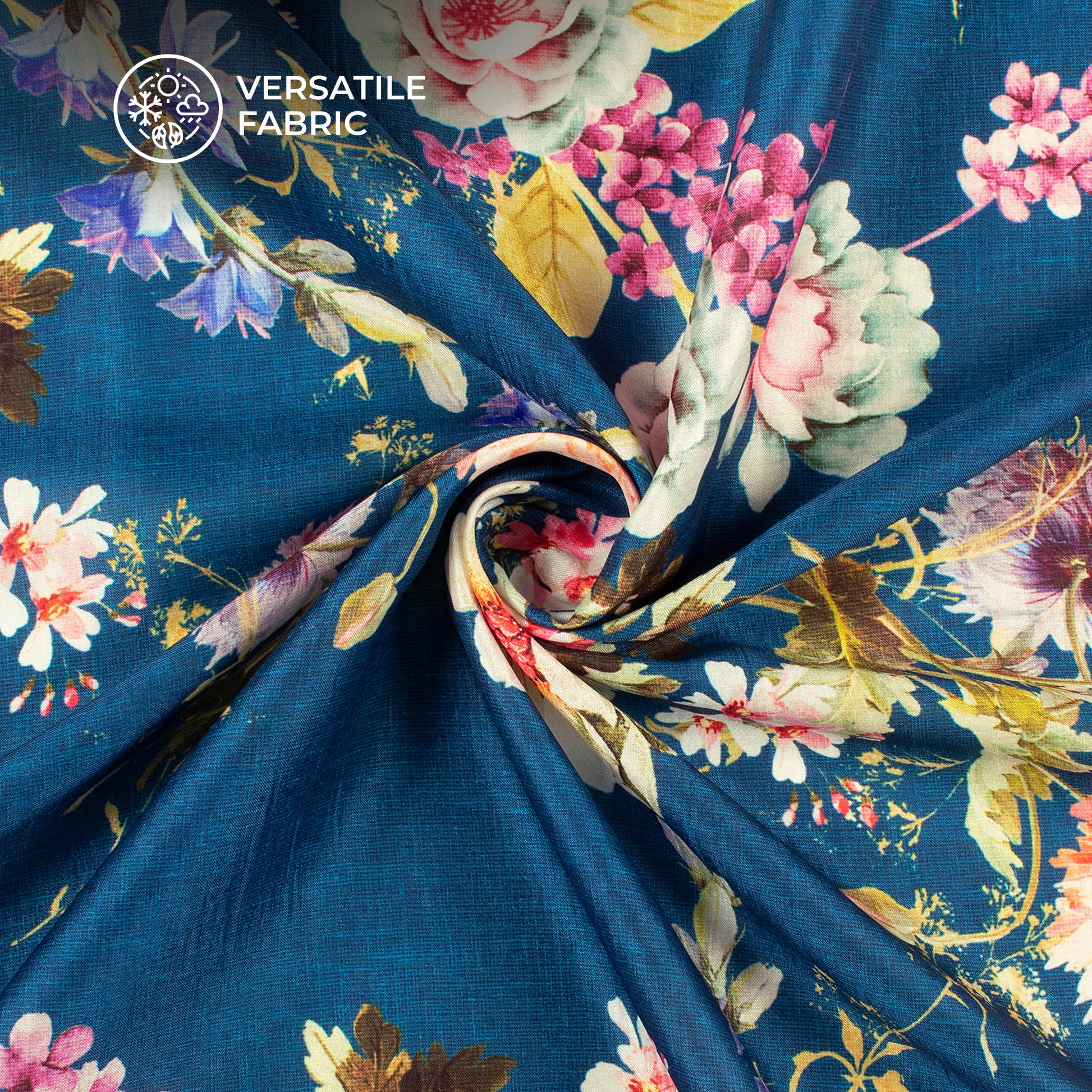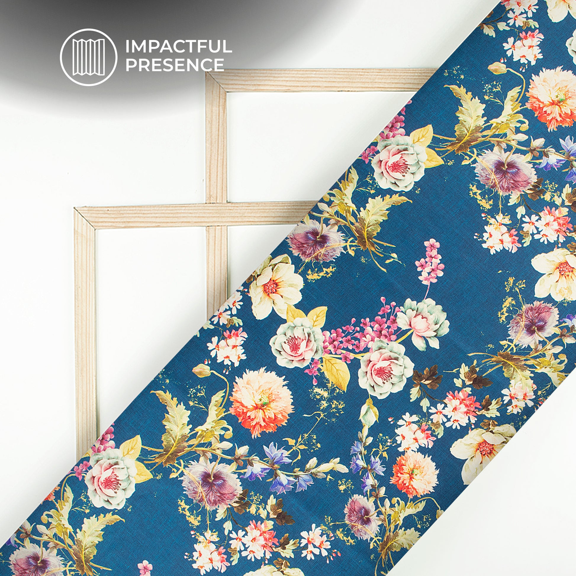 Astronaut Blue Seamless Floral Digital Print Flat Silk Fabric