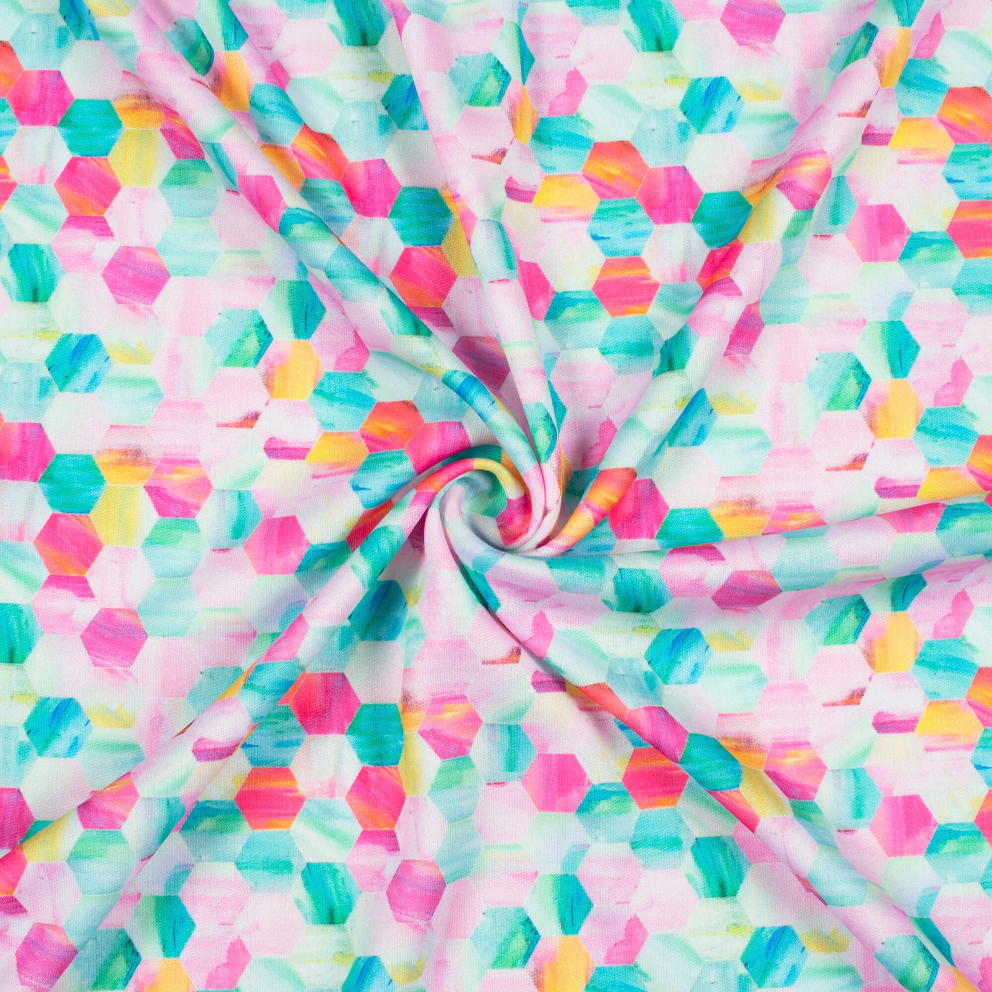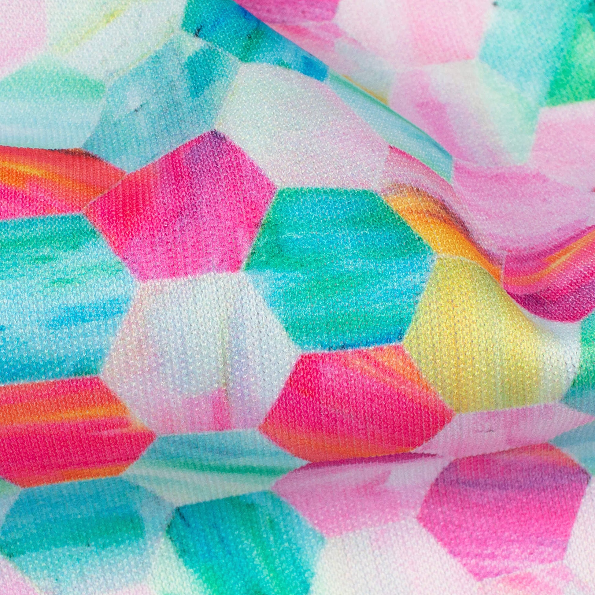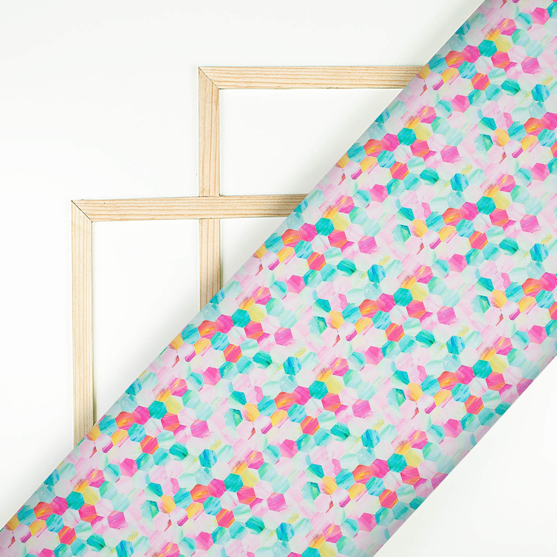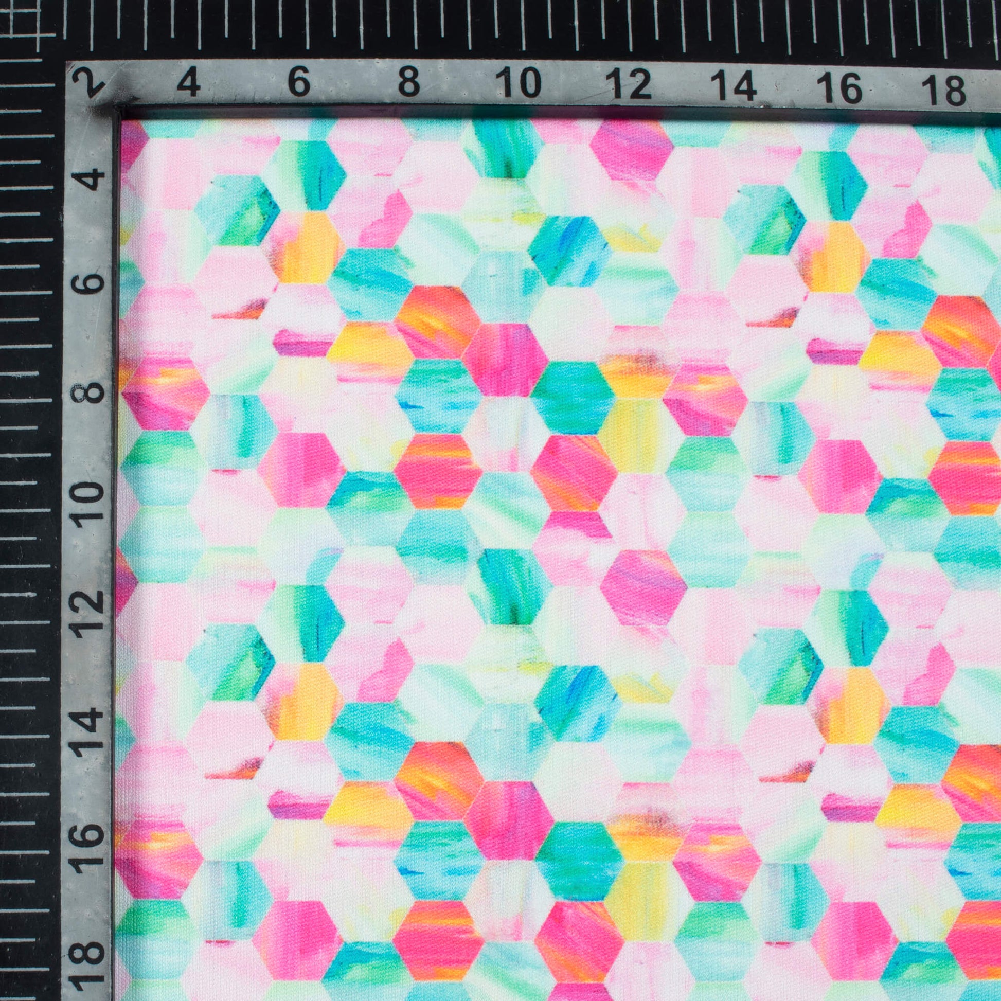 Baby Blue And Mint Green Geometric Pattern Digital Print Lycra Fabric (Width 58 Inches)