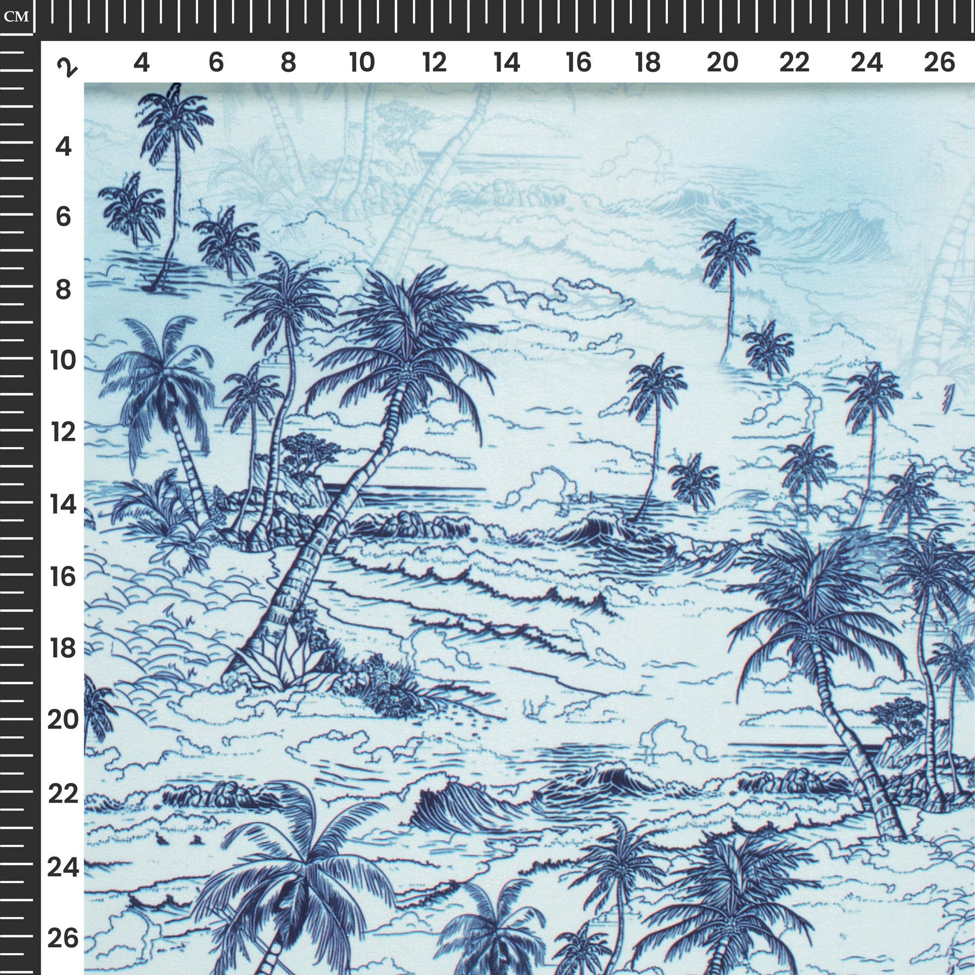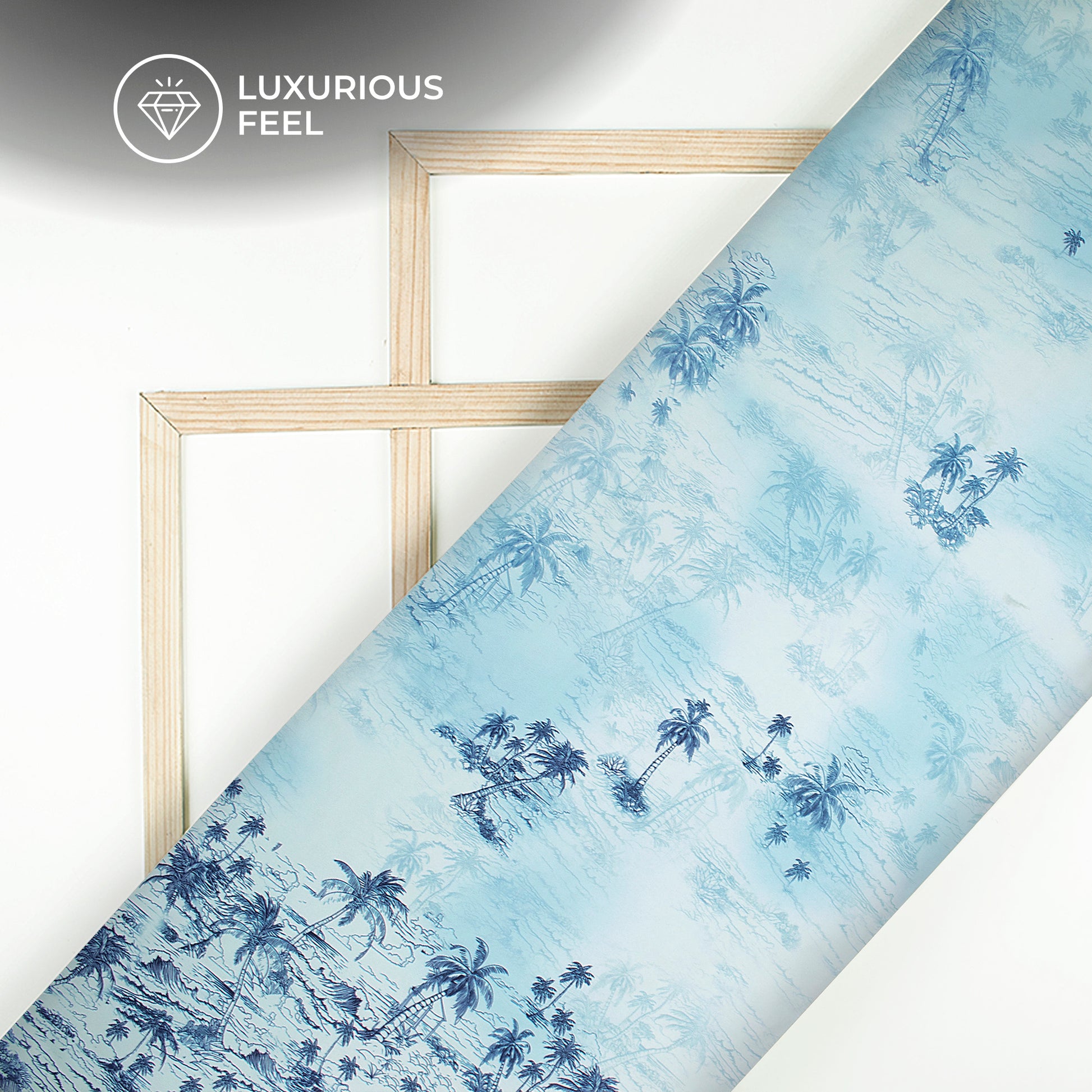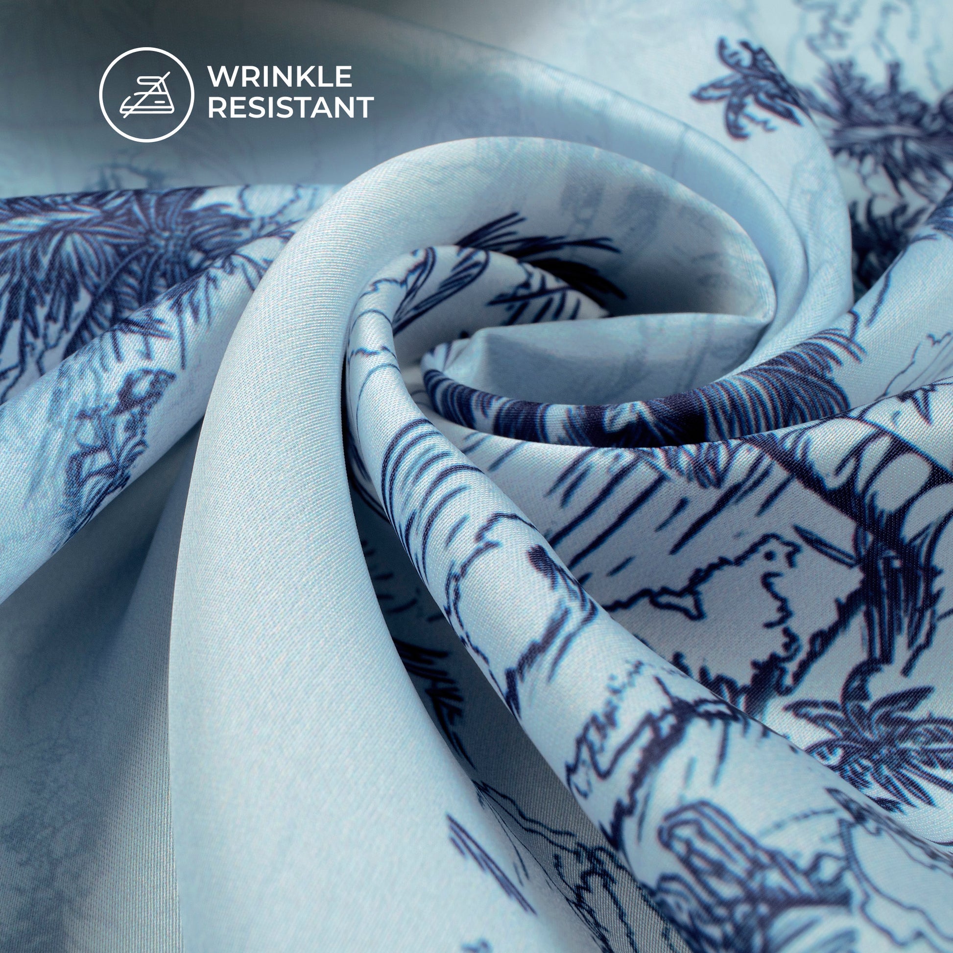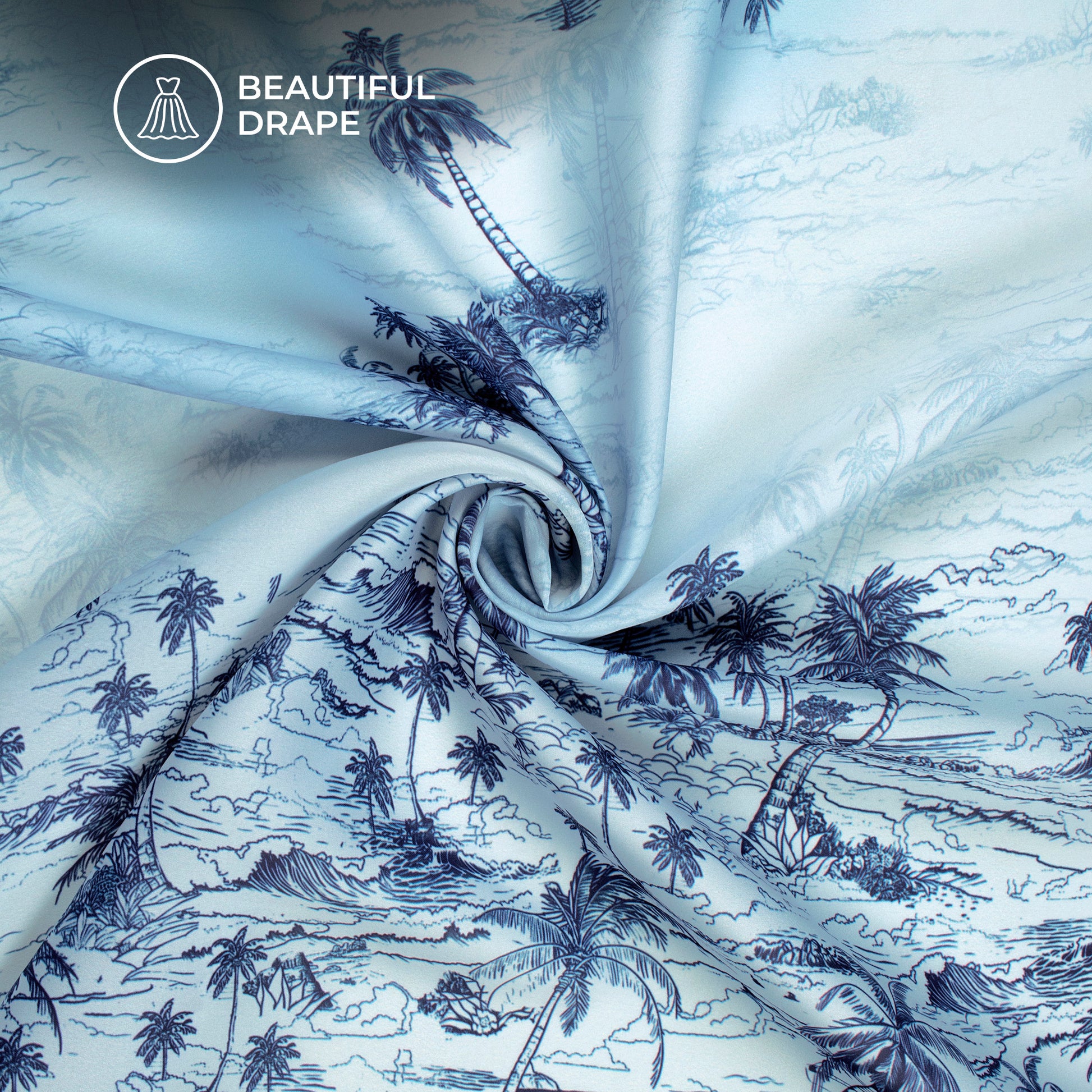 Baby Blue Tropical Digital Print Imported Satin Fabric